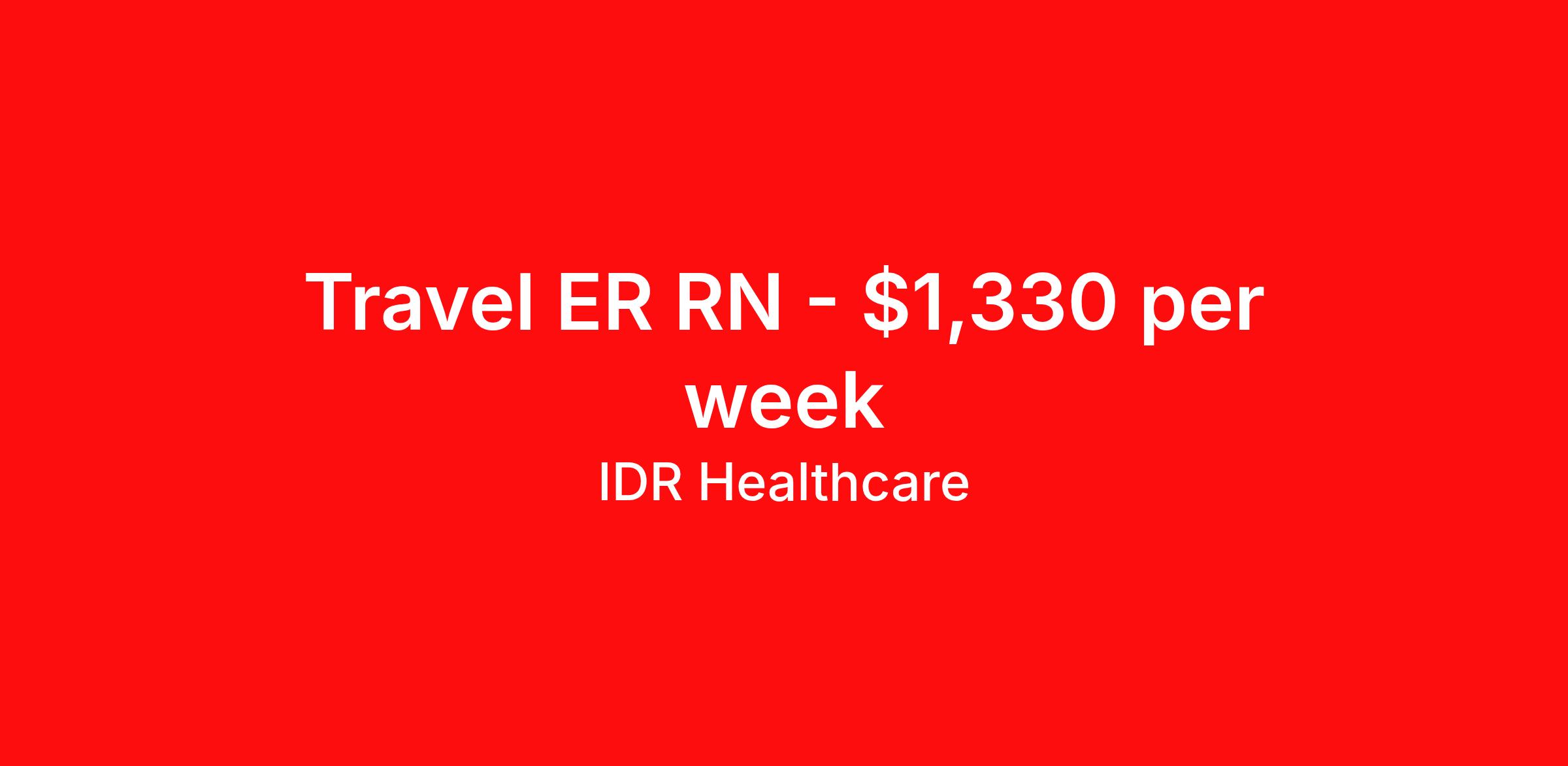 IDR Healthcare is seeking a travel nurse RN ED - Emergency Department for a travel nursing job in Fort Bragg, California. Job Description & Requirements Specialty: ED - Emergency Department Discipline: RN Start Date: 04/13/2026 Duration: 13 weeks 36 hours per week Shift: 12 hours, nights Employment Type: Travel IDR Healthcare is an awarding winning staffing firm that believes it is a privilege and awesome responsibility to serve those who selflessly care for others. Our mission is to empower healthcare professionals to achieve their fullest potential both personally and professionally while they create positive change within the healthcare community. We exercise true grit, tenacity, and authenticity while embracing and ownership mindset to go above and beyond providing healthcare professionals a world class experience. We are employee owned and our travelers and clinicians earn shares/equity by just completing multiple assignments! We have been named SIA’s Fastest Growing Staffing Firms and have won ClearlyRated® Best of Staffing for 11 consecutive years! This cements our commitment to clinician satisfaction earning top net promoter scores putting us in the top 2% of agencies in North America! TravelFarWithIDR and see what an extraordinary experience is all about! Benefits 2024 World Staffing Best Staffing Firms to Work For! ESOP (Equity) Healthcare Benefits for up to 30 days Between Assignments Comprehensive Health Insurance Dental and Vision Insurance Sign-On, Completion, & Referral Bonus Programs License and Certification Reimbursement Weekly Pay and Competitive Compensation Large Network of Clients and Job Opportunities 401k retirement plan Exclusive Assignments IDR Job ID 497605. Pay package is based on 12 hour shifts and 36 hours per week (subject to confirmation) with tax-free stipend amount to be determined. About IDR Healthcare IDR Healthcare is an awarding winning staffing firm that believes it is a privilege and awesome responsibility to serve those who selflessly care for others. Our mission is to empower healthcare professionals to achieve their fullest potential both personally and professionally while they create positive change within the healthcare community. We exercise true grit, tenacity, and authenticity while embracing and ownership mindset to go above and beyond providing healthcare professionals a world class experience. We are employee owned and our travelers and clinicians earn shares/equity by just completing multiple assignments! We have been named SIA’s Fastest Growing Staffing Firms and have won ClearlyRated® Best of Staffing for 11 consecutive years! This cements our commitment to clinician satisfaction earning top net promoter scores putting us in the top 2% of agencies in North America! Help us give back! For every booked assignment, proceeds are donated to St. Jude and Feeding America! Last year we raised over $18,000 for St. Jude and provided over 49,000 meals for children in need. TravelFarWithIDR and see what it is all about! Benefits Weekly pay 401k retirement plan Referral bonus Medical benefits Dental benefits License and certification reimbursement Vision benefits
