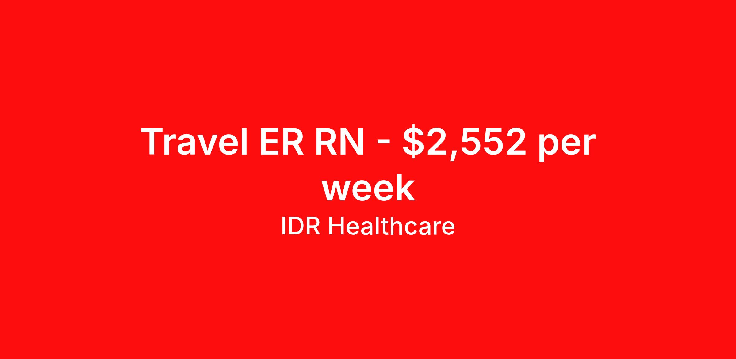 IDR Healthcare is seeking a travel nurse RN ED - Emergency Department for a travel nursing job in Weymouth, Massachusetts. Job Description & Requirements Specialty: ED - Emergency Department Discipline: RN Start Date: ASAP Duration: 13 weeks 36 hours per week Shift: 12 hours, days Employment Type: Travel IDR Healthcare is an awarding winning staffing firm that believes it is a privilege and awesome responsibility to serve those who selflessly care for others. Our mission is to empower healthcare professionals to achieve their fullest potential both personally and professionally while they create positive change within the healthcare community. We exercise true grit, tenacity, and authenticity while embracing and ownership mindset to go above and beyond providing healthcare professionals a world class experience. We are employee owned and our travelers and clinicians earn shares/equity by just completing multiple assignments! We have been named SIA’s Fastest Growing Staffing Firms and have won ClearlyRated® Best of Staffing for 11 consecutive years! This cements our commitment to clinician satisfaction earning top net promoter scores putting us in the top 2% of agencies in North America! TravelFarWithIDR and see what an extraordinary experience is all about! Benefits 2024 World Staffing Best Staffing Firms to Work For! ESOP (Equity) Healthcare Benefits for up to 30 days Between Assignments Comprehensive Health Insurance Dental and Vision Insurance Sign-On, Completion, & Referral Bonus Programs License and Certification Reimbursement Weekly Pay and Competitive Compensation Large Network of Clients and Job Opportunities 401k retirement plan Exclusive Assignments IDR Job ID 487348. Pay package is based on 12 hour shifts and 36 hours per week (subject to confirmation) with tax-free stipend amount to be determined. About IDR Healthcare IDR Healthcare is an awarding winning staffing firm that believes it is a privilege and awesome responsibility to serve those who selflessly care for others. Our mission is to empower healthcare professionals to achieve their fullest potential both personally and professionally while they create positive change within the healthcare community. We exercise true grit, tenacity, and authenticity while embracing and ownership mindset to go above and beyond providing healthcare professionals a world class experience. We are employee owned and our travelers and clinicians earn shares/equity by just completing multiple assignments! We have been named SIA’s Fastest Growing Staffing Firms and have won ClearlyRated® Best of Staffing for 11 consecutive years! This cements our commitment to clinician satisfaction earning top net promoter scores putting us in the top 2% of agencies in North America! Help us give back! For every booked assignment, proceeds are donated to St. Jude and Feeding America! Last year we raised over $18,000 for St. Jude and provided over 49,000 meals for children in need. TravelFarWithIDR and see what it is all about! Benefits Weekly pay 401k retirement plan Referral bonus Medical benefits Dental benefits License and certification reimbursement Vision benefits