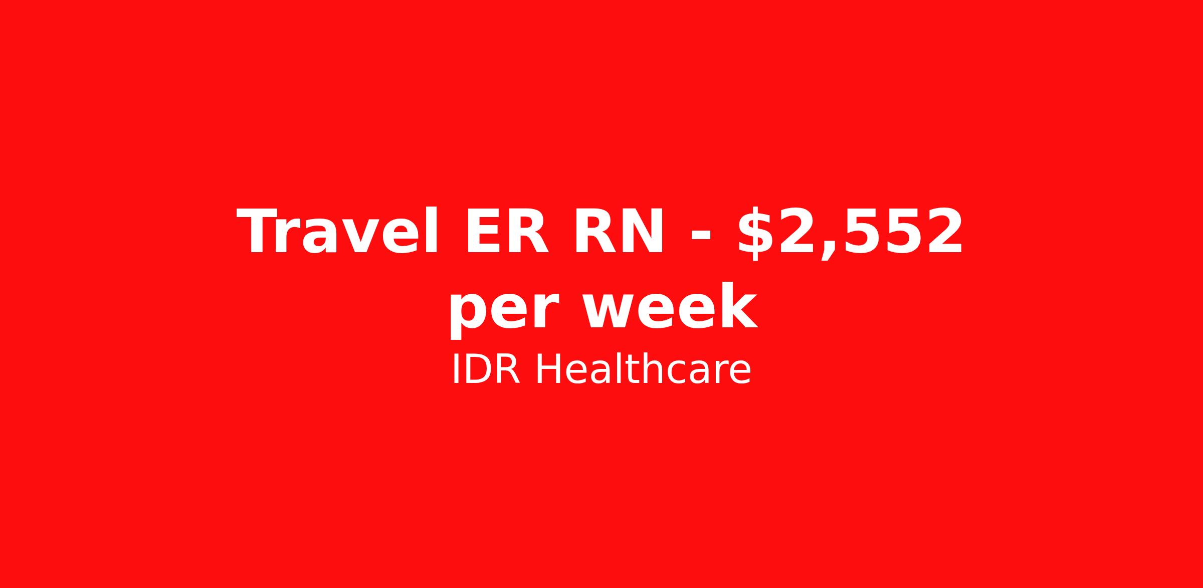 IDR Healthcare is seeking a travel nurse RN ED - Emergency Department for a travel nursing job in Weymouth, Massachusetts. Job Description & Requirements Specialty: ED - Emergency Department Discipline: RN Start Date: ASAP Duration: 13 weeks 36 hours per week Shift: 12 hours, days Employment Type: Travel IDR Healthcare is an awarding winning staffing firm that believes it is a privilege and awesome responsibility to serve those who selflessly care for others. Our mission is to empower healthcare professionals to achieve their fullest potential both personally and professionally while they create positive change within the healthcare community. We exercise true grit, tenacity, and authenticity while embracing and ownership mindset to go above and beyond providing healthcare professionals a world class experience. We are employee owned and our travelers and clinicians earn shares/equity by just completing multiple assignments! We have been named SIA’s Fastest Growing Staffing Firms and have won ClearlyRated® Best of Staffing for 11 consecutive years! This cements our commitment to clinician satisfaction earning top net promoter scores putting us in the top 2% of agencies in North America! TravelFarWithIDR and see what an extraordinary experience is all about! Benefits 2024 World Staffing Best Staffing Firms to Work For! ESOP (Equity) Healthcare Benefits for up to 30 days Between Assignments Comprehensive Health Insurance Dental and Vision Insurance Sign-On, Completion, & Referral Bonus Programs License and Certification Reimbursement Weekly Pay and Competitive Compensation Large Network of Clients and Job Opportunities 401k retirement plan Exclusive Assignments IDR Job ID 487348. Pay package is based on 12 hour shifts and 36 hours per week (subject to confirmation) with tax-free stipend amount to be determined. About IDR Healthcare IDR Healthcare is an awarding winning staffing firm that believes it is a privilege and awesome responsibility to serve those who selflessly care for others. Our mission is to empower healthcare professionals to achieve their fullest potential both personally and professionally while they create positive change within the healthcare community. We exercise true grit, tenacity, and authenticity while embracing and ownership mindset to go above and beyond providing healthcare professionals a world class experience. We are employee owned and our travelers and clinicians earn shares/equity by just completing multiple assignments! We have been named SIA’s Fastest Growing Staffing Firms and have won ClearlyRated® Best of Staffing for 11 consecutive years! This cements our commitment to clinician satisfaction earning top net promoter scores putting us in the top 2% of agencies in North America! Help us give back! For every booked assignment, proceeds are donated to St. Jude and Feeding America! Last year we raised over $18,000 for St. Jude and provided over 49,000 meals for children in need. TravelFarWithIDR and see what it is all about! Benefits Weekly pay 401k retirement plan Referral bonus Medical benefits Dental benefits License and certification reimbursement Vision benefits
