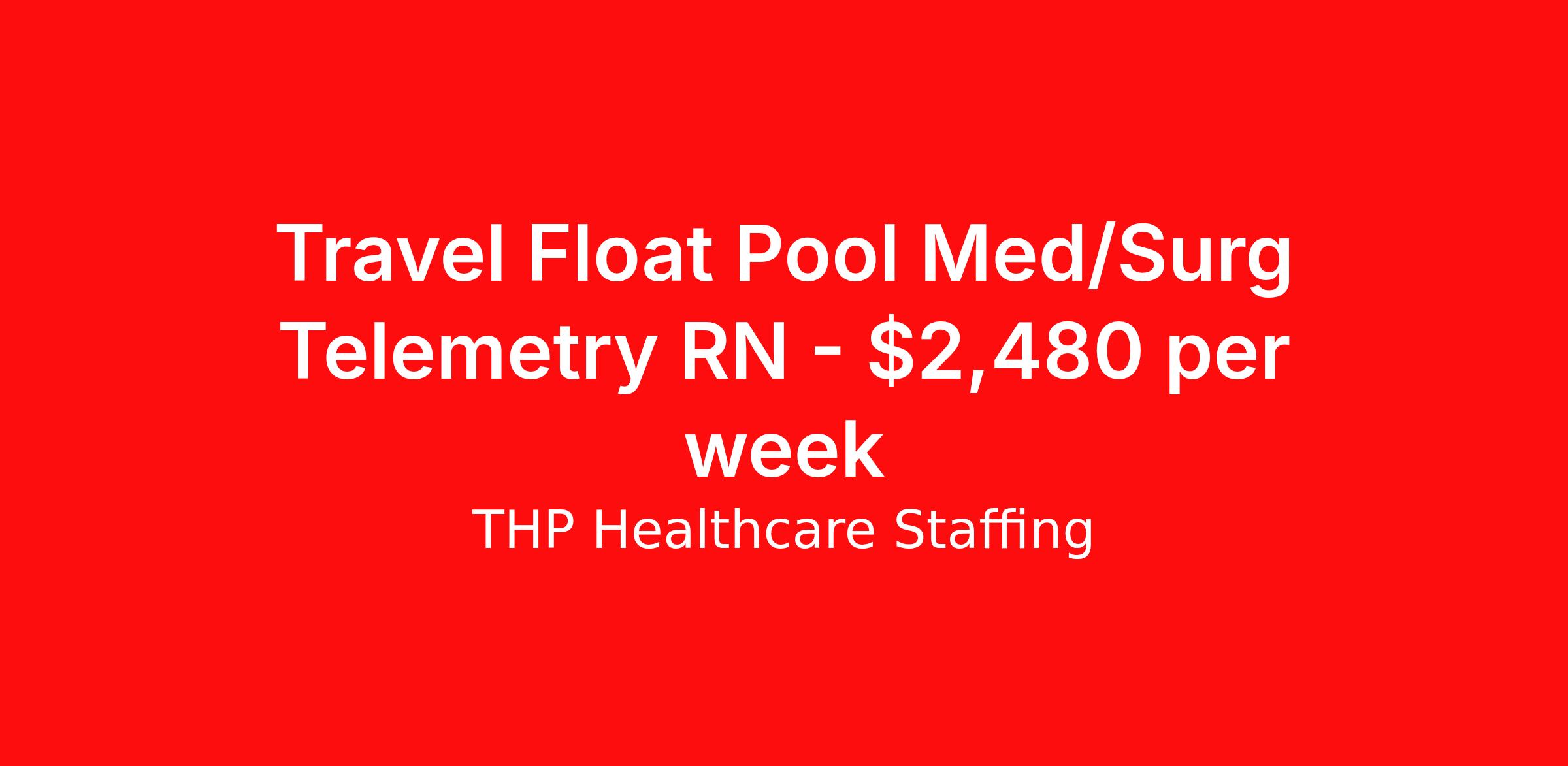 THP Healthcare Staffing is seeking a travel nurse RN Float Med Surg / Telemetry for a travel nursing job in Parkersburg, West Virginia. Job Description & Requirements Specialty: Med Surg / Telemetry Discipline: RN Start Date: ASAP Duration: 13 weeks 36 hours per week Shift: 12 hours, nights Employment Type: Travel Our Client is currently seeking RN - MedSurg / Tele positions in Parkersburg, WV for a 3x12 nights shift. You must have current State Licensure and at least 1 year of recent experience. Requirements Current Resume State Licensure Current BLS and/or ACLS and/or Specialty Certifications 2 Current Clinical References Physical (Within 12 Months) TB Skin Test (Within 12 Months) Titers - MMR/Hep B/Varicella Respiratory Fit Test (Within 12 Months) Current - Tdap/Flu Vaccinations Must be able to pass pre-employment, background and urine drug screening Compensation and Benefits Compettive Pay Packages Health Benefit Package Travel pay - 1st pay check Extending Contract Bonus Refer a friend and earn extra cash! At THP Healthcare Staffing, we take care of you - work with us, not for us! THP Healthcare Staffing Job ID 17991038. Pay package is based on 12 hour shifts and 36.0 hours per week (subject to confirmation) with tax-free stipend amount to be determined. Posted job title: RN:MedSurg / Tele,19:00:00-07:00:00 About THP Healthcare Staffing At THP Staffing, we specialize in connecting healthcare facilities with highly skilled travel nurses and allied health professionals who bring exceptional care and expertise wherever they go. Our mission is to ensure that every healthcare provider has access to top nursing talent, regardless of location, to deliver superior patient outcomes. Benefits Weekly pay Life insurance Pet insurance License and certification reimbursement Medical benefits Employee assistance programs Referral bonus Vision benefits Holiday Pay Health savings account