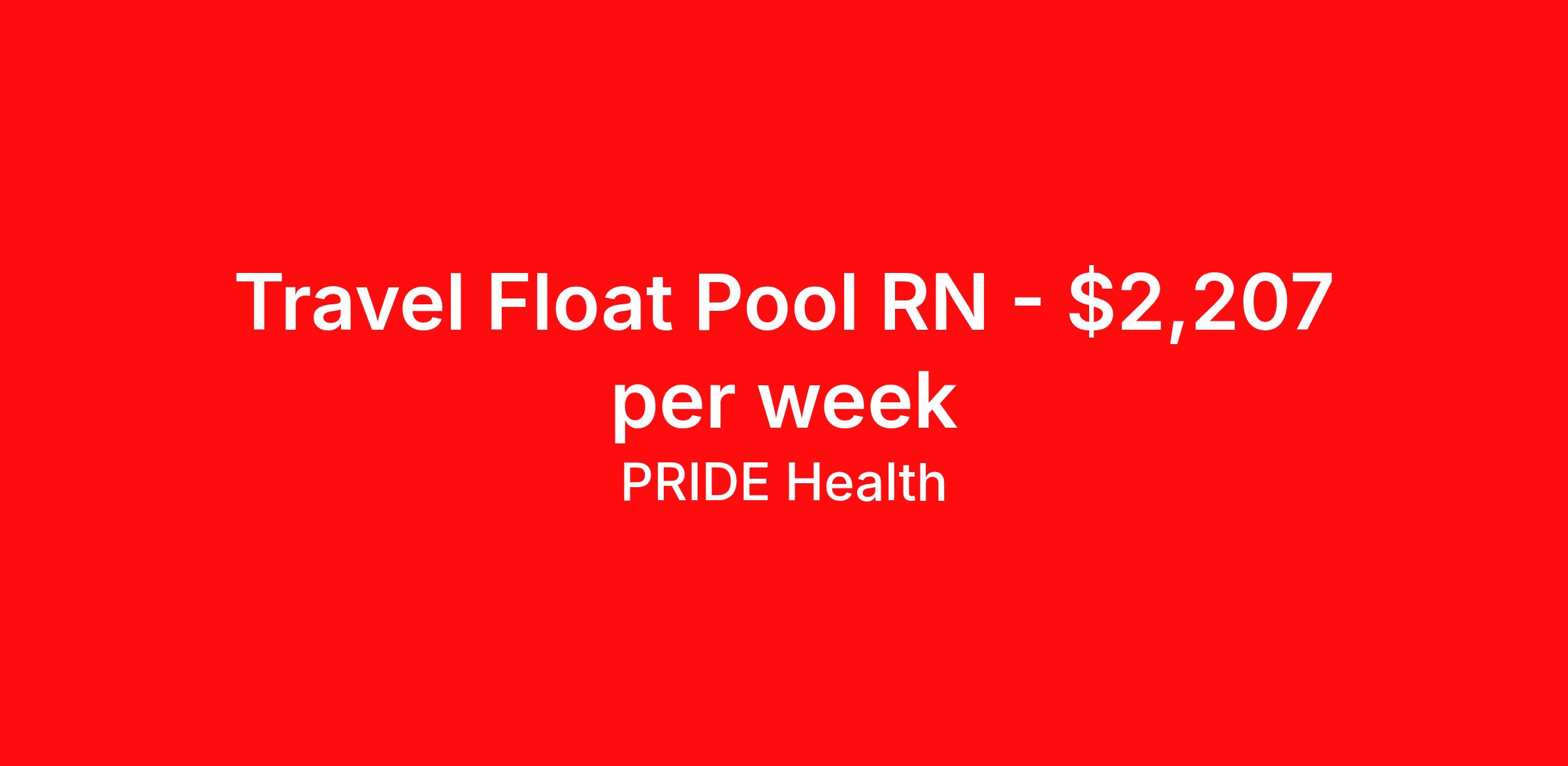 PRIDE Health is seeking a travel nurse RN Float Med Surg for a travel nursing job in Liberty, Missouri. Job Description & Requirements Specialty: Float Discipline: RN Start Date: 05/10/2026 Duration: 13 weeks 36 hours per week Shift: 12 hours, nights Employment Type: Travel Pride Health Job ID 18154098. Pay package is based on 12 hour shifts and 36.0 hours per week (subject to confirmation) with tax-free stipend amount to be determined. Posted job title: RN:Float Pool,19:00:00-07:30:00 About PRIDE Health PRIDE Health is the minority-owned healthcare recruitment division of Pride Global—an integrated human capital solutions and advisory firm. With our robust and abundant travel nursing and allied health employment options across the U.S., PRIDE Health will allow you to help change the way the world lives and heals as it connects you with the industry’s leading healthcare organizations. Pride Global offers eligible employee’s comprehensive healthcare coverage (medical, dental, and vision plans), supplemental coverage (accident insurance, critical illness insurance and hospital indemnity), 401(k)-retirement savings, life & disability insurance, an employee assistance program, legal support, auto, home insurance, pet insurance, and employee discounts with preferred vendors. Benefits Weekly pay Holiday Pay Guaranteed Hours 401k retirement plan Cancelation protection Referral bonus Medical benefits Dental benefits Vision benefits