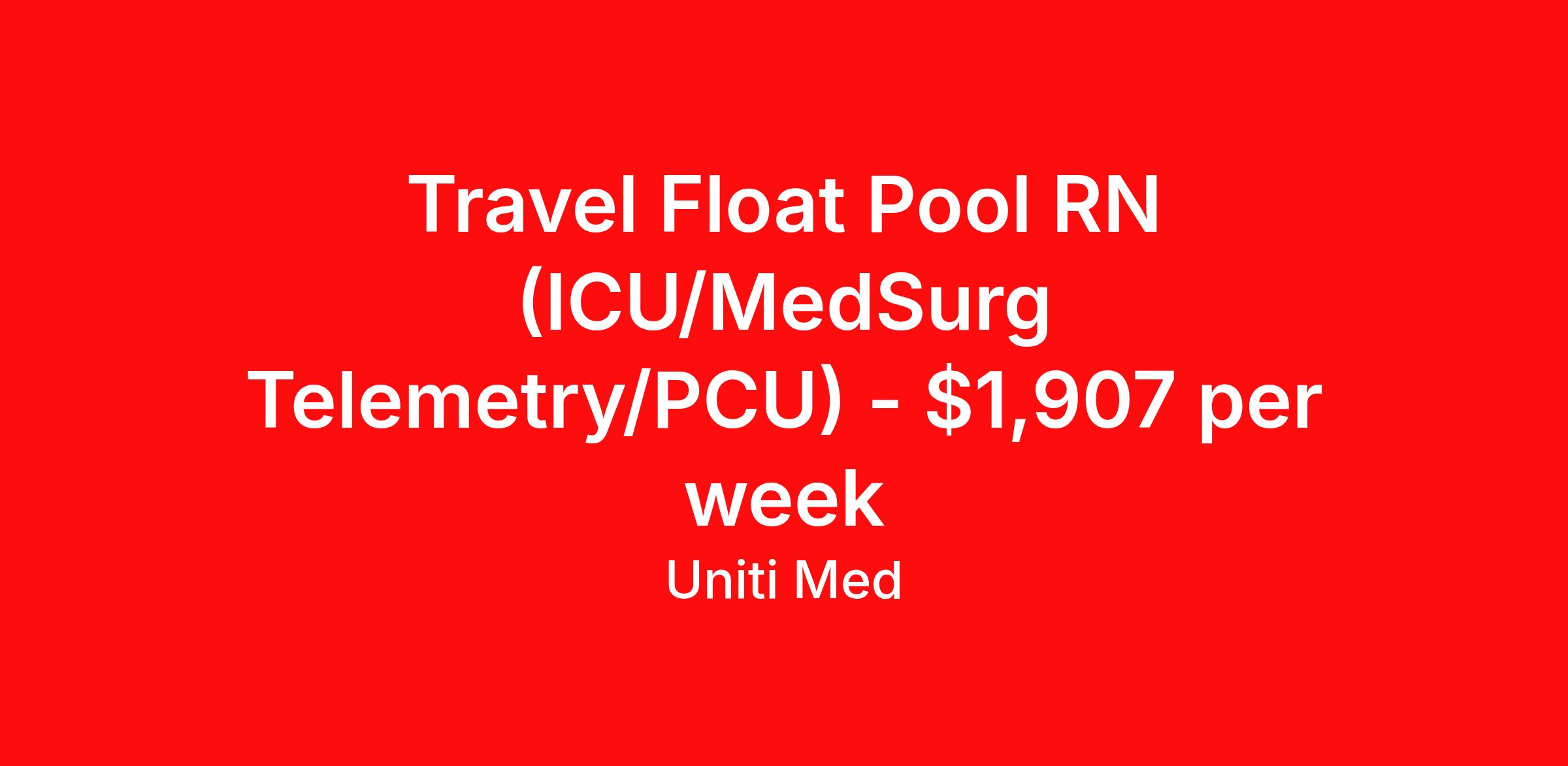 Travel Float Pool RN (ICU/MedSurg Telemetry/PCU) - $1,907 per week