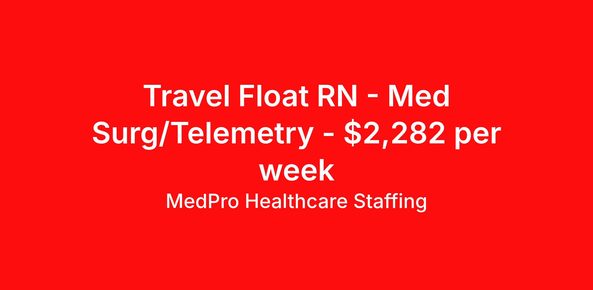 MedPro Healthcare Staffing is seeking a travel nurse RN Float Med Surg / Telemetry for a travel nursing job in Watertown, New York. Job Description & Requirements Specialty: Med Surg / Telemetry Discipline: RN Start Date: 04/13/2026 Duration: 13 weeks 36 hours per week Shift: 12 hours, nights Employment Type: Travel MedPro Healthcare Staffing , a Joint Commission-certified staffing agency, is seeking a quality Med-Surg registered nurse (RN) for a travel assignment with one of our top healthcare clients. Requirements Active RN License Degree from accredited nursing program BLS Certifications Eighteen months of recent experience in an Acute Care Med/Surg setting Other requirements to be determined by our client facility Benefits Weekly pay and direct deposit Full coverage of all credentialing fees Private housing or housing allowance Group Health insurance for you and your family Company-paid life and disability insurance Travel reimbursement 401(k) matching Unlimited Referral Bonuses up to $1,000 Duties Responsibilities Med-Surg Nurses (RN) provide care for primarily adult patients before and after surgical procedures; they also attend to those who are being treated with pharmaceuticals to manage illness. Due to the broad range of medical conditions Med/Surg Nurses will encounter, they must be well-versed in a large variety of health conditions. Complete assignments made by physicians. Provide routine treatment and post-surgical care. Assess changes in patient's health status and perform various treatments. Administer medication. Meticulous documentation as to medication and treatment administration to ensure continuity of care between nursing staff, physicians and other treatment team members. About Agency MedPro Healthcare Staffing is a Joint Commission certified provider of contract staffing services. Since 1983, we have placed nursing and allied travelers in top healthcare facilities nationwide. Join us today for your very own MedPro Experience®. If qualified and interested, please call for immediate consideration. MedPro Staffing is an Equal Opportunity Employer. All applicants will be considered for employment without attention to race, color, religion, national origin, age, sex, disability, marital status or veteran status. Key Words: Registered Nurse, RN, Medical-Surgical, Travel Nurse, Contract Nurse, Agency Nurse, Agency RN, RN-MS, RN- Medical Surgical, Travel RN, Contract, Nursing, RN Med-Surg, Travel Nursing *Weekly payment estimates are intended for informational purposes only and include a gross estimate of hourly wages and reimbursements for meal, incidental, and housing expenses. Your recruiter will confirm your eligibility and provide additional details. MedPro Job ID a0Fcx00000GCKY1EAP. Pay package is based on 12 hour shifts and 36 hours per week (subject to confirmation) with tax-free stipend amount to be determined. Posted job title: Med-Surg/Telemetry Registered Nurse Nursing: Med Surg/Tele. About MedPro Healthcare Staffing At MedPro Healthcare Staffing , we believe no one cares more for caregivers than we do. Our mission is simple: you focus on your patients, and we’ll take care of the rest. As a Joint Commission-certified leader in temporary and contract healthcare staffing since 1983, MedPro has proudly connected nursing and allied travelers with top healthcare facilities across the nation. With thousands of job opportunities available nationwide, we make it easy to find assignments that align with your goals and lifestyle. Our on-staff clinical support team—alongside a compassionate group of experienced recruiters—provides hands-on guidance every step of the way. From Day 1 medical benefits and a 401(k) plan to personalized career support, we’re committed to ensuring every professional we serve feels valued, cared for, and empowered to succeed. Guided by a CEO who is a Registered Nurse, MedPro is built on a foundation of clinical insight and genuine compassion for the caregiving community. Through The MedPro Experience® , we deliver travel assignments that are rewarding, memorable, and designed to help you DREAM big, EXPLORE often, and ACHIEVE greatness. Benefits Day 1 medical, dental, and vision benefits for you and your family Weekly pay and direct deposit Unlimited Referral Bonuses starting at $500 On Staff Clinical Support Team Access to nationwide travel assignments MPX Mobile app -24/7 real-time access to jobs, credentials, assignment details, and more Full coverage of all credentialing fees Private housing or housing allowance Tax Free Per Diems, Housing Stipends and Travel Reimbursements Company-paid life and disability insurance Travel reimbursement 401(k) matching Benefits Weekly pay Referral bonus Employee assistance programs