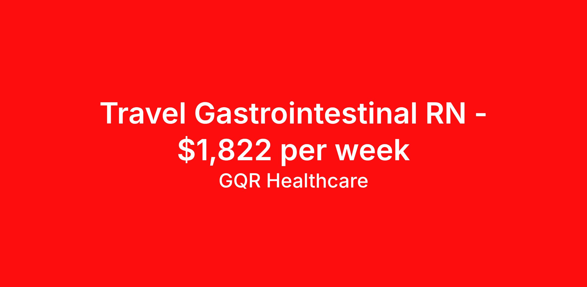 GQR Healthcare is seeking a travel nurse RN Endoscopy for a travel nursing job in Baltimore, Maryland. Job Description & Requirements Specialty: Endoscopy Discipline: RN Start Date: 04/13/2026 Duration: 13 weeks 36 hours per week Shift: 12 hours, nights Employment Type: Travel Contract - W2 GI/Endo Registered Nurse (RN) Job Location: Baltimore, Maryland Start Date: April 13, 2026 Profession: Registered Nurse (RN) Facility: Estimated Pay: $1821.97 - $1916.97 Duration:13 weeks Specialty:GI/Endo Shift: Night Shift Details: null Night Job Type: Travel *Estimated weekly pay includes projected hourly wages and weekly meal and lodging per diems for eligible clinicians based on nationally published GSA rates. Actual weekly pay and per diems may differ from the amount shown and are subject to change during an assignment. Benefits: Day 1 Insurance Cigna medical, MetLife dental and vision insurance License reimbursement for new licenses needed for each assignment Discounts with hotels and rental cars A dedicated recruiter and support team that will help you every step of the way to sure you start on time and have an exceptional experience Referral bonus up to $700 About the Company: Finding the right role is about more than just matching skills to a job—it’s about aligning with your goals, values, and the way you want to work. As an award-winning talent partner, we support healthcare professionals through every step of that process, offering meaningful opportunities, clear guidance, and long-term partnership. From our first conversation to your first day on the job (and beyond!), we’re here to help you move forward with confidence. GQR Job ID 786913. Pay package is based on 12 hour shifts and 36 hours per week (subject to confirmation) with tax-free stipend amount to be determined. Posted job title: Registered Nurse (RN) About GQR Healthcare GQR’s Healthcare team specializes in connecting experts within the industry to highly skilled healthcare professionals across the US market. In the competitive healthcare market, we recognize that the industry’s common goals of improved quality of care and patient outcomes are wholly reliant upon the professionals directly supporting these initiatives. Leveraging our extensive candidate network, we deliver continuity of care for the communities our partners serve to ensure the patient experience is of the highest quality. Through deep market specialization and a unique approach to talent acquisition, GQR Healthcare provides an unparalleled and personalized experience across all medical specialties in nursing and within diverse healthcare platforms across the industry.