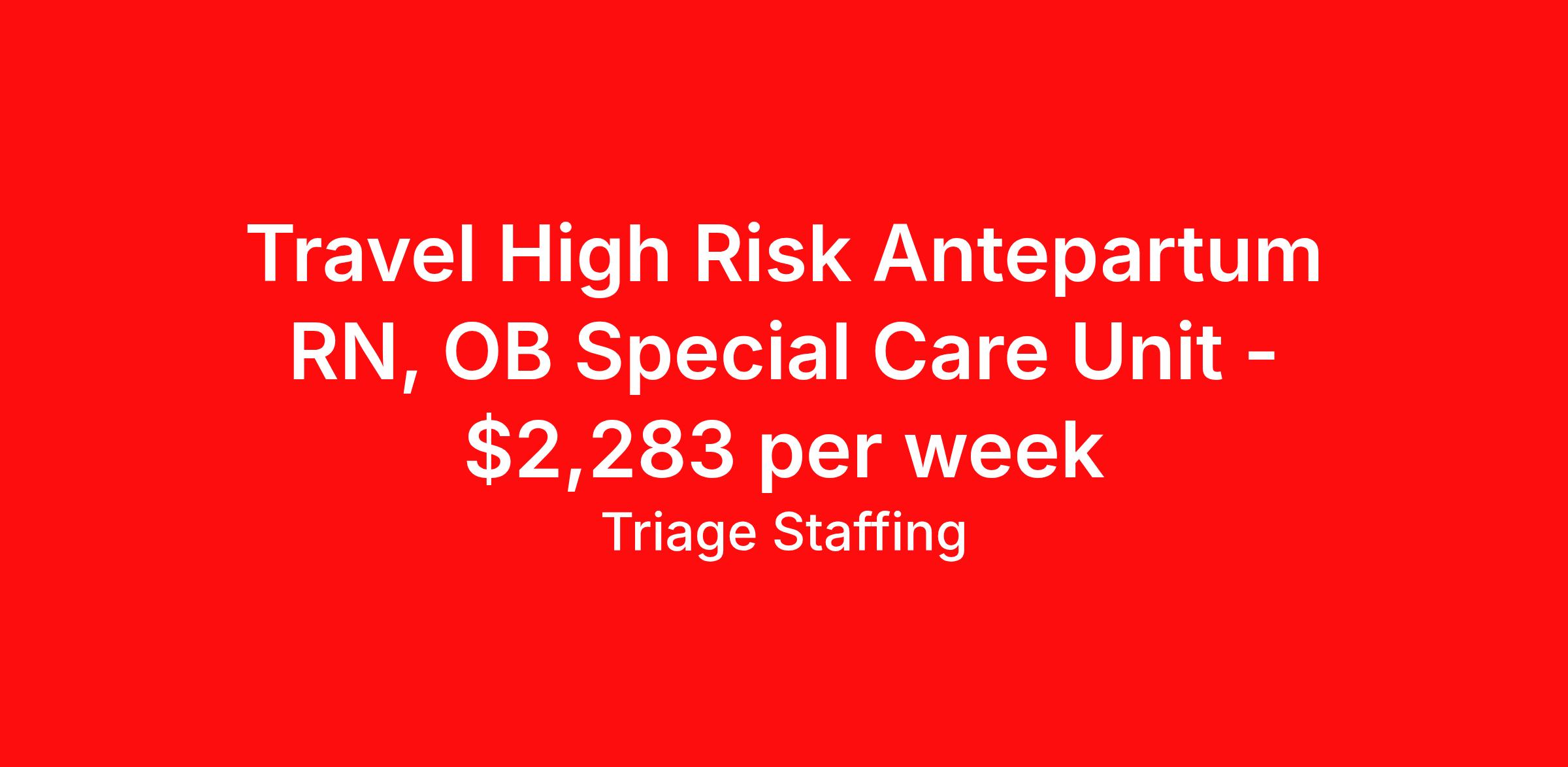 Travel High Risk Antepartum RN, OB Special Care Unit - $2,283 per week