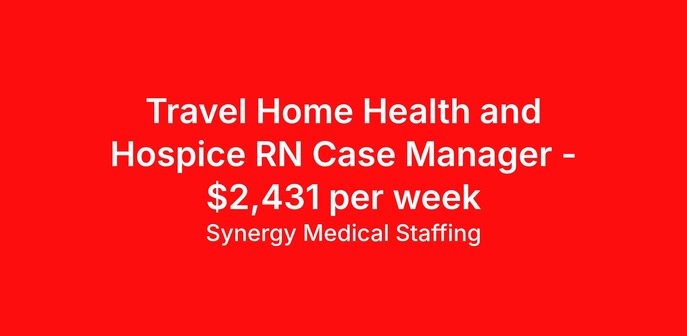 Synergy Medical Staffing is seeking a travel nurse RN Home Health for a travel nursing job in Missoula, Montana. Job Description & Requirements Specialty: Home Health Discipline: RN Start Date: 03/23/2026 Duration: 13 weeks 40 hours per week Shift: 8 hours, days Employment Type: Travel Travel, RN - Home Health Location: Missoula, Montana Shift: 5x8 Days, 08:00:00-16:00:00, 8.00-5 Duration 13 Weeks When you join Synergy Medical Staffing, you’ll have a dedicated recruiter helping you at all times. Your recruiter is a cross between a career coach and a concierge. They will help you fine-tune your resume, find your next job, and locate an apartment (even one that takes pets!). Make one call and get help with everything from placement to housing to payroll, even travel directions! As a travel, contract and permanent placement medical staffing company with over 20 years of experience in the industry, we understand your needs. Synergy’s Benefits are best in class and include the following: 401K that matches up to 5% of your pay and you are 100% vested from Day 1. Medical, Dental, Vision, Life insurance, Long and short-term disability and others Loyality Program Weekly pay Holiday Pay (varies by Assignment) Guaranteed Hours (varies by Assignment) Referral bonus Continuing Education License and certification reimbursement Synergy Medical Staffing Job ID 36158154. Pay package is based on 8 hour shifts and 40.0 hours per week (subject to confirmation) with tax-free stipend amount to be determined. Posted job title: RN:Home Health,08:00:00-16:00:00 About Synergy Medical Staffing When you join Synergy Medical Staffing, you’ll have a dedicated recruiter helping you at all times. Your recruiter is a cross between a career coach and a concierge. They will help you fine-tune your resume, find your next job, and locate an apartment (even one that takes pets!). Make one call and get help with everything from placement to housing to payroll, even travel directions! As a travel, contract and permanent placement medical staffing company with over 12 years of experience in the industry, we understand your needs. Are you interested in traveling, or just a job around the corner? Whatever your preference, you can be sure there are plenty of Nursing Jobs, Allied Jobs and Physical Therapy Jobs, Occupational Therapy Jobs, Speech Therapy Jobs and Rehab Therapy jobs anywhere you want to go. Synergy Medical Staffing professionals have been in the Medical staffing employment and staffing industry for over 12 years, and have developed solid relationships with numerous healthcare facilities nationwide. Contact us now and expand your medical career with new opportunities from Synergy Medical Staffing. Synergy’s Benefits are best in class and include the following 401K Day 1 Full Medical, Dental, Vision, Life insurance, Long and short term disability and others Student Loan Repayment and CEU reimbursement Loyalty bonus after 600 hours Benefits Discount program Weekly pay Holiday Pay Guaranteed Hours Referral bonus Medical benefits Dental benefits Continuing Education License and certification reimbursement Life insurance 401k retirement plan Cancelation protection Vision benefits