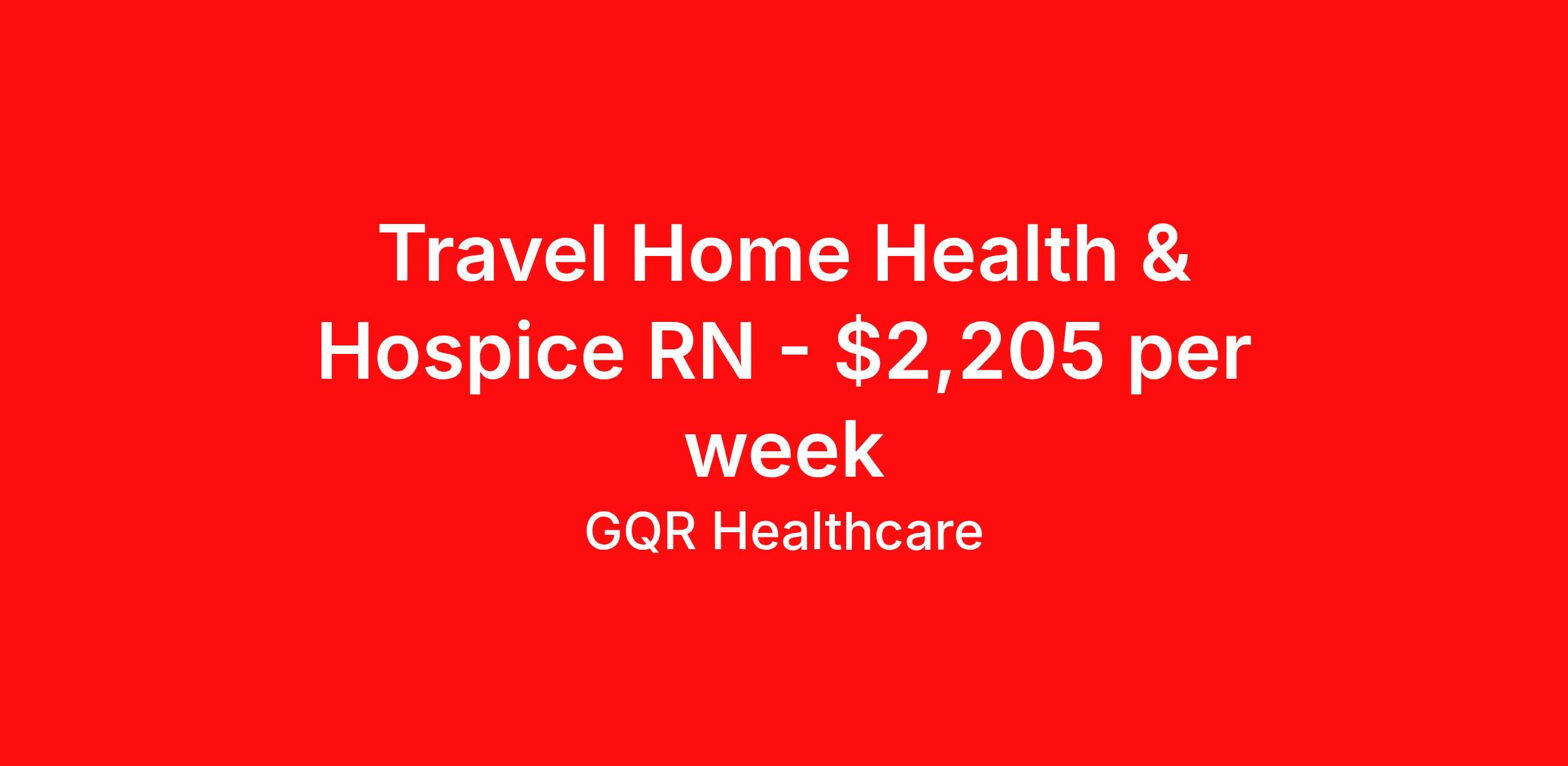 GQR Healthcare is seeking a travel nurse RN Home Health for a travel nursing job in Dickinson, North Dakota. Job Description & Requirements Specialty: Home Health Discipline: RN Start Date: 04/06/2026 Duration: 13 weeks 40 hours per week Shift: 8 hours Employment Type: Travel Contract - W2 Home Health | Hospice Registered Nurse (RN) Job Location: Dickinson, North Dakota Start Date: April 6, 2026 Profession: Registered Nurse (RN) Facility: Estimated Pay: $2204.8 - $2299.8 Duration:13 weeks Specialty:Home Health | Hospice Shift: Shift Details: null null Job Type: Travel *Estimated weekly pay includes projected hourly wages and weekly meal and lodging per diems for eligible clinicians based on nationally published GSA rates. Actual weekly pay and per diems may differ from the amount shown and are subject to change during an assignment. Benefits: Day 1 Insurance Cigna medical, MetLife dental and vision insurance License reimbursement for new licenses needed for each assignment Discounts with hotels and rental cars A dedicated recruiter and support team that will help you every step of the way to sure you start on time and have an exceptional experience Referral bonus up to $700 About the Company: Finding the right role is about more than just matching skills to a job—it’s about aligning with your goals, values, and the way you want to work. As an award-winning talent partner, we support healthcare professionals through every step of that process, offering meaningful opportunities, clear guidance, and long-term partnership. From our first conversation to your first day on the job (and beyond!), we’re here to help you move forward with confidence. GQR Job ID 781703. Pay package is based on 8 hour shifts and 40 hours per week (subject to confirmation) with tax-free stipend amount to be determined. Posted job title: Registered Nurse (RN) About GQR Healthcare GQR’s Healthcare team specializes in connecting experts within the industry to highly skilled healthcare professionals across the US market. In the competitive healthcare market, we recognize that the industry’s common goals of improved quality of care and patient outcomes are wholly reliant upon the professionals directly supporting these initiatives. Leveraging our extensive candidate network, we deliver continuity of care for the communities our partners serve to ensure the patient experience is of the highest quality. Through deep market specialization and a unique approach to talent acquisition, GQR Healthcare provides an unparalleled and personalized experience across all medical specialties in nursing and within diverse healthcare platforms across the industry.