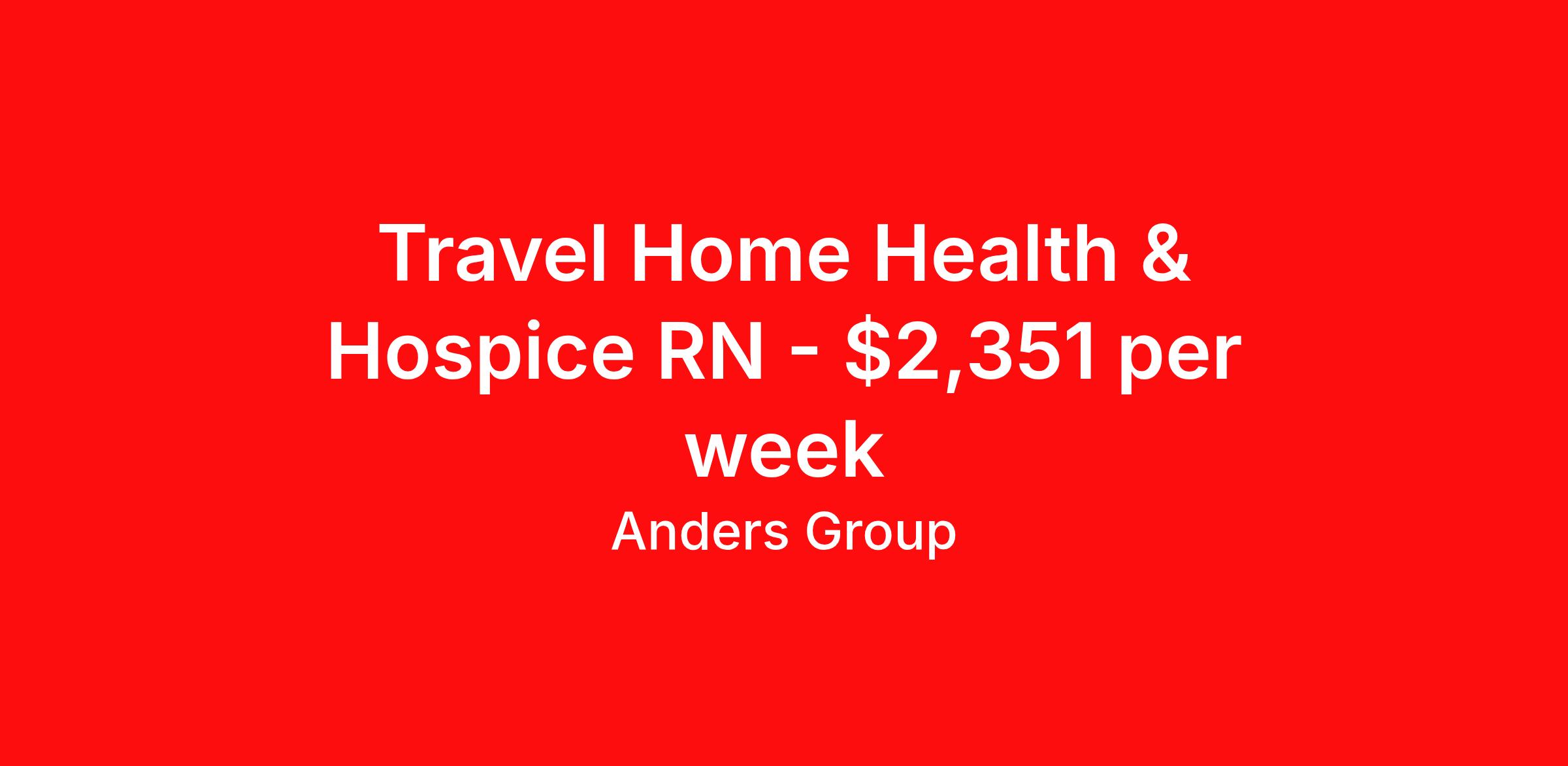 Anders Group is seeking a travel nurse RN Home Health Hospice for a travel nursing job in Williston, North Dakota. Job Description & Requirements Specialty: Hospice Discipline: RN Start Date: 04/06/2026 Duration: 13 weeks 40 hours per week Shift: 8 hours, days Employment Type: Travel Anders Group Job ID 995598. Pay package is based on 8 hour shifts and 40 hours per week (subject to confirmation) with tax-free stipend amount to be determined. Posted job title: RN (Registered Nurse) About Anders Group WHY ANDERS? Anders Group is a Joint Commission accredited staffing agency and stands out from other agencies by our commitment to making sure our travelers are given the best customer service. Our team works hard to find the best jobs with the most aggressive rates! Anders Group offers rewarding assignments and competitive compensation packages, nationwide! We offer the following benefits from day one: Health Insurance, Including a Buy-up Option Dental Insurance Vision Insurance Life Insurance 401(k) Licensure Reimbursement Premium Pay Packages CEU Reimbursements Daily Per Diems Travel Reimbursements Rental Car Allowances Continuing Education Resources Referral Bonus And Many More! THE ANDERS DIFFERENCE You're committed to providing exceptional healthcare. We're committed to you. Anders Group was founded by a team of healthcare recruiters who had built strong relationships with healthcare facilities and professionals nationwide. As staffing firms shifted their focus to numbers and margins, these recruiters saw a need for a company to take a different approach to staffing. Anders Group was founded in 2010 to do just that. We focus on individual and facility goals to make quality placements. Great people working with great facilities make for the best placements. Through our focus on providing the best experience to Allied and Nursing health care professionals, Anders Group has grown to be a top staffing firm in Healthcare. We look forward to working with you! Benefits Medical benefits Dental benefits Vision benefits Life insurance 401k retirement plan License and certification reimbursement Continuing Education Referral bonus