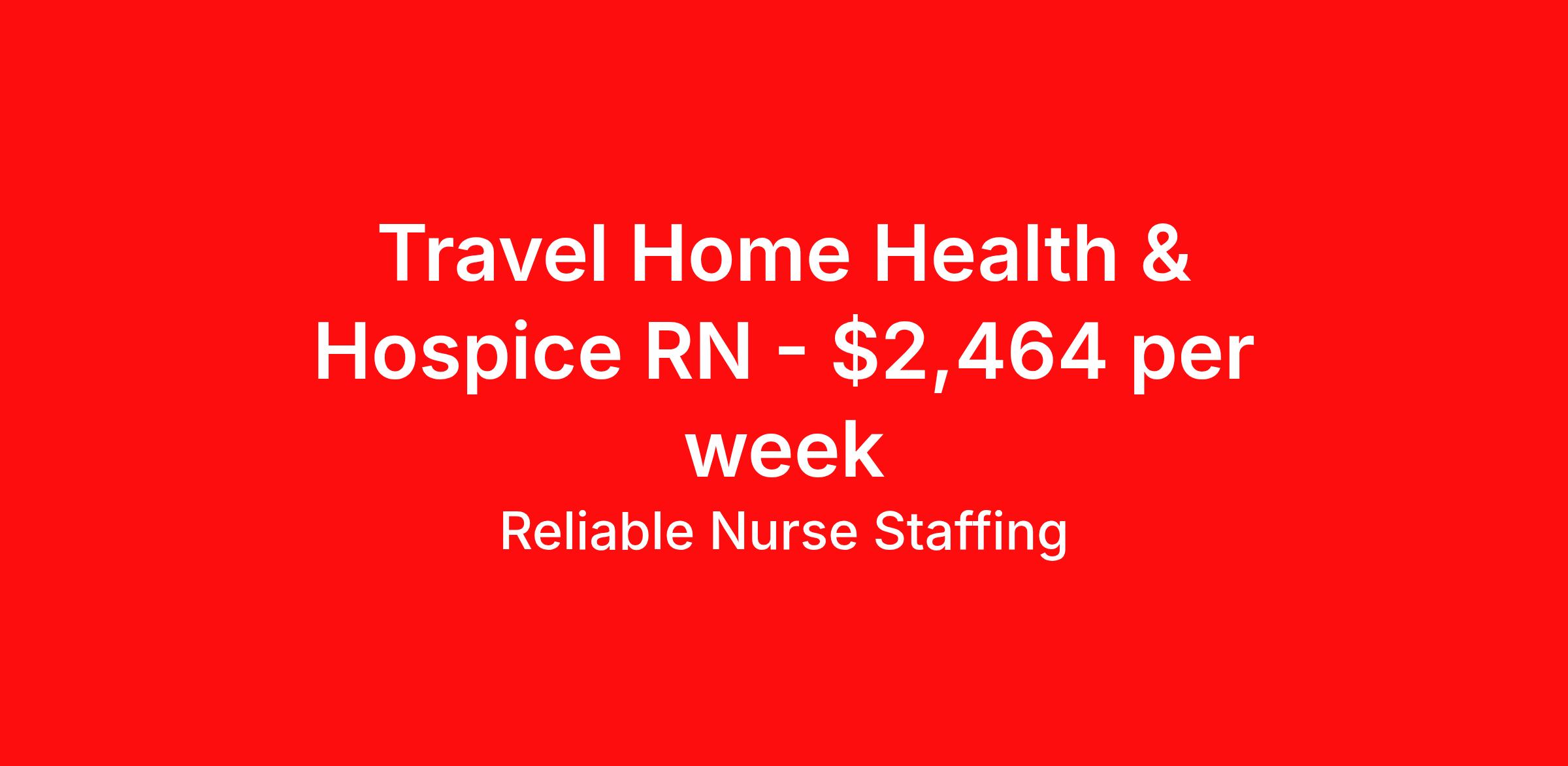 Reliable Nurse Staffing is seeking a travel nurse RN Home Health Hospice for a travel nursing job in Williston, North Dakota. Job Description & Requirements Specialty: Hospice Discipline: RN Start Date: 04/06/2026 Duration: 13 weeks 40 hours per week Shift: 8 hours, days Employment Type: Travel Reliable Nurse Staffing Job ID 59953610. Pay package is based on 8 hour shifts and 40 hours per week (subject to confirmation) with tax-free stipend amount to be determined. About Reliable Nurse Staffing Providing reliable, competent, and compassionate care to our patients and clients. Benefits Weekly pay Holiday Pay Guaranteed Hours Referral bonus Medical benefits Dental benefits Vision benefits Life insurance