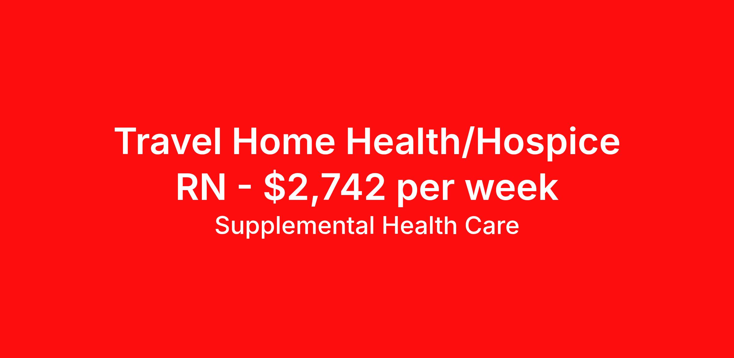 Supplemental Health Care is seeking a travel nurse RN Home Health for a travel nursing job in Tukwila, Washington. Job Description & Requirements Specialty: Home Health Discipline: RN Start Date: ASAP Duration: 13 weeks 40 hours per week Shift: 8 hours, days Employment Type: Travel Job Description: Supplemental Health Care is hiring experienced RNs with recent Medicare-certified visits experience for home health contracts in Tukwila, Washington and the surrounding areas. Whether you’re looking to travel or stay local, we’re committed to helping Home Health Registered Nurses find the right fit with top healthcare facilities across the country. With more than 40 years of experience in healthcare staffing, Supplemental Health Care offers reliable support, competitive pay, and great benefits every step of the way. Qualifications: OASIS/Medicare Certified Visits Experience Electronic Charting experience Minimum of 1 year of recent home health nursing experience (private duty does not qualify) Current Washington RN License American Heart Association BLS Valid U.S. Driver's License Home Health RN Contract Details: $2,460 - $2,742 per week* 13-week contract SHC Home Health Nurses are paid by the hour, not by the visit Nurse will have a designated territory of coverage Average weekly expectation is 30 units of productivity Home Health contracts with SHC require previous experience with OASIS/Medicare Certified Visits We know that at-home healthcare is a very different environment and requires specialized knowledge and support for our nurses to be successful. We offer the benefits, career guidance, and round-the-clock assistance that you want from your home health employment partner. That’s why over 80% of our working home health nurses say they would recommend us to a friend. Apply today to get started with this Home Health RN contract opportunity, or talk to our team about the full range of Registered Nurse opportunities available. What We Offer: Full medical, dental, vision, life, and even pet insurance! Round the clock support. No matter where you are or what time it is, Supplemental Health Care is standing by. SHC's Share the Care referral program is the most dynamic, profitable referral program in the industry. 401(k) Retirement Savings Program with a wide range of investment options. Discounted and free online access to CEU courses through Supplemental University. Please speak with a recruiter for details. Supplemental Health Care is an Equal Opportunity Employer. All candidates, including veterans and those with disabilities, are encouraged to apply. SHC will consider for employment qualified applicants with criminal histories in a manner consistent with the requirements of applicable local, state, or federal law. To learn more, visit www.shccares.com/eeo Supplemental Health Care Job ID 1469399. Pay package is based on 8 hour shifts and 40 hours per week (subject to confirmation) with tax-free stipend amount to be determined. Posted job title: Home Health RN About Supplemental Health Care At Supplemental Health Care, a simple belief in the power of caring guides a unique commitment to world-class service in healthcare staffing. For 40 years, we’ve supported talented professionals pursuing their life calling in hospitals, schools, home health, corrections, behavioral health, and other settings. At SHC, we inspire vital connections and enrich lives and inspire better outcomes. As recipients of the Best in Staffing Awards for both Client and Talent, Supplemental Health Care is proud to be among only 2% of staffing companies singled out for the distinction based on the real feedback of our employees and the clients we serve. SHC has also earned The Joint Commission’s Gold Seal of Approval and is named among the Largest Health Care Staffing companies in the United States by Staffing Industry Analysts. We are also thrilled to recognize our very own SLP, Dr. Kelly Byrd as the American Staffing Association 2024 National Staffing Employee of the Year and Health Care Sector All-Star. We’re honored to connect Dr. Byrd to employment, share her incredible story, and support her family literacy nonprofit. For everyone that we serve, SHC is the place where caring hearts thrive. Benefits Referral bonus Benefits start day 1 401k retirement plan Continuing Education Discount program Health savings account
