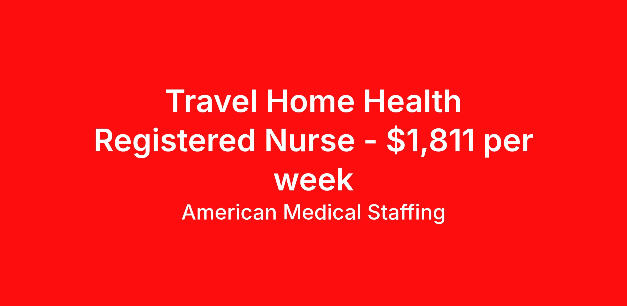 American Medical Staffing is seeking a travel nurse RN Home Health for a travel nursing job in Tampa, Florida. Job Description & Requirements Specialty: Home Health Discipline: RN Start Date: 04/20/2026 Duration: 20 weeks 40 hours per week Shift: 8 hours, days Employment Type: Travel We’re living in the new normal. Lives and careers look different today. So why shouldn’t you have a role that delivers excitement, fewer restrictions, and brings you closer to loved ones? At American Medical Staffing (AMS), we believe in supporting the pioneers who embody the sense of adventure each new placement brings, and we’re looking for a RN for a Home Health contract assignment. Job Title : RN: Home Health Location : Tampa, Florida Setting : Home Health Pay Range : Competitive, Negotiable, with Weekly Pay Schedule : 8-Hour Days, 07:00:00-15:00:00, 8.00-5 Contract Length : 13 Weeks Requirements : · 2 years of experience as a RN · Valid RN license · Be willing to obtain Florida licensure · Experience with OASIS and Homecare Homebase EMR systems Why Choose American Medical Staffing? · Day-One Benefits : Medical, dental, and vision plans with no waiting period. · Wellness PTO : Build 1 or 2 weeks of paid time off into your contract. · Hotel Discounts : Save up to 60% on hotel bookings with access to 700,000 discounted properties. · Loyalty Program : Earn financial incentives automatically based on hours worked and assignment type. · Referral Program : $500 for you and $500 for each referral after 450 hours—no limits · Working Advantage : Access exclusive discounts on retail, entertainment, and travel. · Scrub Discount : 20% off all scrubs through our customized AMS store. · Retirement Plans : 401(k) options to help you plan for the future. · Compliance & Credentialing Support : Let us handle the logistics so you can focus on patient care. Apply now to take the next step in your journey. American Medical Staffing is an Equal Employment Opportunity Employer and does not discriminate on the basis of race, color, religion, sex, national origin, sexual orientation, gender identity, disability, age, or any other non-merit factor. American Medical Staffing Job ID 110766. Pay package is based on 8 hour shifts and 40.0 hours per week (subject to confirmation) with tax-free stipend amount to be determined. Posted job title: RN:Home Health,07:00:00-15:00:00 About American Medical Staffing American Medical Staffing is a staffing agency headquartered in Baltimore, MD. Our goal is to CREATE an extraordinary experience for our health care professionals. Our roots are nurse owned and operated so we know what clinicians want - lots of options, a smooth and informed placement process, competitive and accurate pay, great customer service and responsiveness to requests, and advocacy when there is an issue. When AMS was founded in 2001, we started our company with a mission to be a better agency than our competitors. We have always put a heavy emphasis into what is best for our employees, not necessarily just our clients or our company. You are not an expense as you may be to a hospital; you are an asset. We take employee advocacy seriously; you are not just a number to us. The end result is that you don`t work for us; we work for you. Since starting in Baltimore, MD, we continue to grow throughout the country. Check out our industry leading reviews on Google and Indeed to see how much our clinicians enjoy working with us! · Benefits: AMS offers an array of benefits for any employee working 30 hours or more! Those eligible employees who choose to participate will pay the premiums with deductions from their pre-tax earnings. We offer a complete benefits package including Health Insurance, 401K with up to 2% match, Life, Vision, and Dental. From health and wellness support, financial or legal needs, or help with life's everyday challenges, our Employee Assistance Program provides you with resources, services and discounts to help you manage your unique concerns and save time, energy and money. We also offer additional Employee Perks that you can enjoy as an AMS employee: Scrubin – Uniform Discounts Working Advantage – unlimited access to thousands of exclusive discounts and special offers nationwide for theme parks, shows, tours, attractions, sports, concerts, hotels, rental cars, retail gift cards, movie tickets and much more Hotel Engine - Save up to 60% when booking hotel rooms, with access to more than 700,000 deeply discounted hotels worldwide. Discounted Pet Insurance Wellness Program, including fitness, nutrition and financial wellness Betterhelp - 1 month of free therapy, followed by a discounted rate for our Healthcare Professionals and their family members. Win Win Referral Bonus - $500 for you, and $500 for them! Benefits 401k retirement plan Life insurance Medical benefits Dental benefits Vision benefits