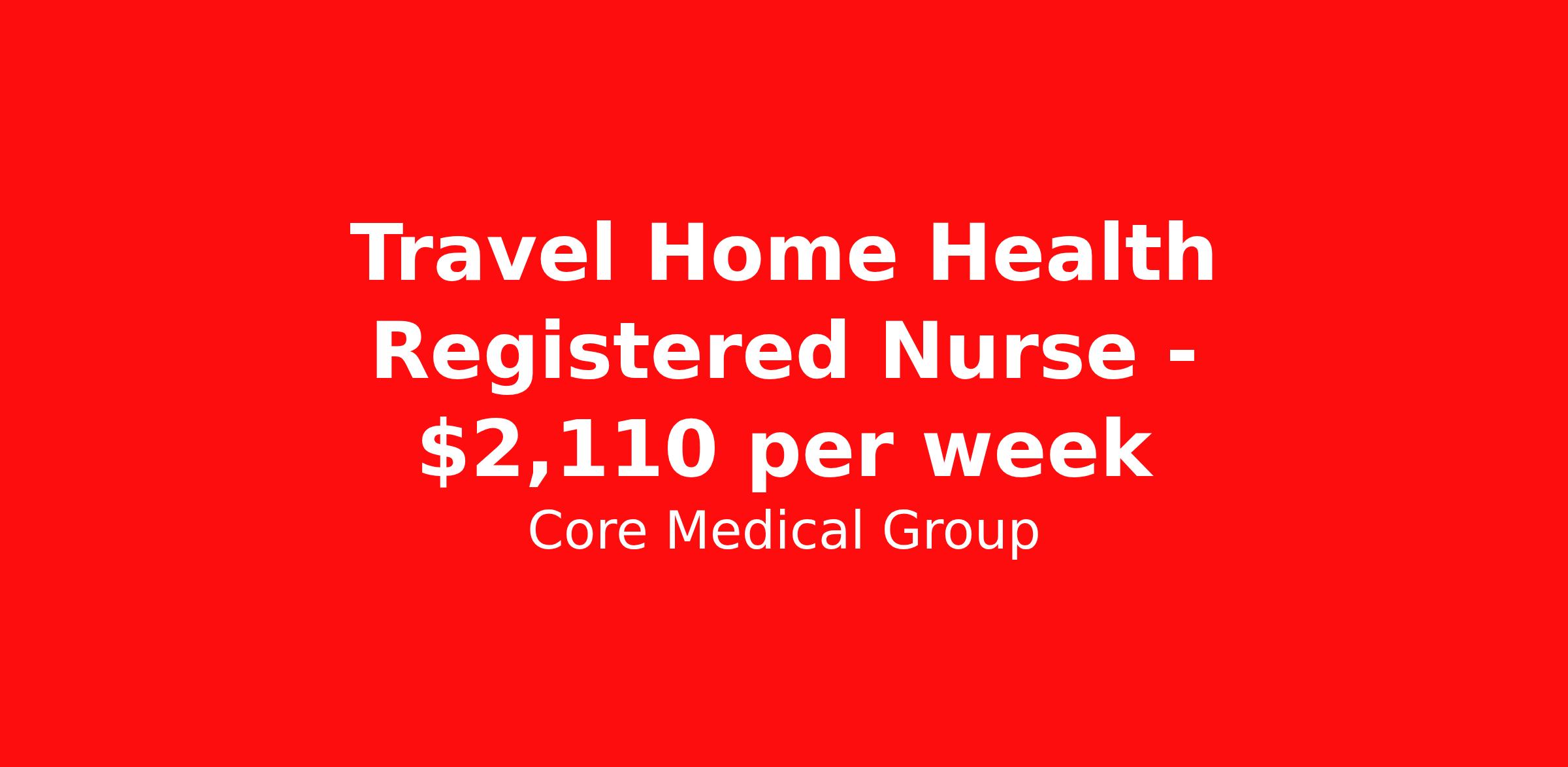 Core Medical Group is seeking a travel nurse RN Home Health for a travel nursing job in Glasgow, Kentucky. Job Description & Requirements Specialty: Home Health Discipline: RN Start Date: 03/23/2026 Duration: 13 weeks 40 hours per week Shift: 8 hours Employment Type: Travel Client in KY seeking Registered Nurse: Case Manager for the following shift(s): Days We are looking for a healthcare professional who is ready to provide exceptional patient care in this contract/travel role. Contract/travel assignments are typically 13 weeks, with potential to extend. Help us continue our mission to connect people, improve lives, and give back to the community by joining the CoreMedical Group team. When you work with CoreMedical Group, we put you first and treat you like family, supporting you every step of the way. CoreMedical Group is one of the largest healthcare staffing agencies in the country, with travel and contract positions located across the United States. Our recruiters will help you find the perfect job, whether it's across the country or across the street. In addition to dedicated, personalized support from your recruiter, when you work with CoreMedical Group you'll receive: Access to an extensive benefits package, including day 1 health, dental, and vision insurance, employer paid life insurance, a health reimbursement account, and more! Weekly paychecks with competitive pay packages Matching 401(k) benefits to help you save for retirement Licensure assistance and reimbursement to set you up for success on your contract Travel reimbursement and dedicated housing support while on assignment Referral cash bonuses when you connect us with other clinicians CoreMedical Group also offers you a free, all-inclusive vacation each year as our way of saying "thank you" for your hard work. Join other healthcare professionals on the annual Club CoreMed retreat and you'll see why our contract and travel professionals come back to us year after year! Your career is too valuable to tackle on your own. Let CoreMedical Group help you with your healthcare journey! *Estimate of weekly payments is intended for informational purposes and includes hourly wages, as well as reimbursements for meal & incidental expenses, and housing expenses incurred on behalf of the Company. Any benefits (medical/dental/vision) are in addition to the weekly pay. Please speak with your Recruiter for additional details. Estimated payments are subject to change until formal offer of assignment is made and accepted. Core Medical Group Job ID 1354817. Pay package is based on 8 hour shifts and 40 hours per week (subject to confirmation) with tax-free stipend amount to be determined. Posted job title: RN About Core Medical Group CoreMedical Group is one of the largest healthcare staffing agencies in the country. We have jobs nationwide in travel nursing, travel allied health, interim, locum tenens, and permanent placements! Join the staffing agency with Club CoreMed, the best perk in the industry - an all inclusive paid trip to a tropical resort! Benefits Weekly pay Holiday Pay Guaranteed Hours Continuing Education 401k retirement plan Pet insurance Company provided housing options Sick pay Wellness and fitness programs Mileage reimbursement Referral bonus Employee assistance programs Medical benefits Dental benefits Vision benefits Benefits start day 1 License and certification reimbursement Life insurance Discount program