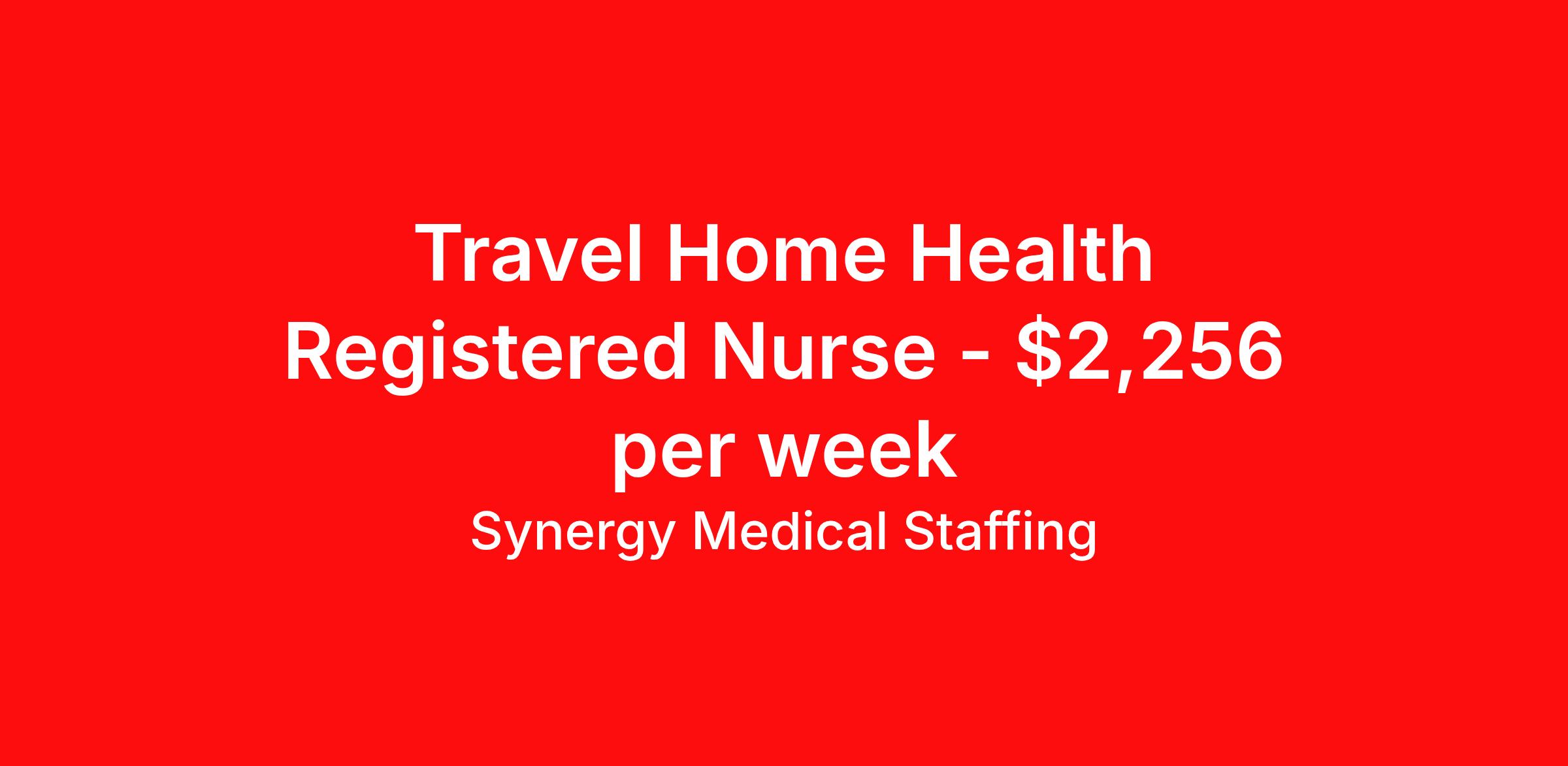 Synergy Medical Staffing is seeking a travel nurse RN Home Health for a travel nursing job in Cheraw, South Carolina. Job Description & Requirements Specialty: Home Health Discipline: RN Start Date: 04/03/2026 Duration: 13 weeks 40 hours per week Shift: 8 hours Employment Type: Travel Travel, RN - Home Health Location: Cheraw, South Carolina Shift: 8 Hrs, 08:00:00-16:00:00, 8.00-5 Duration 13 Weeks When you join Synergy Medical Staffing, you’ll have a dedicated recruiter helping you at all times. Your recruiter is a cross between a career coach and a concierge. They will help you fine-tune your resume, find your next job, and locate an apartment (even one that takes pets!). Make one call and get help with everything from placement to housing to payroll, even travel directions! As a travel, contract and permanent placement medical staffing company with over 20 years of experience in the industry, we understand your needs. Synergy’s Benefits are best in class and include the following: 401K that matches up to 5% of your pay and you are 100% vested from Day 1. Medical, Dental, Vision, Life insurance, Long and short-term disability and others Loyality Program Weekly pay Holiday Pay (varies by Assignment) Guaranteed Hours (varies by Assignment) Referral bonus Continuing Education License and certification reimbursement Synergy Medical Staffing Job ID 36188846. Pay package is based on 8 hour shifts and 40.0 hours per week (subject to confirmation) with tax-free stipend amount to be determined. Posted job title: RN:Home Health,08:00:00-16:00:00 About Synergy Medical Staffing When you join Synergy Medical Staffing, you’ll have a dedicated recruiter helping you at all times. Your recruiter is a cross between a career coach and a concierge. They will help you fine-tune your resume, find your next job, and locate an apartment (even one that takes pets!). Make one call and get help with everything from placement to housing to payroll, even travel directions! As a travel, contract and permanent placement medical staffing company with over 12 years of experience in the industry, we understand your needs. Are you interested in traveling, or just a job around the corner? Whatever your preference, you can be sure there are plenty of Nursing Jobs, Allied Jobs and Physical Therapy Jobs, Occupational Therapy Jobs, Speech Therapy Jobs and Rehab Therapy jobs anywhere you want to go. Synergy Medical Staffing professionals have been in the Medical staffing employment and staffing industry for over 12 years, and have developed solid relationships with numerous healthcare facilities nationwide. Contact us now and expand your medical career with new opportunities from Synergy Medical Staffing. Synergy’s Benefits are best in class and include the following 401K Day 1 Full Medical, Dental, Vision, Life insurance, Long and short term disability and others Student Loan Repayment and CEU reimbursement Loyalty bonus after 600 hours Benefits Discount program Weekly pay Holiday Pay Guaranteed Hours Referral bonus Medical benefits Dental benefits Continuing Education License and certification reimbursement Life insurance 401k retirement plan Cancelation protection Vision benefits
