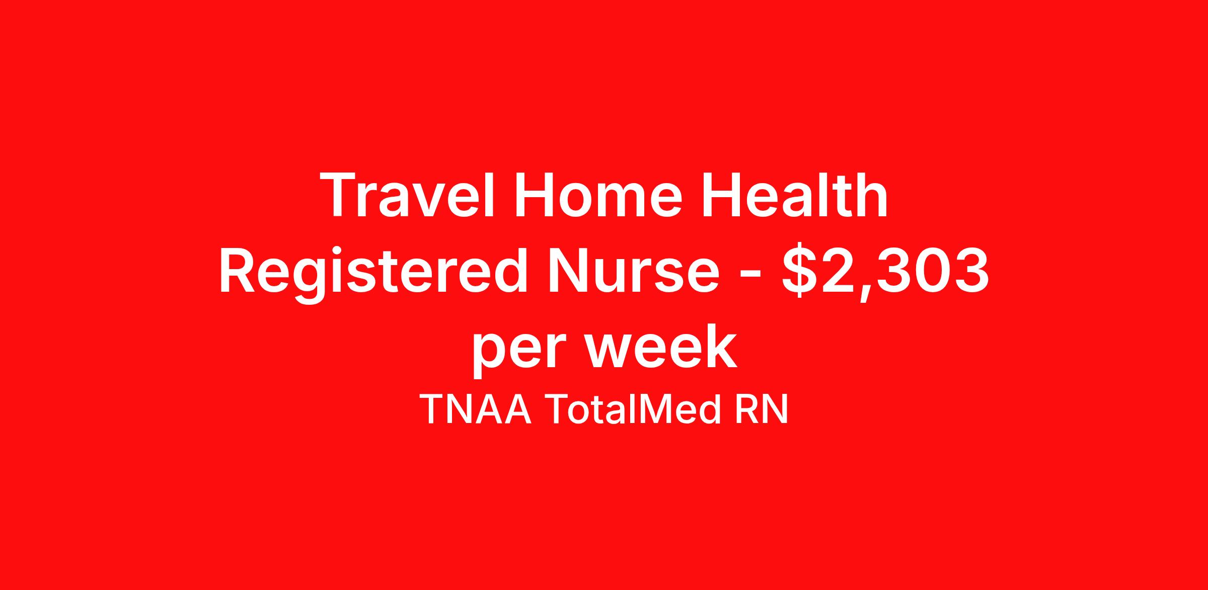TNAA TotalMed RN is seeking a travel nurse RN Home Health for a travel nursing job in Bala Cynwyd, Pennsylvania. Job Description & Requirements Specialty: Home Health Discipline: RN Start Date: 04/20/2026 Duration: 13 weeks 40 hours per week Shift: 8 hours, days Employment Type: Travel We're looking for Home Health RNs for an immediate travel opening in Bala Cynwyd, PA. The right RN should have 1 year of experience in Home Health nursing. Read below for more requirements. As an RN in Home Health, you will provide skilled nursing care to patients in their homes, supporting recovery, chronic disease management, and overall wellness. You'll work independently and collaboratively with the healthcare team to promote patient-centered care and improve health outcomes. As an RN, you should be prepared to perform the following tasks: Perform comprehensive patient assessments and develop individualized care plans Administer medications, treatments, and wound care as prescribed Monitor patient progress and adjust care plans accordingly Educate patients and families on disease management, medication use, and health maintenance Coordinate care with physicians, therapists, and other healthcare providers Provide skilled nursing interventions such as IV therapy, catheter care, and respiratory support Document nursing care, patient responses, and progress accurately and timely Identify and report any changes in patient condition promptly Ensure compliance with infection control, safety, and regulatory standards Manage time efficiently to meet patient visit schedules and maintain reliable communication The ideal candidate must have at least one year of experience as an RN in a Home Health setting. Additionally, they should possess a current BLS certification and be eligible for State licensure. Additional certifications may be required. RNs in home health should be autonomous, organized, and compassionate, able to provide high-quality care in a patient's home environment. Requirements*: BLS, 2 Years * Additional certifications may be required before beginning an assignment. TotalMed Travel Job ID 1396585. Pay package is based on 8 hour shifts and 40 hours per week (subject to confirmation) with tax-free stipend amount to be determined. Posted job title: Home Health - Home Health RN - Travel Nurse About TNAA TotalMed RN TotalMed is a Top Ten, travel nursing and healthcare staffing agency with the mission of igniting purpose in healthcare. The organization staffs nurses, therapists, pharmacists, and other clinicians of all specialties in all 50 states. They offer local and travel jobs and match caregivers with the right organization to assist both facilities and patients. As an organization, they focus on putting highly-skilled staff into facilities to ensure adequate staffing for a better patient experience. TotalMed specializes in recruiting and placing healthcare professionals in travel, PRN, and permanent positions across the country in Nursing and Allied Health. Throughout 2020, the organization filled roles at even the most short-staffed facilities during the most challenging time in healthcare. By matching the right travel healthcare professional with the right organization, TotalMed continues to offer a lifeline to facilities and their patients. Benefits Weekly pay Guaranteed Hours Continuing Education 401k retirement plan Sick pay Wellness and fitness programs Referral bonus Employee assistance programs Medical benefits Dental benefits Vision benefits Benefits start day 1