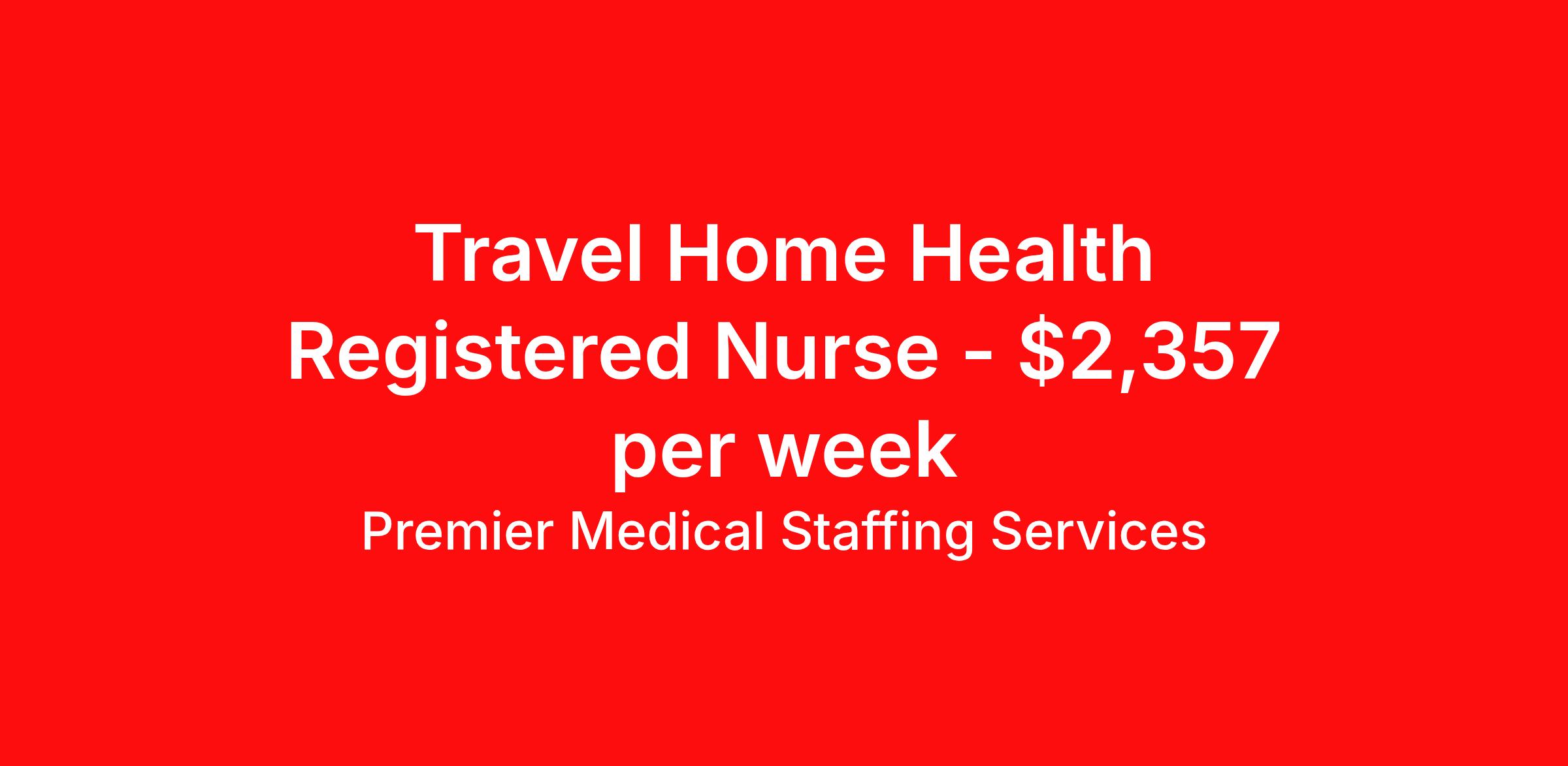 Premier Medical Staffing Services is seeking a travel nurse RN Home Health for a travel nursing job in Dickinson, North Dakota. Job Description & Requirements Specialty: Home Health Discipline: RN Start Date: 04/06/2026 Duration: 13 weeks 40 hours per week Shift: 8 hours Employment Type: Travel Premier Medical Staffing Job ID 623772. Pay package is based on 8 hour shifts and 40 hours per week (subject to confirmation) with tax-free stipend amount to be determined. Posted job title: RN Home Health About Premier Medical Staffing Services Premier Medical Staffing Services, LLC is a nationally expanding healthcare staffing firm for healthcare professionals and companies. We understand our clients’ need for highly qualified, expertly trained medical professionals and are passionate about helping clinicians find employment opportunities that fit their personality and needs. Able to accommodate the ever-changing needs of the healthcare landscape, we offer per-diem, contract and direct hire placements to support the unique needs of each industry sector. Premier Medical Staffing Services is Joint Commission Certified, a Military Spouse Employment Partner and is certified as a Women’s Business Enterprise. We are proudly nurse owned.