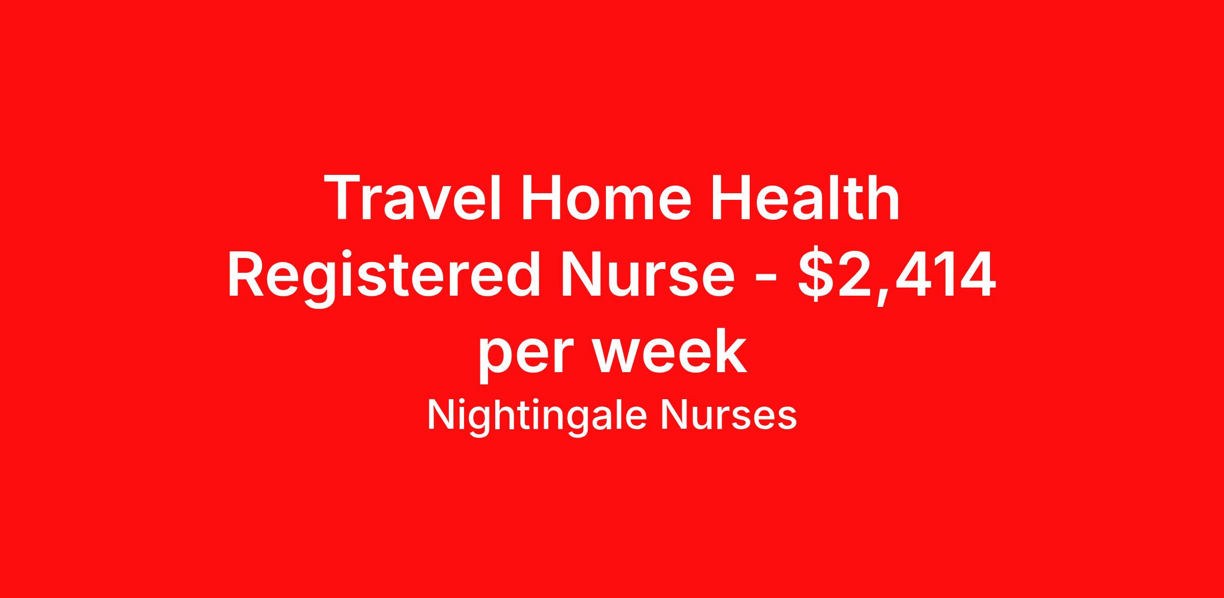 Nightingale Nurses is seeking a travel nurse RN Home Health for a travel nursing job in Bala Cynwyd, Pennsylvania. Job Description & Requirements Specialty: Home Health Discipline: RN Start Date: 04/20/2026 Duration: 13 weeks 40 hours per week Shift: 8 hours, days Employment Type: Travel About Nightingale Nurses the first name in travel nursing You may not realize it, but as an RN with real world hospital experience, you are legendary. To the lives you’ve helped save, the patients you’ve cared for, and to the hospitals where you’ve done it. And you’re just getting started. Legendary is where Nightingale begins. We’re the first name in travel nursing, representing only the very best RNs. That’s why hospitals prefer us, allowing us to offer exceptional travel nursing assignments all over the US, as well as the highest pay rates and most extensive benefits in the industry. Nightingale facilitates every aspect of your travel nursing assignment, so you can focus on doing what you do best. We want you to grow, explore, and enjoy unrivaled liberty, the freedom to nurse.