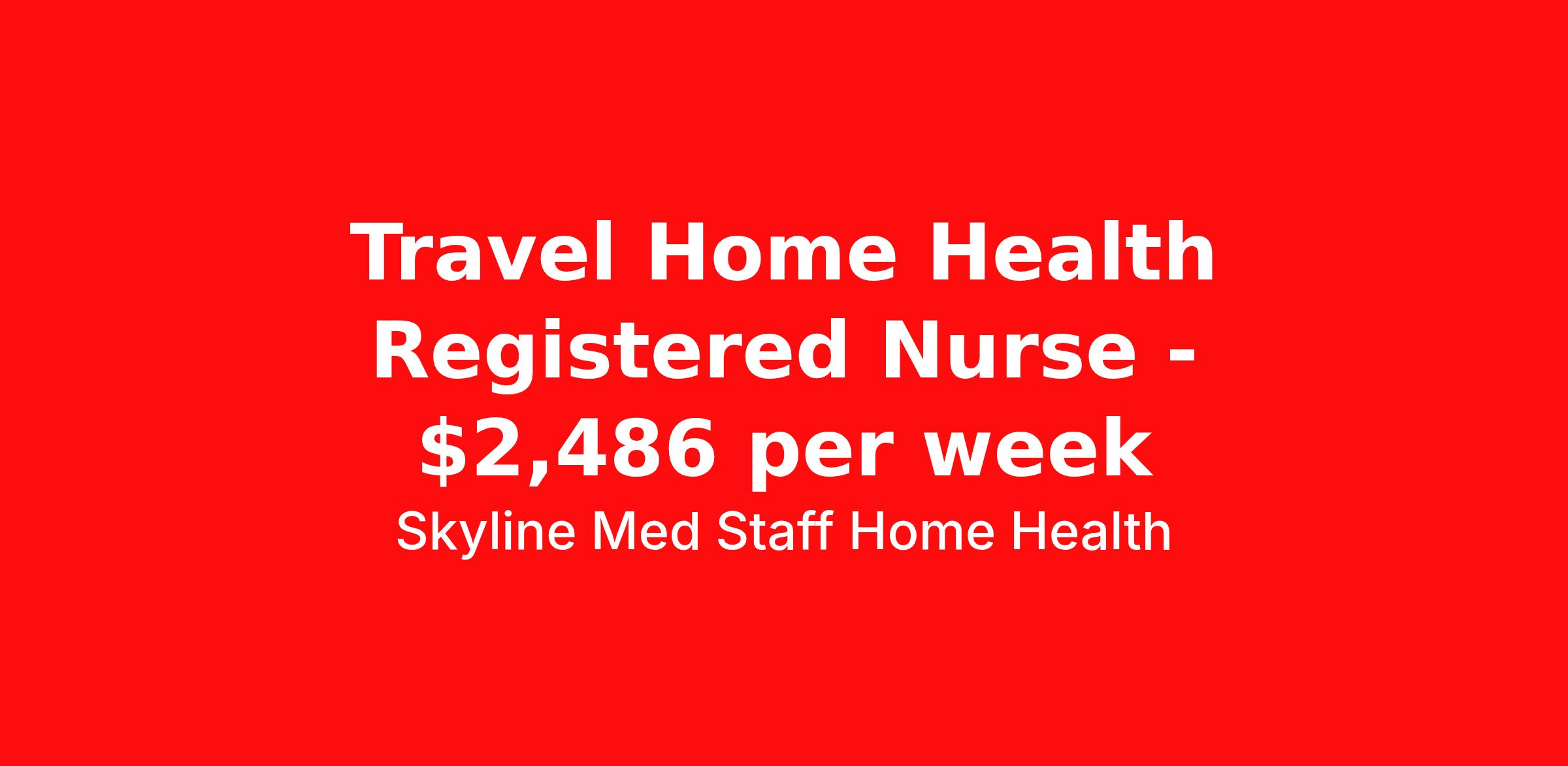 Skyline Med Staff Home Health is seeking a travel nurse RN Home Health for a travel nursing job in Reno, Nevada. Job Description & Requirements Specialty: Home Health Discipline: RN Start Date: ASAP Duration: 14 weeks 40 hours per week Shift: 8 hours, days Employment Type: Travel Weekly amount stated in the job postings is estimated based on estimated hourly wages and potential stipends available for the location of the assignment. Pay package is calculated on bill rate at the time job was posted, but can change or vary without notice. Exact pay packages might vary as this is an estimate. Our recruiter would be happy to build an exact pay package for you for each job. Skyline Med Staff Home Health Job ID 36113371. Pay package is based on 8 hour shifts and 40.0 hours per week (subject to confirmation) with tax-free stipend amount to be determined. Posted job title: RN:Home Health,07:00:00-15:00:00 About Skyline Med Staff Home Health Join the Top- Rated Travel Healthcare Team! Skyline Med Staff was named as the 1 Best Travel Healthcare Company in 2025 by BluePipes, a recognition driven by glowing reviews from travel healthcare professionals. Our recruiters are consistently praised on Google for their responsiveness, dedication, accessibility, and industry knowledge. Ready to experience the difference? Apply for a job today and see why healthcare professionals choose Skyline! Certified Women Owned Business We believe that travel is good for the soul. We want to be on your journey with you and find the right job that fits you Skyline Med Staff is committed to one vision treating others the way that THEY want to be treated. The executive team at Skyline Med Staff focuses on a commitment to quality, consistency, and the highest level of service. Our team members continually strive to build long term relationships that center on you and helping you achieve your goals. Some of the Benefits you will receive with Skyline Med Staff: Over 30 years of combined experience in the staffing industry Higher Take-Home Pay Rates Dedicated Personal Recruiter We are available to you 24/7 Health Insurance Plan Options Tax Free Per Diems, Housing Stipends and Travel Reimbursements Joint Commission Certified Contracts in all 50 states Referral and Loyalty Bonuses Benefits Medical benefits Referral bonus