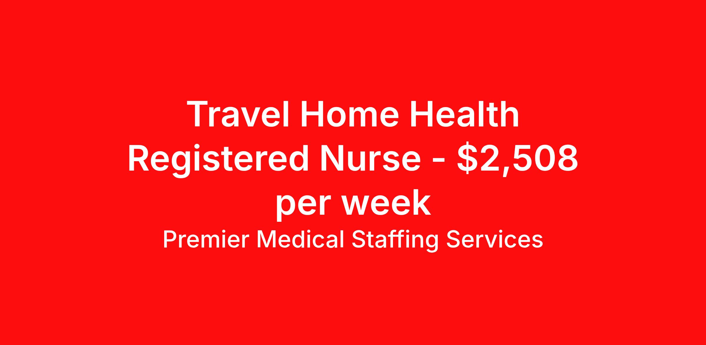 Premier Medical Staffing Services is seeking a travel nurse RN Home Health for a travel nursing job in Antigo, Wisconsin. Job Description & Requirements Specialty: Home Health Discipline: RN Start Date: 04/06/2026 Duration: 12 weeks 40 hours per week Shift: 8 hours Employment Type: Travel Premier Medical Staffing Job ID 626249. Pay package is based on 8 hour shifts and 40 hours per week (subject to confirmation) with tax-free stipend amount to be determined. Posted job title: RN Home Health About Premier Medical Staffing Services Premier Medical Staffing Services, LLC is a nationally expanding healthcare staffing firm for healthcare professionals and companies. We understand our clients’ need for highly qualified, expertly trained medical professionals and are passionate about helping clinicians find employment opportunities that fit their personality and needs. Able to accommodate the ever-changing needs of the healthcare landscape, we offer per-diem, contract and direct hire placements to support the unique needs of each industry sector. Premier Medical Staffing Services is Joint Commission Certified, a Military Spouse Employment Partner and is certified as a Women’s Business Enterprise. We are proudly nurse owned.