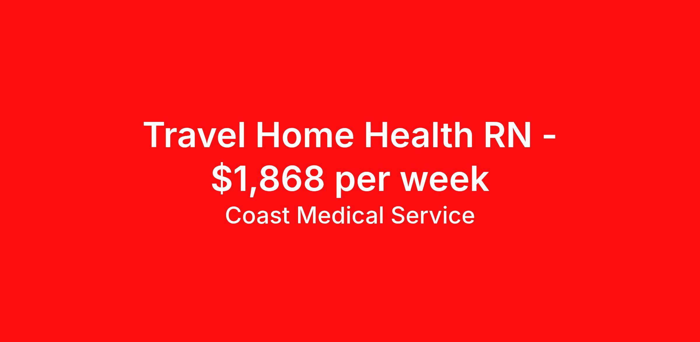 Coast Medical Service is seeking a travel nurse RN Home Health for a travel nursing job in Columbus, Ohio. Job Description & Requirements Specialty: Home Health Discipline: RN Start Date: 04/06/2026 Duration: 8 weeks 36 hours per week Shift: 12 hours, days Employment Type: Travel Coast Medical Service is a nationwide travel nursing & allied healthcare staffing agency dedicated to providing an elite traveler experience for the experienced or first-time traveler. Coast is featured on Blue Pipes' 2023 Best Travel Agencies and named a 2022 Top Rated Healthcare Staffing Firm & 2023 First Half Top Rated Healthcare Staffing Firm by Great Recruiters. Please note that pay rate may differ for locally based candidates. Please apply here or contact a recruiter directly to learn more about this position & the facility, and/or explore others that may be of interest to you. We look forward to speaking with you! Coast Medical Services Job ID 36176130. Pay package is based on 12 hour shifts and 36.0 hours per week (subject to confirmation) with tax-free stipend amount to be determined. Posted job title: RN:Home Health,07:00:00-19:30:00