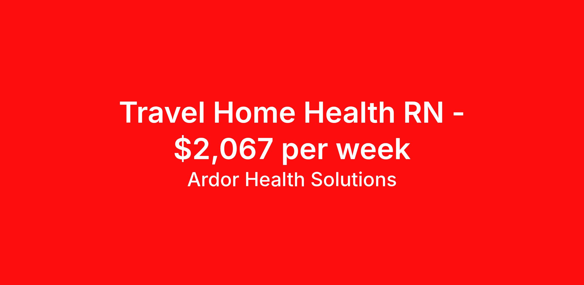 Ardor Health Solutions is seeking a travel nurse RN Home Health for a travel nursing job in Solon, Ohio. Job Description & Requirements Specialty: Home Health Discipline: RN Start Date: 04/16/2026 Duration: 14 weeks 40 hours per week Shift: 8 hours Employment Type: Travel Location: Solon, OH Setting: HOME HEALTH Employment Type: Traveler Ardor Health Solutions is looking for a Home Health - HH to join our travel team in Solon, OH! This is a full time travel contract position. Requirements include, but are not limited to: Active OH CenterWell Home Health (CWHH) license 2 years of Home Health - HH experience This position begins on 04/16/2026 and ends on 07/22/2026 Benefits include: Major Medical Dental/Vision Insurance Pet Insurance Life Insurance with extensive family health options License Reimbursements and processing assistance with our internal licensing department $500 referral bonus 24-hour emergency access to our offices About Ardor Health Solutions: Ardor Health Solutions is a fun, energetic, and passionate group of healthcare staffing professionals. We strive to bring you the highest quality positions that are perfect for your career. We are dedicated to finding you a travel position that not only provides superior compensation, but enriches your life. Ardor Health Solutions is a Fortune Ranked, award-winning, expanding company that has also recently been ranked the 20th Largest Allied Staffing Firm in the Nation by Staffing Industry Analysts (SIA) and by Fortune`s Great Places to Work Survey s several years in a row. For more information or to be considered, please apply now. COVID-19 vaccination and testing requirements vary by facility. Ardor Health adheres to the guidelines and requirements of each facility, as well as all applicable federal, state, and local laws. Ardor Health Job ID 808144. Pay package is based on 8 hour shifts and 40 hours per week (subject to confirmation) with tax-free stipend amount to be determined. Posted job title: Home Health About Ardor Health Solutions Ardor Health Solutions formed in 2001 and remains a privately held medical staffing business owned and operated by the same family. Over the years we have expanded our staffing and recruiting capabilities to include therapy services, nursing services, and all allied services. If you would like the personal service that comes with a staff of recruiters that have an average tenure with the company between 5 and 15 years, and the knowledge of our client services representatives with similar experience, there is no need to look any further. At Ardor Health Solutions you can expect better than average pay packages, extraordinary benefits, and the peace of mind that you will not be forgotten once you start your assignment. Perhaps that is why so many of our caregivers have completed more than a dozen different assignments with us over our long history. Ardor Health is pleased to offer a free medical insurance plan in addition to major medical plans. Please contact a recruiter for more details on the free medical plan and/or any other general inquiries. One final fact about Ardor Health Solutions. We have been paying our caregivers weekly since 2001, and we have never, ever, missed a payroll. If you are currently on an assignment with us, thank you. If you have traveled with us before, we would like to welcome you back. If you have never traveled with us, give us a try. You will not be disappointed. Benefits Weekly pay Holiday Pay Pet insurance Referral bonus Employee assistance programs Medical benefits Dental benefits Vision benefits Benefits start day 1 License and certification reimbursement Life insurance Discount program
