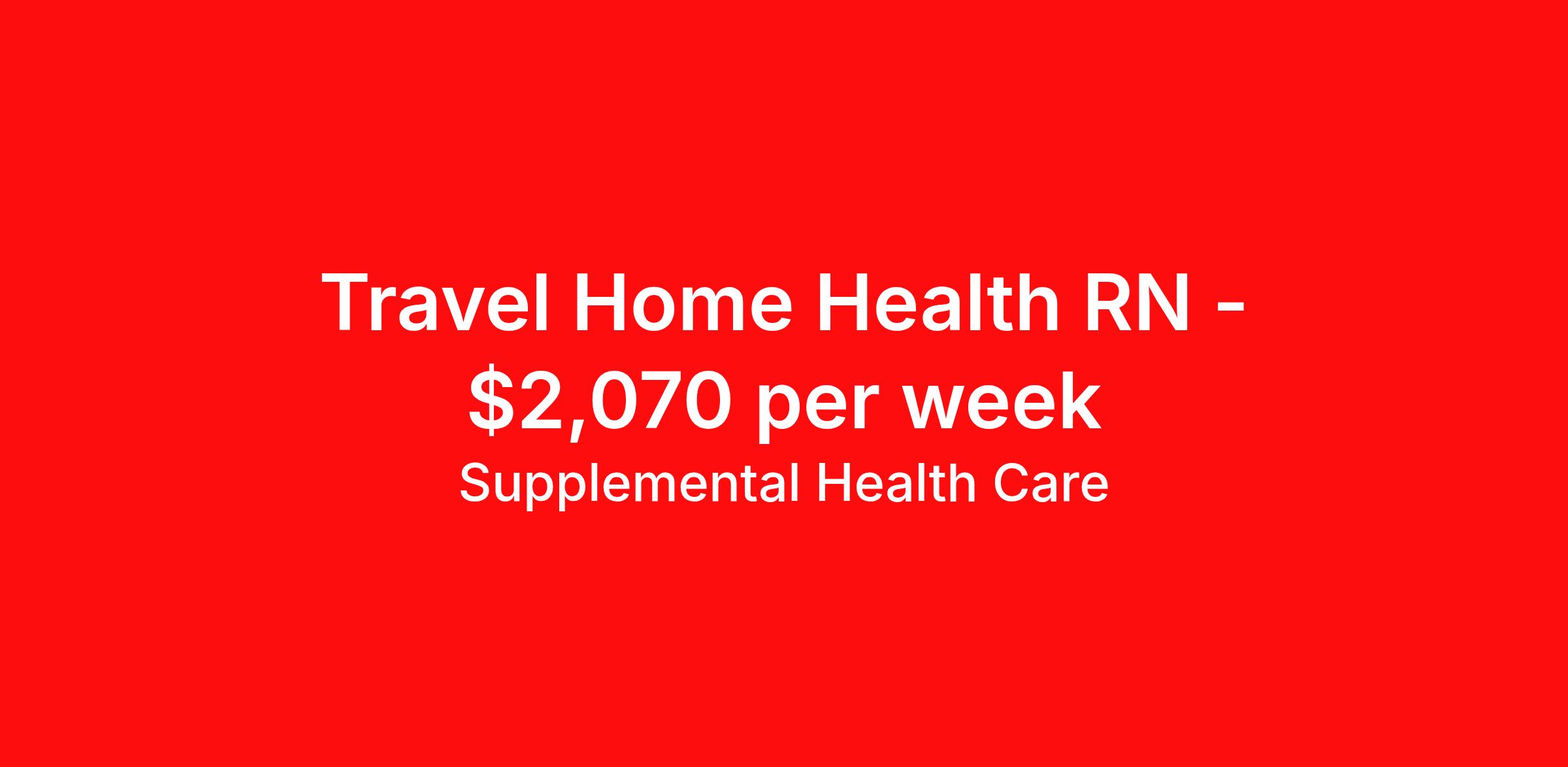 Travel Home Health RN - $2,070 per week
