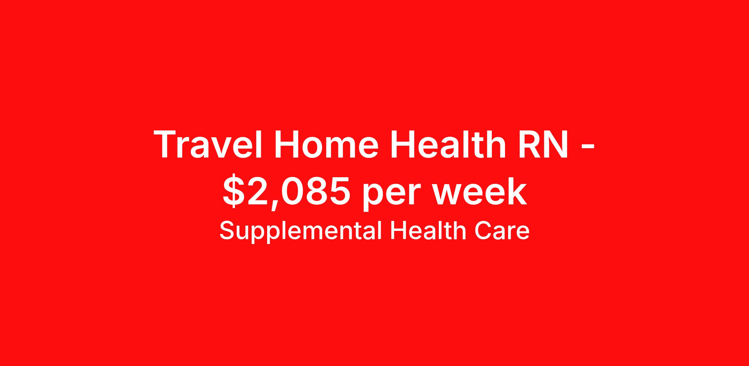 Supplemental Health Care is seeking a travel nurse RN Home Health for a travel nursing job in Westborough, Massachusetts. Job Description & Requirements Specialty: Home Health Discipline: RN Start Date: ASAP Duration: 13 weeks 40 hours per week Shift: 8 hours, days Employment Type: Travel Job Description: Join Supplemental Health Care in supporting patients where they’re most comfortable - at home. We’re hiring Registered Nurses (RNs) for a partnering Home Health agency in Westborough, Massachusetts. Backed by over 40 years of healthcare staffing expertise, SHC is here to help you find the right fit for your career. Qualifications: Active Registered Nurse license/certification in Massachusetts Current BLS (AHA) certification 1 year of recent Registered Nurse experience Previous home health experience Contract Details: Pay: $1,878 - $2,085 per week* Duration: 13-week contract, with potential to extend Schedule: Hourly pay (not per visit) Territory: Dedicated home health service area We understand home health care is unique and requires the right support for success. That’s why we offer great benefits, expert guidance, and 24/7 assistance -earning us a 80% recommendation rate from our home health professionals on contract with SHC. *Estimated weekly payment may include both taxable wages and tax-free reimbursements for meals, housing, and incidentals. Please speak with a recruiter for details. If you’re ready to make a difference in Home Health, apply today and Supplemental Health Care will help you find the right opportunity to match your goals. What We Offer: Full medical, dental, vision, life, and even pet insurance! Round the clock support. No matter where you are or what time it is, Supplemental Health Care is standing by. SHC's Share the Care referral program is the most dynamic, profitable referral program in the industry. 401(k) Retirement Savings Program with a wide range of investment options. Discounted and free online access to CEU courses through Supplemental University. Supplemental Health Care is an Equal Opportunity Employer. All candidates, including veterans and those with disabilities, are encouraged to apply. SHC will consider for employment qualified applicants with criminal histories in a manner consistent with the requirements of applicable local, state, or federal law. To learn more, visit www.shccares.com/eeo Supplemental Health Care Job ID 1471820. Pay package is based on 8 hour shifts and 40 hours per week (subject to confirmation) with tax-free stipend amount to be determined. Posted job title: Registered Nurse - Home Health About Supplemental Health Care At Supplemental Health Care, a simple belief in the power of caring guides a unique commitment to world-class service in healthcare staffing. For 40 years, we’ve supported talented professionals pursuing their life calling in hospitals, schools, home health, corrections, behavioral health, and other settings. At SHC, we inspire vital connections and enrich lives and inspire better outcomes. As recipients of the Best in Staffing Awards for both Client and Talent, Supplemental Health Care is proud to be among only 2% of staffing companies singled out for the distinction based on the real feedback of our employees and the clients we serve. SHC has also earned The Joint Commission’s Gold Seal of Approval and is named among the Largest Health Care Staffing companies in the United States by Staffing Industry Analysts. We are also thrilled to recognize our very own SLP, Dr. Kelly Byrd as the American Staffing Association 2024 National Staffing Employee of the Year and Health Care Sector All-Star. We’re honored to connect Dr. Byrd to employment, share her incredible story, and support her family literacy nonprofit. For everyone that we serve, SHC is the place where caring hearts thrive. Benefits Referral bonus Benefits start day 1 401k retirement plan Continuing Education Discount program Health savings account