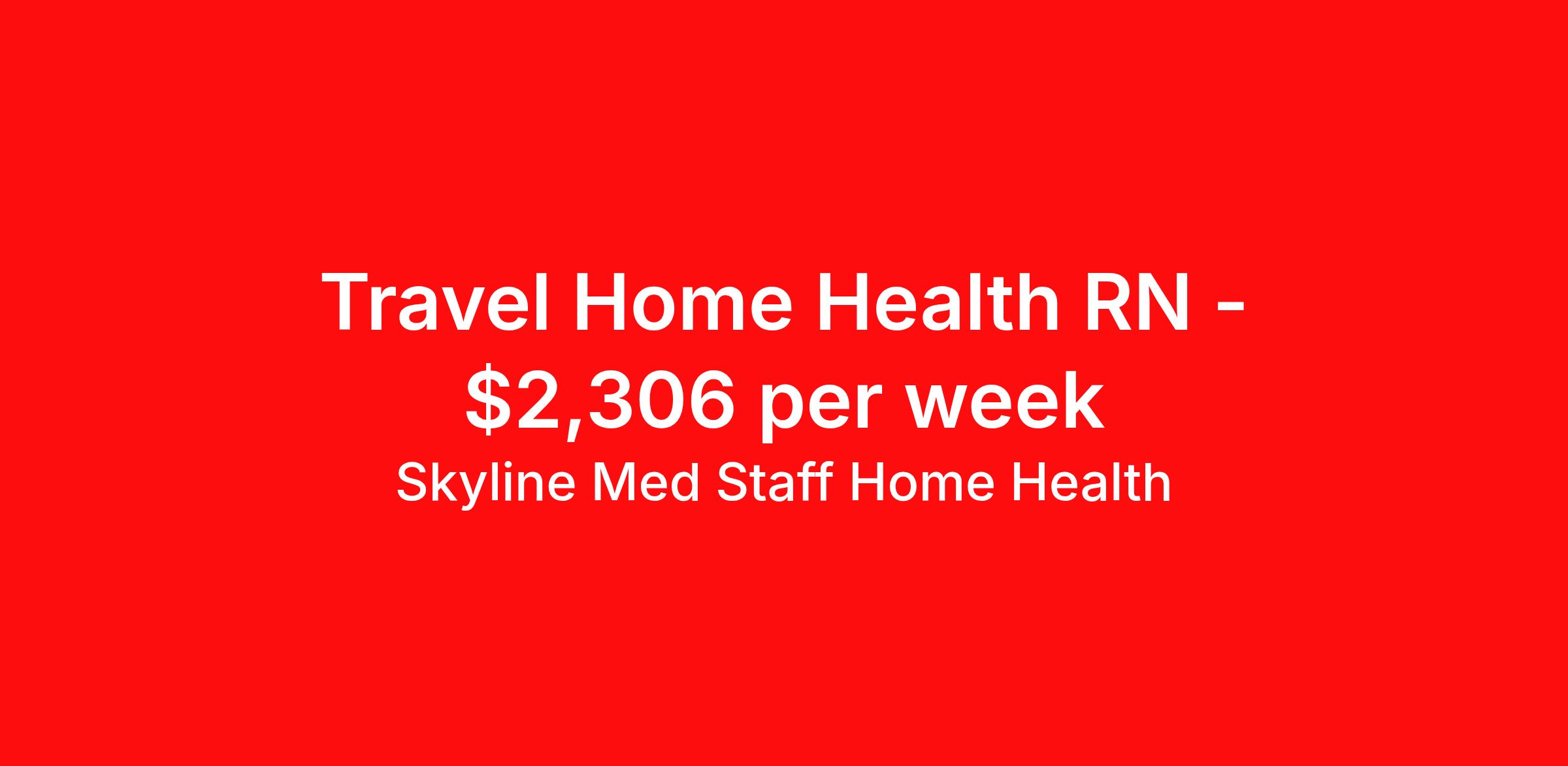 Skyline Med Staff Home Health is seeking a travel nurse RN Home Health for a travel nursing job in Virginia Beach, Virginia. Job Description & Requirements Specialty: Home Health Discipline: RN Start Date: 03/23/2026 Duration: 8 weeks 40 hours per week Shift: 8 hours, days Employment Type: Travel Weekly amount stated in the job postings is estimated based on estimated hourly wages and potential stipends available for the location of the assignment. Pay package is calculated on bill rate at the time job was posted, but can change or vary without notice. Exact pay packages might vary as this is an estimate. Our recruiter would be happy to build an exact pay package for you for each job. Join the Best in Travel Nursing!\n\nSkyline Med Staff was honored as the 1 Best Travel Nursing Company in 2025 by BluePipes, a recognition driven by glowing reviews from travel healthcare professionals. Our recruiters are consistently praised on Google for their responsiveness, dedication, accessibility, and industry knowledge.\n\nReady to experience the difference? Apply for a job today and see why travel nurses choose Skyline!\n\nAs a traveler with Skyline Med Staff, you'll have a dedicated recruiter supporting you every step of the way and available whenever you need them. We are a Woman Owned Agency providing clinicians with Health Insurance through Blue Cross Blue Shield, along with Dental and Vision coverage, plus $500 referral bonuses! We’re seeking committed Nursing professionals who excel in delivering quality patient care and can adapt to diverse work environments.\n\nRequired for Submission:\n1. Minimum of 1 year recent work experience in the specialty of the job applying for\n2. A current BLS/CPR certification through American Heart Association\n3. Active License in the state of the job location\n\nWe look forward to connecting and working with you to find your next job opportunity! Skyline Med Staff Home Health Job ID 36143836. Pay package is based on 8 hour shifts and 40.0 hours per week (subject to confirmation) with tax-free stipend amount to be determined. Posted job title: RN:Home Health,07:00:00-15:00:00 About Skyline Med Staff Home Health Join the Top- Rated Travel Healthcare Team! Skyline Med Staff was named as the 1 Best Travel Healthcare Company in 2025 by BluePipes, a recognition driven by glowing reviews from travel healthcare professionals. Our recruiters are consistently praised on Google for their responsiveness, dedication, accessibility, and industry knowledge. Ready to experience the difference? Apply for a job today and see why healthcare professionals choose Skyline! Certified Women Owned Business We believe that travel is good for the soul. We want to be on your journey with you and find the right job that fits you Skyline Med Staff is committed to one vision treating others the way that THEY want to be treated. The executive team at Skyline Med Staff focuses on a commitment to quality, consistency, and the highest level of service. Our team members continually strive to build long term relationships that center on you and helping you achieve your goals. Some of the Benefits you will receive with Skyline Med Staff: Over 30 years of combined experience in the staffing industry Higher Take-Home Pay Rates Dedicated Personal Recruiter We are available to you 24/7 Health Insurance Plan Options Tax Free Per Diems, Housing Stipends and Travel Reimbursements Joint Commission Certified Contracts in all 50 states Referral and Loyalty Bonuses Benefits Medical benefits Referral bonus