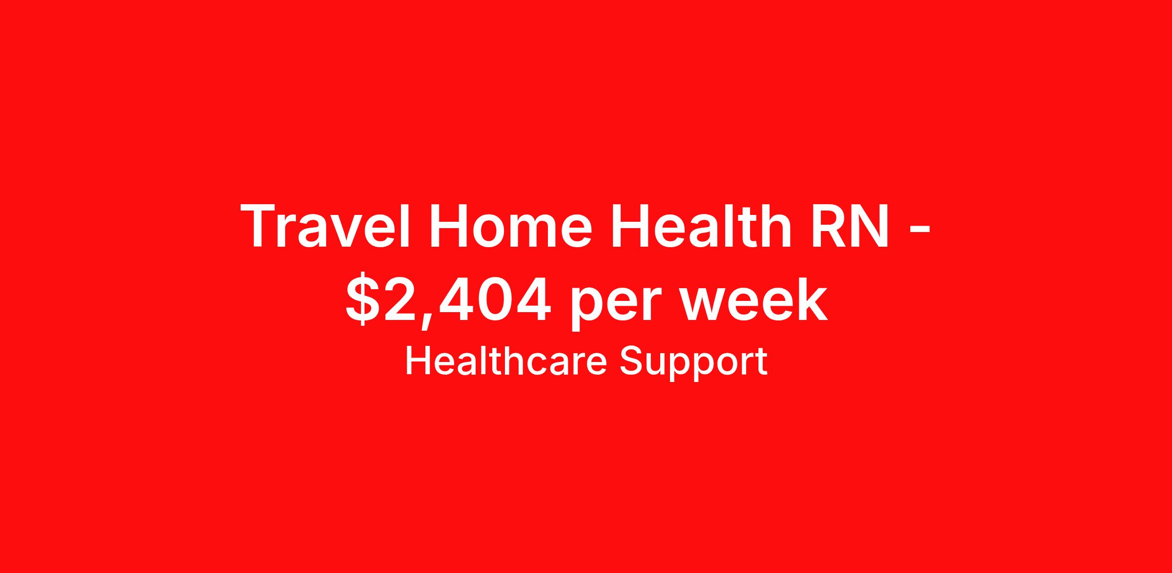 Healthcare Support is seeking a travel nurse RN Home Health for a travel nursing job in La Grange, Kentucky. Job Description & Requirements Specialty: Home Health Discipline: RN Start Date: ASAP Duration: 13 weeks 40 hours per week Shift: 8 hours Employment Type: Travel At HealthCare Support, we specialize in offering healthcare professionals a seamless, red-carpet experience throughout their travel journey. Whether you're a nurse, therapist, or allied health professional, we're dedicated to matching you with top-rated facilities nationwide to help you take the next step in your career. With 20 years of industry experience and strong relationships with respected organizations across all 50 states, we offer opportunities at leading health systems, hospitals, specialty clinics, and post-acute facilities. Thanks to our direct client partnerships and national MSP programs, you'll have the flexibility to work where you want and go wherever your adventure takes you. Partner with HealthCare Support and experience a travel career where you can count on us every step of the way. Your next opportunity is waiting—let us connect you to the adventure of a lifetime! Healthcare Support Job ID 489991. Pay package is based on 8 hour shifts and 40 hours per week (subject to confirmation) with tax-free stipend amount to be determined. Posted job title: rn home health About Healthcare Support Healthcare Support excels at providing a streamlined and red-carpet experience for our travelers. Whether you are a nurse, a therapist, or an allied health professional, our goal is to connect you with top-rated facilities throughout the country and get you on the road to your next adventure. We leverage 20 years of relationships with the industry’s most respectable companies across all 50 states, both through direct client partnerships and via national MSP programs. From health systems and hospitals to specialty clinics and post-acute facilities, you can work where you want to work and go where you want to go. Not only does HealthCare Support reimburse for relocation and travel costs on your first check, but we also offer license and certification reimbursements required for your assignments so that you can focus on building your career. During your assignment, you’ll have access to medical benefits, 24/7 support from our Clinical Advocacy Team, and a travel team with stateside operations. Your travel team will include a designated credentialing expert to help you navigate every step of the on-boarding process, a payroll specialist who you can communicate with directly, and a skilled recruiter who takes the time to understand your needs and works hard to find the right position for you. Don’t get lost in the shuffle of another overblown staffing agency. Choose HealthCare Support to be your trusted partner that you can rely on for all your travel assignments. We can’t wait to hear about the amazing adventures you’ll have! Pst! Ask us about our Direct Hire Opportunities! Benefits License and certification reimbursement Medical benefits Dental benefits Mileage reimbursement Employee assistance programs Referral bonus 401k retirement plan Holiday Pay Weekly pay