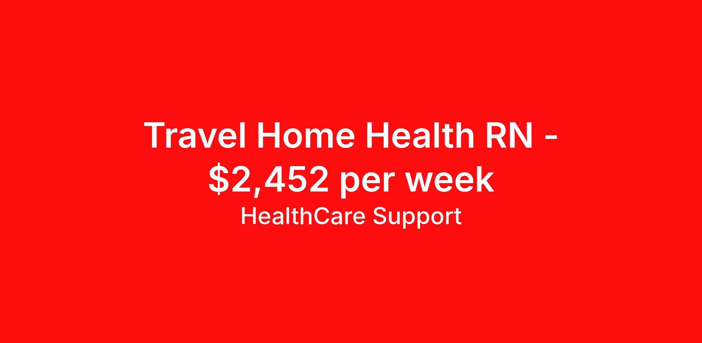 Healthcare Support is seeking a travel nurse RN Home Health for a travel nursing job in Plymouth, Massachusetts. Job Description & Requirements Specialty: Home Health Discipline: RN Start Date: ASAP Duration: 13 weeks 40 hours per week Shift: 8 hours Employment Type: Travel Healthcare Support Job ID 491390. Pay package is based on 8 hour shifts and 40 hours per week (subject to confirmation) with tax-free stipend amount to be determined. Posted job title: home health rn About Healthcare Support Healthcare Support excels at providing a streamlined and red-carpet experience for our travelers. Whether you are a nurse, a therapist, or an allied health professional, our goal is to connect you with top-rated facilities throughout the country and get you on the road to your next adventure. We leverage 20 years of relationships with the industry’s most respectable companies across all 50 states, both through direct client partnerships and via national MSP programs. From health systems and hospitals to specialty clinics and post-acute facilities, you can work where you want to work and go where you want to go. Not only does HealthCare Support reimburse for relocation and travel costs on your first check, but we also offer license and certification reimbursements required for your assignments so that you can focus on building your career. During your assignment, you’ll have access to medical benefits, 24/7 support from our Clinical Advocacy Team, and a travel team with stateside operations. Your travel team will include a designated credentialing expert to help you navigate every step of the on-boarding process, a payroll specialist who you can communicate with directly, and a skilled recruiter who takes the time to understand your needs and works hard to find the right position for you. Don’t get lost in the shuffle of another overblown staffing agency. Choose HealthCare Support to be your trusted partner that you can rely on for all your travel assignments. We can’t wait to hear about the amazing adventures you’ll have! Pst! Ask us about our Direct Hire Opportunities! Benefits License and certification reimbursement Medical benefits Dental benefits Mileage reimbursement Employee assistance programs Referral bonus 401k retirement plan Holiday Pay Weekly pay