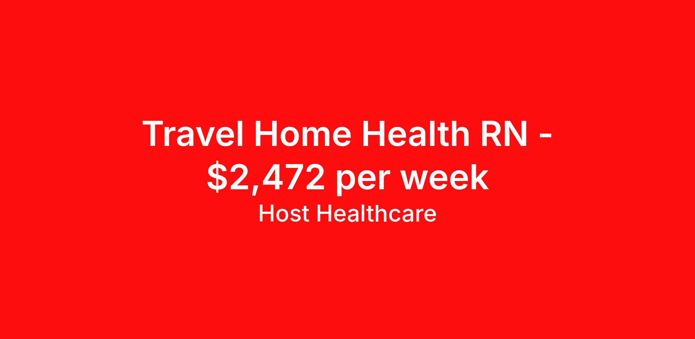 Host Healthcare is seeking a travel nurse RN Home Health for a travel nursing job in Bala Cynwyd, Pennsylvania. Job Description & Requirements Specialty: Home Health Discipline: RN Start Date: 04/22/2026 Duration: 13 weeks 40 hours per week Shift: 8 hours, days Employment Type: Travel Host Healthcare Job ID a1fVX000002ziEHYAY. Pay package is based on 8 hour shifts and 40 hours per week (subject to confirmation) with tax-free stipend amount to be determined. Posted job title: RN - Home Health About Host Healthcare At Host Healthcare, we provide a truly comfortable experience as you explore your travel nursing, therapy, or allied career. We make your travel healthcare journey easy by taking care of all the details, so you don’t have to. We are on a mission to help others live better and we do this by helping the healers of the world be as comfortable as possible. With access to tens of thousands of travel nursing, therapy, and allied jobs in all 50 states, our responsive and friendly recruiters find your dream position based on what’s important to you. During your assignment, get access to premium benefits, including Day 1 medical that continues up to 30 days between assignments, 401K matching, travel reimbursements, dedicated housing support, and more. We also offer 24/7 support from our team and access to our on-staff clinicians so you can feel comfortable and confident throughout your entire assignment. Travel comfortably with Host Healthcare. Benefits Referral bonus School loan reimbursement Vision benefits Wellness and fitness programs Company provided housing options License and certification reimbursement Life insurance Medical benefits Mileage reimbursement Pet insurance Discount program Employee assistance programs Guaranteed Hours Health savings account Holiday Pay 401k retirement plan Continuing Education Dental benefits