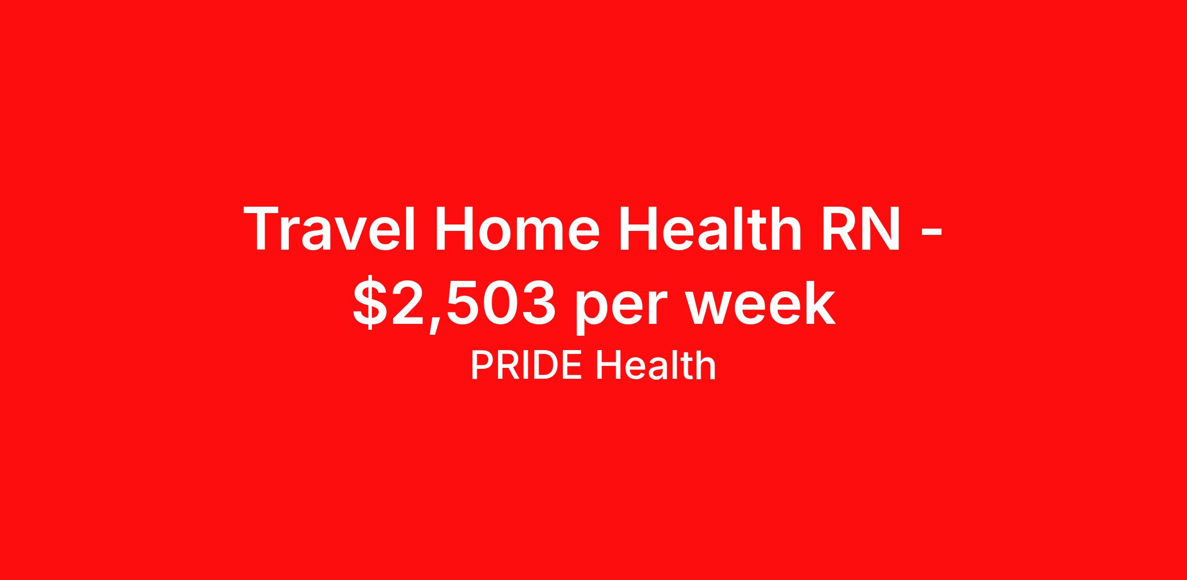 PRIDE Health is seeking a travel nurse RN Home Health for a travel nursing job in Kaneohe, Hawaii. Job Description & Requirements Specialty: Home Health Discipline: RN Start Date: 04/13/2026 Duration: 13 weeks 40 hours per week Shift: 8 hours, days Employment Type: Travel Pride Health Job ID 17662500. Pay package is based on 8 hour shifts and 40.0 hours per week (subject to confirmation) with tax-free stipend amount to be determined. Posted job title: RN:Home Health,09:00:00-17:00:00 About PRIDE Health PRIDE Health is the minority-owned healthcare recruitment division of Pride Global—an integrated human capital solutions and advisory firm. With our robust and abundant travel nursing and allied health employment options across the U.S., PRIDE Health will allow you to help change the way the world lives and heals as it connects you with the industry’s leading healthcare organizations. Pride Global offers eligible employee’s comprehensive healthcare coverage (medical, dental, and vision plans), supplemental coverage (accident insurance, critical illness insurance and hospital indemnity), 401(k)-retirement savings, life & disability insurance, an employee assistance program, legal support, auto, home insurance, pet insurance, and employee discounts with preferred vendors. Benefits Weekly pay Holiday Pay Guaranteed Hours 401k retirement plan Cancelation protection Referral bonus Medical benefits Dental benefits Vision benefits