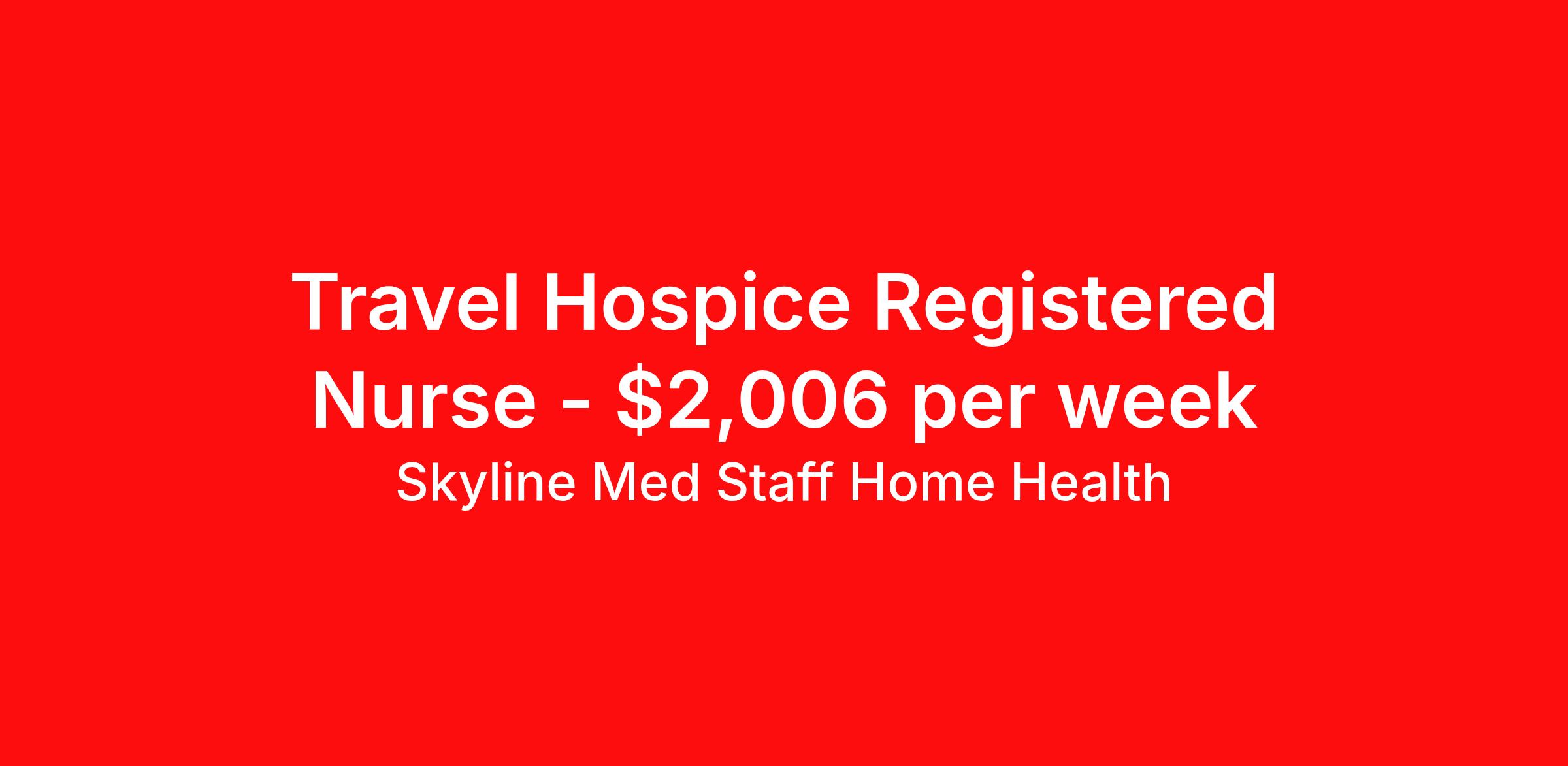 Skyline Med Staff Home Health is seeking a travel nurse RN Hospice for a travel nursing job in Fort Wayne, Indiana. Job Description & Requirements Specialty: Hospice Discipline: RN Start Date: ASAP Duration: 13 weeks 40 hours per week Shift: 8 hours, days Employment Type: Travel Weekly amount stated in the job postings is estimated based on estimated hourly wages and potential stipends available for the location of the assignment. Pay package is calculated on bill rate at the time job was posted, but can change or vary without notice. Exact pay packages might vary as this is an estimate. Our recruiter would be happy to build an exact pay package for you for each job. Skyline Med Staff Home Health Job ID 35998260. Pay package is based on 8 hour shifts and 40.0 hours per week (subject to confirmation) with tax-free stipend amount to be determined. Posted job title: RN:Hospice,07:00:00-15:00:00 About Skyline Med Staff Home Health Join the Top- Rated Travel Healthcare Team! Skyline Med Staff was named as the 1 Best Travel Healthcare Company in 2025 by BluePipes, a recognition driven by glowing reviews from travel healthcare professionals. Our recruiters are consistently praised on Google for their responsiveness, dedication, accessibility, and industry knowledge. Ready to experience the difference? Apply for a job today and see why healthcare professionals choose Skyline! Certified Women Owned Business We believe that travel is good for the soul. We want to be on your journey with you and find the right job that fits you Skyline Med Staff is committed to one vision treating others the way that THEY want to be treated. The executive team at Skyline Med Staff focuses on a commitment to quality, consistency, and the highest level of service. Our team members continually strive to build long term relationships that center on you and helping you achieve your goals. Some of the Benefits you will receive with Skyline Med Staff: Over 30 years of combined experience in the staffing industry Higher Take-Home Pay Rates Dedicated Personal Recruiter We are available to you 24/7 Health Insurance Plan Options Tax Free Per Diems, Housing Stipends and Travel Reimbursements Joint Commission Certified Contracts in all 50 states Referral and Loyalty Bonuses Benefits Medical benefits Referral bonus