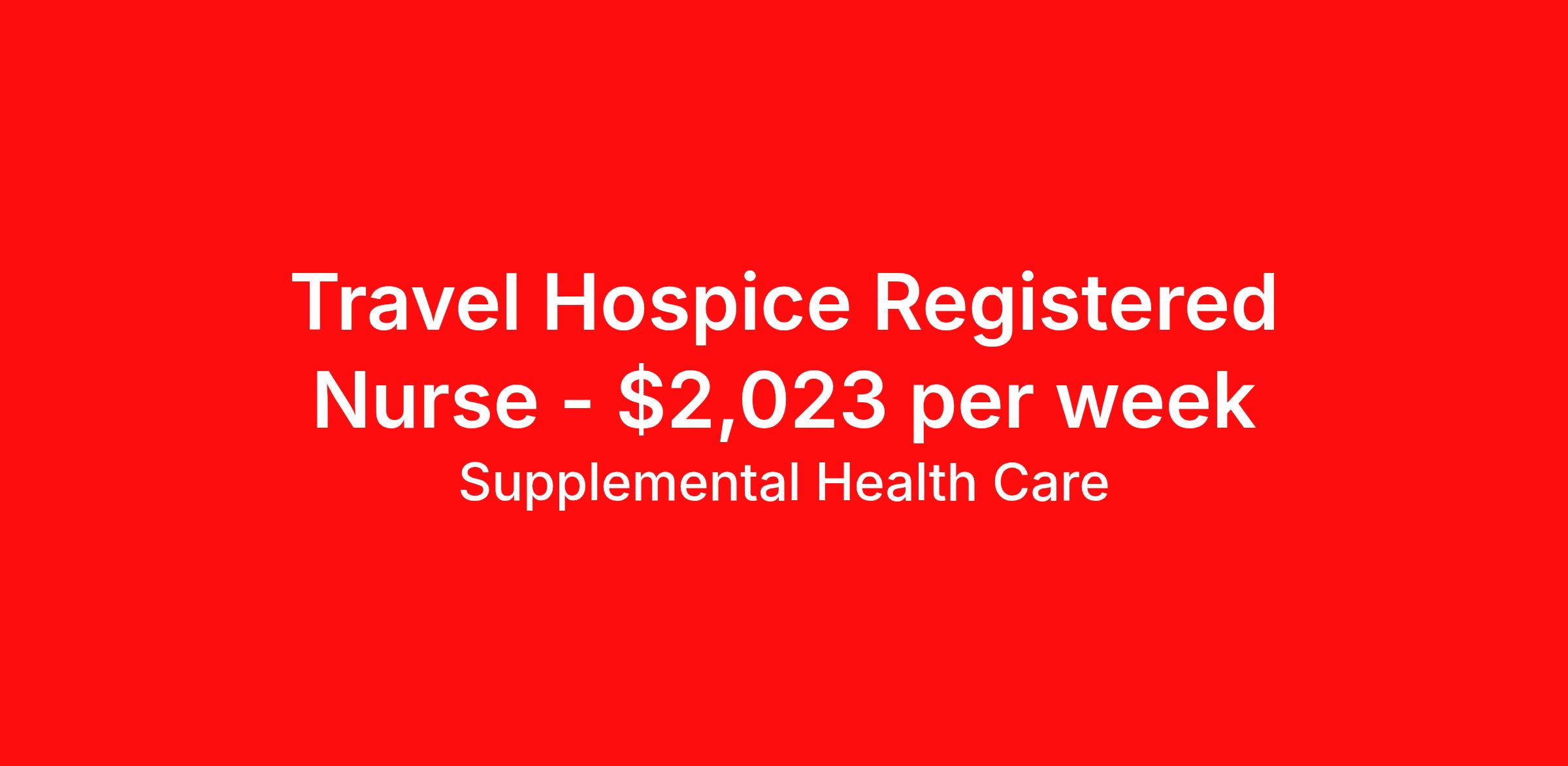 Supplemental Health Care is seeking a travel nurse RN Home Health Hospice for a travel nursing job in Toms River, New Jersey. Job Description & Requirements Specialty: Hospice Discipline: RN Start Date: ASAP Duration: 13 weeks 36 hours per week Shift: 12 hours, nights Employment Type: Travel Job Description: Supplemental Health Care is hiring compassionate and experienced Hospice RNs to provide patient-centered care for individuals and families in Toms River, New Jersey, and surrounding areas. Qualifications: Active, unencumbered RN license in the state of assignment Current BLS certification (American Heart Association) CHPN certification preferred, not required 1 year of recent experience (within last 3 years) in hospice, home health, palliative care, or acute care Strong knowledge of symptom management, pain control, and hospice documentation (CMS CoPs, Medicare Hospice Benefit) Clear background and driving record; current TB test and immunizations Reliable transportation and valid auto insurance Flexibility for travel, occasional evenings, weekends, and on-call shifts Hospice RN Contract Details: $1,818 - $2,023 per week* Nurse will have a designated territory of coverage 4- 6 patient visits per day (45 - 90 minutes each, depending on need) Travel time included in scheduling All nurses on contract with SHC are paid weekly Key Responsibilities: Perform comprehensive assessments and develop individualized hospice care plans Deliver skilled nursing care, symptom management, and emotional support Educate patients and families on hospice philosophy and comfort care practices Collaborate with the interdisciplinary team to review and adjust care plans Maintain accurate documentation in compliance with hospice standards Whether you want to travel or stay local, we help Hospice RNs find the perfect fit with leading healthcare organizations nationwide. With 40 years in healthcare staffing, Supplemental Health Care provides trusted support, competitive pay, and great benefits every step of the way. Apply today to get started with this Hospice Registered Nurse contract opportunity, or talk to our team about the full range of RN opportunities available. What We Offer: Full medical, dental, vision, life, and even pet insurance! Round the clock support. No matter where you are or what time it is, Supplemental Health Care is standing by. SHC's Share the Care referral program is the most dynamic, profitable referral program in the industry. 401(k) Retirement Savings Program with a wide range of investment options. Discounted and free online access to CEU courses through Supplemental University. Please speak with a recruiter for details. Supplemental Health Care is an Equal Opportunity Employer. All candidates, including veterans and those with disabilities, are encouraged to apply. SHC will consider for employment qualified applicants with criminal histories in a manner consistent with the requirements of applicable local, state, or federal law. To learn more, visit www.shccares.com/eeo Supplemental Health Care Job ID 1472467. Pay package is based on 12 hour shifts and 36 hours per week (subject to confirmation) with tax-free stipend amount to be determined. Posted job title: Hospice Registered Nurse (RN) About Supplemental Health Care At Supplemental Health Care, a simple belief in the power of caring guides a unique commitment to world-class service in healthcare staffing. For 40 years, we’ve supported talented professionals pursuing their life calling in hospitals, schools, home health, corrections, behavioral health, and other settings. At SHC, we inspire vital connections and enrich lives and inspire better outcomes. As recipients of the Best in Staffing Awards for both Client and Talent, Supplemental Health Care is proud to be among only 2% of staffing companies singled out for the distinction based on the real feedback of our employees and the clients we serve. SHC has also earned The Joint Commission’s Gold Seal of Approval and is named among the Largest Health Care Staffing companies in the United States by Staffing Industry Analysts. We are also thrilled to recognize our very own SLP, Dr. Kelly Byrd as the American Staffing Association 2024 National Staffing Employee of the Year and Health Care Sector All-Star. We’re honored to connect Dr. Byrd to employment, share her incredible story, and support her family literacy nonprofit. For everyone that we serve, SHC is the place where caring hearts thrive. Benefits Referral bonus Benefits start day 1 401k retirement plan Continuing Education Discount program Health savings account