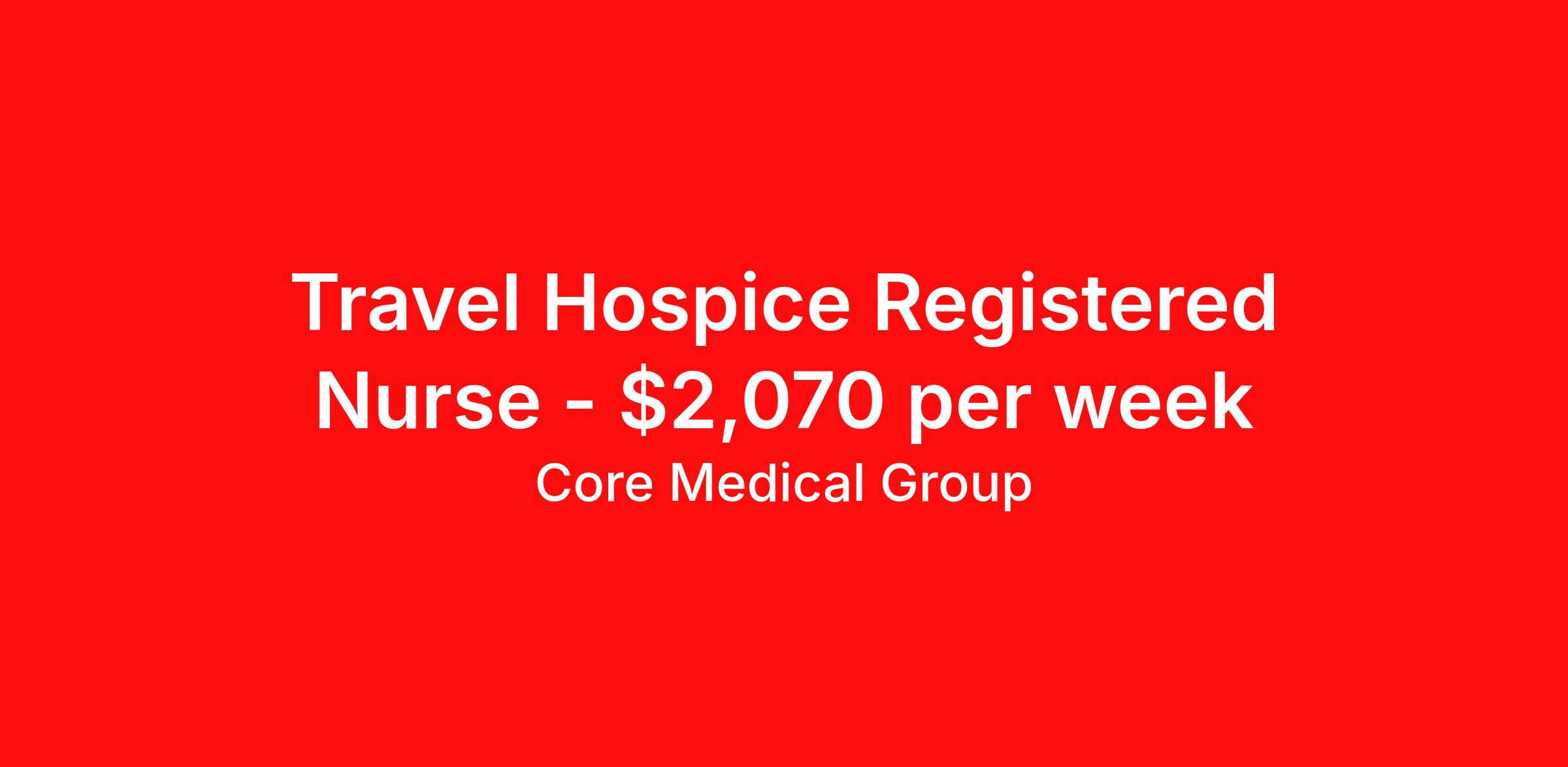 Core Medical Group is seeking a travel nurse RN Hospice for a travel nursing job in Overland Park, Kansas. Job Description & Requirements Specialty: Hospice Discipline: RN Start Date: 04/06/2026 Duration: 13 weeks 40 hours per week Shift: 8 hours Employment Type: Travel Home Health RN needed in Overland Park, KSClient in KS seeking Registered Nurse: Home Health for the following shift(s): Days We are looking for a healthcare professional who is ready to provide exceptional patient care in this contract/travel role. Contract/travel assignments are typically 13 weeks, with potential to extend. Help us continue our mission to connect people, improve lives, and give back to the community by joining the CoreMedical Group team. When you work with CoreMedical Group, we put you first and treat you like family, supporting you every step of the way. CoreMedical Group is one of the largest healthcare staffing agencies in the country, with travel and contract positions located across the United States. Our recruiters will help you find the perfect job, whether it's across the country or across the street. In addition to dedicated, personalized support from your recruiter, when you work with CoreMedical Group you'll receive: Access to an extensive benefits package, including day 1 health, dental, and vision insurance, employer paid life insurance, a health reimbursement account, and more! Weekly paychecks with competitive pay packages Matching 401(k) benefits to help you save for retirement Licensure assistance and reimbursement to set you up for success on your contract Travel reimbursement and dedicated housing support while on assignment Referral cash bonuses when you connect us with other clinicians CoreMedical Group also offers you a free, all-inclusive vacation each year as our way of saying "thank you" for your hard work. Join other healthcare professionals on the annual Club CoreMed retreat and you'll see why our contract and travel professionals come back to us year after year! Your career is too valuable to tackle on your own. Let CoreMedical Group help you with your healthcare journey! *Estimate of weekly payments is intended for informational purposes and includes hourly wages, as well as reimbursements for meal & incidental expenses, and housing expenses incurred on behalf of the Company. Any benefits (medical/dental/vision) are in addition to the weekly pay. Please speak with your Recruiter for additional details. Estimated payments are subject to change until formal offer of assignment is made and accepted. Core Medical Group Job ID 1365908. Pay package is based on 8 hour shifts and 40 hours per week (subject to confirmation) with tax-free stipend amount to be determined. Posted job title: RN About Core Medical Group CoreMedical Group is one of the largest healthcare staffing agencies in the country. We have jobs nationwide in travel nursing, travel allied health, interim, locum tenens, and permanent placements! Join the staffing agency with Club CoreMed, the best perk in the industry - an all inclusive paid trip to a tropical resort! Benefits Weekly pay Holiday Pay Guaranteed Hours Continuing Education 401k retirement plan Pet insurance Company provided housing options Sick pay Wellness and fitness programs Mileage reimbursement Referral bonus Employee assistance programs Medical benefits Dental benefits Vision benefits Benefits start day 1 License and certification reimbursement Life insurance Discount program