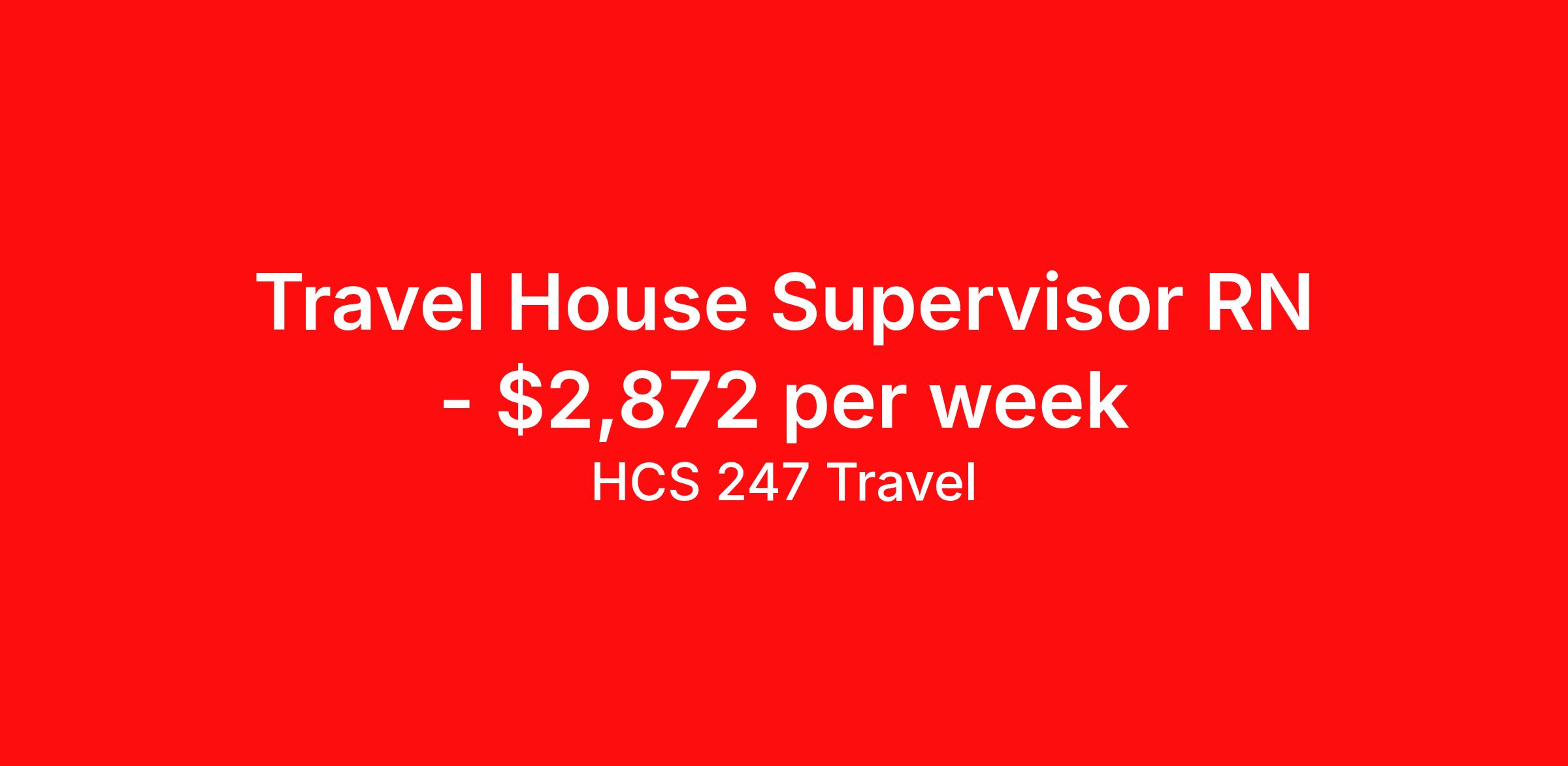 HCS 247 Travel is seeking a travel nurse RN House Supervisor for a travel nursing job in Aberdeen, Washington. Job Description & Requirements Specialty: House Supervisor Discipline: RN Start Date: ASAP Duration: 13 weeks 36 hours per week Shift: 12 hours, days Employment Type: Travel HCS 247 Travel Job ID 62523120. Pay package is based on 12 hour shifts and 36 hours per week (subject to confirmation) with tax-free stipend amount to be determined. About HCS 247 Travel HCS 24/7 is a national healthcare staffing organization specializing in the placement of Registered Nurses and Allied health professionals across acute care and other clinical settings. We support travel assignments, local short- and long-term contracts, per diem, temp-to-perm, and direct hire opportunities nationwide. Our clinical coverage includes Registered Nurse specialties such as ER, ICU, Med-Surg, Telemetry, Step-Down, OR, PACU, L&D, Mother/Baby, NICU, Cath Lab, Endoscopy, and more along with a full range of allied and imaging professionals, including Respiratory Therapists, Surgical Technicians, X-Ray Techs, CT Techs, MRI Techs, Interventional Radiology (IR) Techs, Cath Lab Techs, Ultrasound/Sonographers, Mammography Techs, and Nuclear Medicine Techs. With competitive compensation and benefits, consistent opportunities, and a clinician-first approach backed by top-rated customer service, HCS 24/7 delivers a seamless experience from initial application through assignment completion. Benefits Holiday Pay Guaranteed Hours Continuing Education Mileage reimbursement Referral bonus Medical benefits Dental benefits Vision benefits License and certification reimbursement Life insurance Benefits start day 1 Weekly pay