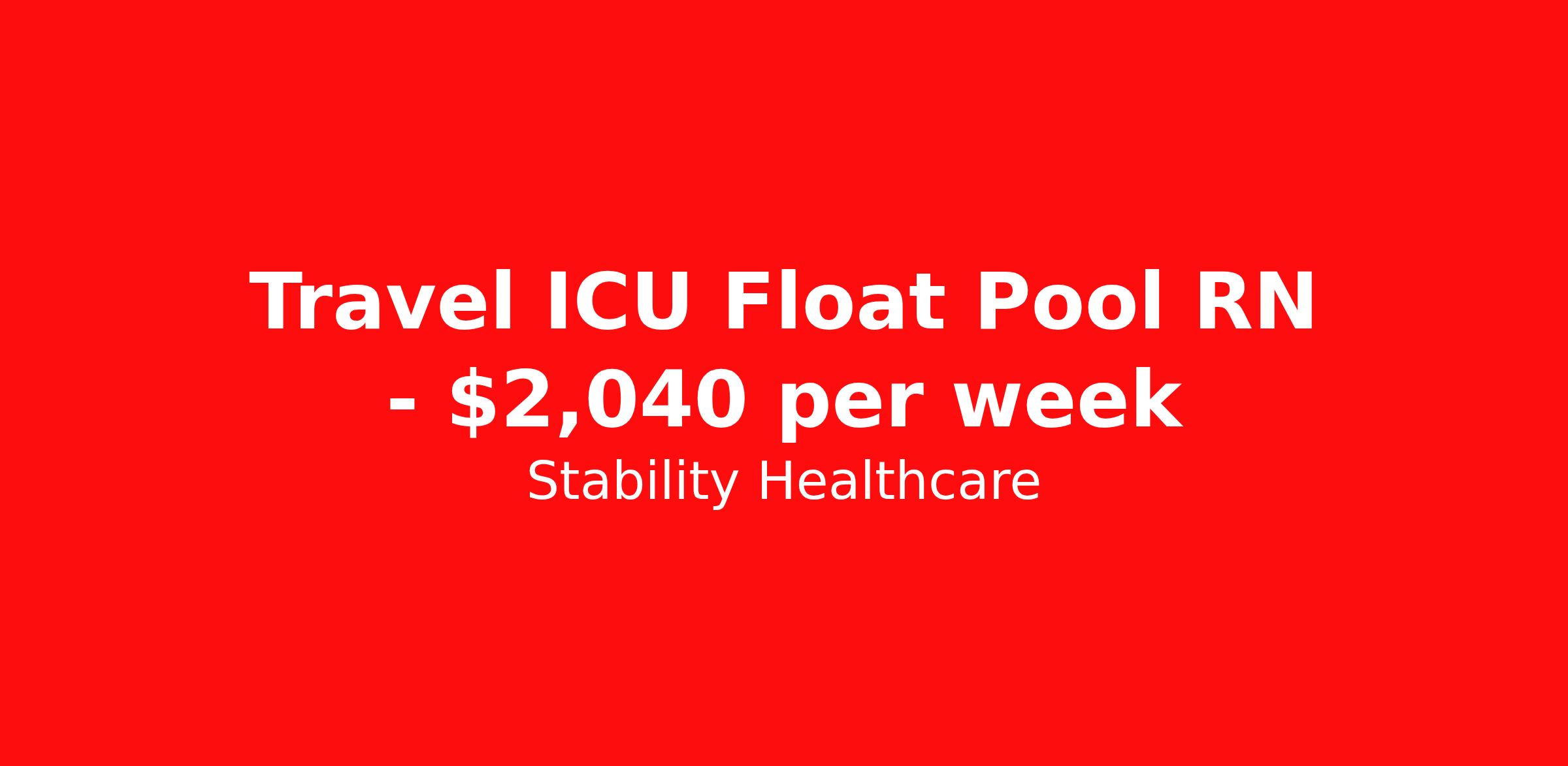 Stability Healthcare is seeking a travel nurse RN Float ICU - Intensive Care Unit Med Surg for a travel nursing job in Albany, Georgia. Job Description & Requirements Specialty: ICU - Intensive Care Unit Discipline: RN Duration: 17 weeks 36 hours per week Shift: 12 hours, nights Employment Type: Travel Stability Healthcare is looking for a ICU RN contract position in Albany, GA. Intensive Care Unit (ICU) Nurses treat acutely ill patients with life-threatening conditions, in settings requiring continuous vigilance and high-intensity therapies. ICU nurses can specialize in a variety of disciplines including medical, surgical, cardiac, burn or Neuro ICU. *$600 travel bonus *Day 1 health insurance with United Healthcare *PTO plan start accruing on day 1, use during contract or cash out at the end! *Guaranteed stipend if facility calls you off *Extra hour bonus earn an additional hourly bonus for working over your weekly contracted hours Stability Job ID 827392. Pay package is based on 12 hour shifts and 36 hours per week (subject to confirmation) with tax-free stipend amount to be determined. Posted job title: ICU About Stability Healthcare Stability Healthcare was founded in 2009, with the mission of becoming the best Travel Nursing Agency in California. We have been rated one of the top travel nursing agencies and offer our nurses the highest paying travel nursing jobs available. We have access to the best travel assignments from 1000’s of facilities. You can start the year off in sunny California, spend the Spring in the Colorado Rockies, enjoy the Summer in the Mid-West, experience the change of seasons in Boston and New York, and hit the beaches of Florida in the winter. Our Nurses work in the best hospitals and health systems in the country. Benefits Guaranteed Hours Benefits start day 1