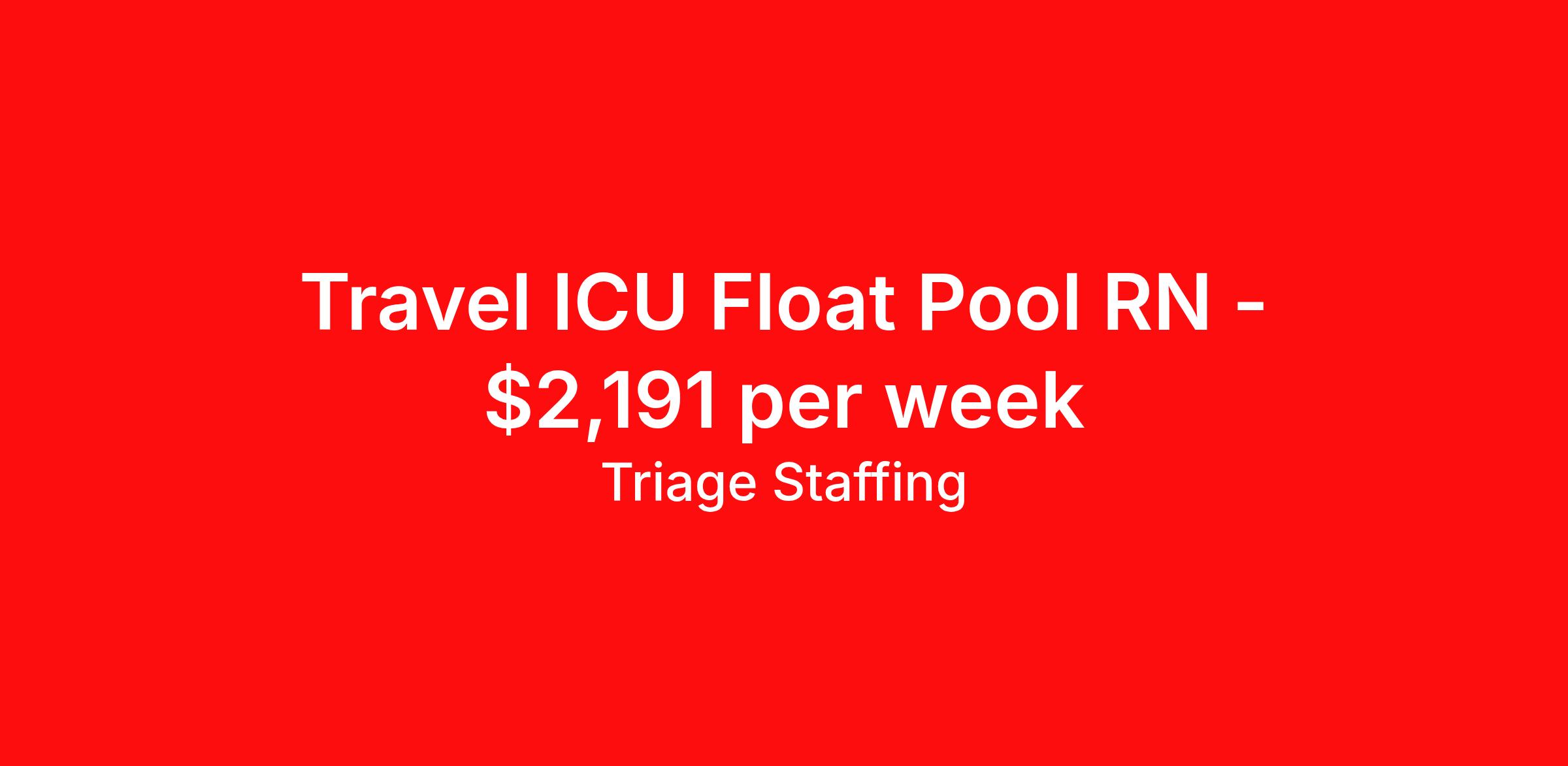 Triage Staffing is seeking a travel nurse RN ICU - Intensive Care Unit for a travel nursing job in Colorado Springs, Colorado. Job Description & Requirements Specialty: ICU - Intensive Care Unit Discipline: RN Start Date: 04/13/2026 Duration: 13 weeks 36 hours per week Shift: 12 hours, nights Employment Type: Travel Travel Nursing: Intensive Care Unit Colorado Springs, CO Location: Colorado Springs, CO Start Date: 4/13/2026 Shift Details: 12H Nights 36 hours per week Length: 13 WEEKS Apply for specific facility details.ICU RN Triage Staffing Job ID XXGCLX4G. Posted job title: Nursing: Intensive Care Unit About Triage Staffing At Triage, we prefer to be real . Real about expectations—both ours and yours. Real about how a decision you make today could affect your tomorrows. Real about how compensation actually works. Real about how great—or grating—your next supervisor may be. Being real allows everyone at Triage to be ready . Ready to serve you with real honesty. So if that gig near the ocean is really no day at the beach, or that third shift comes with a second-class rate, we tell you. So you can be ready, too. We staff all five major divisions of acute care—nursing, lab, radiology, cardiopulmonary and rehab therapy, offering: - Competitive, custom pay packages - One point of contact for both travelers and facilities (per division) - A reliable recruiter who's got your back throughout your entire assignment - In-house compliance and accounting specialists - A clinical liaison team available 24/7 to offer medical and professional support and career development - A mentoring program that is run and managed by actual clinicians—yeah, you read that right - And more (because of course there’s more) Are we the biggest? No. Are we the best? That’s rather subjective, but we’re trying to be. Will we work like hell to get you as close to your idea of heaven as possible? Yes. Yes, we will. Benefits: Day One comprehensive, nationwide insurance plans for health, vision and dental and life—including a HSA option Day One 401(k) program with employer-matching contributions once eligible Facility cancelling protection—your time is money on and off-the-clock Guaranteed hours Weekly paychecks via direct deposit Earned vacation bonuses for time worked Paid holidays Employee assistance program (EAP)—your mental health is important, too Continuing education, certification and licensing reimbursement Workers comp—because accidents happen Top-rated professional liability insurance Company provided housing options Referral bonus—$750 in your pocket after they’ve completed a 13-week assignment