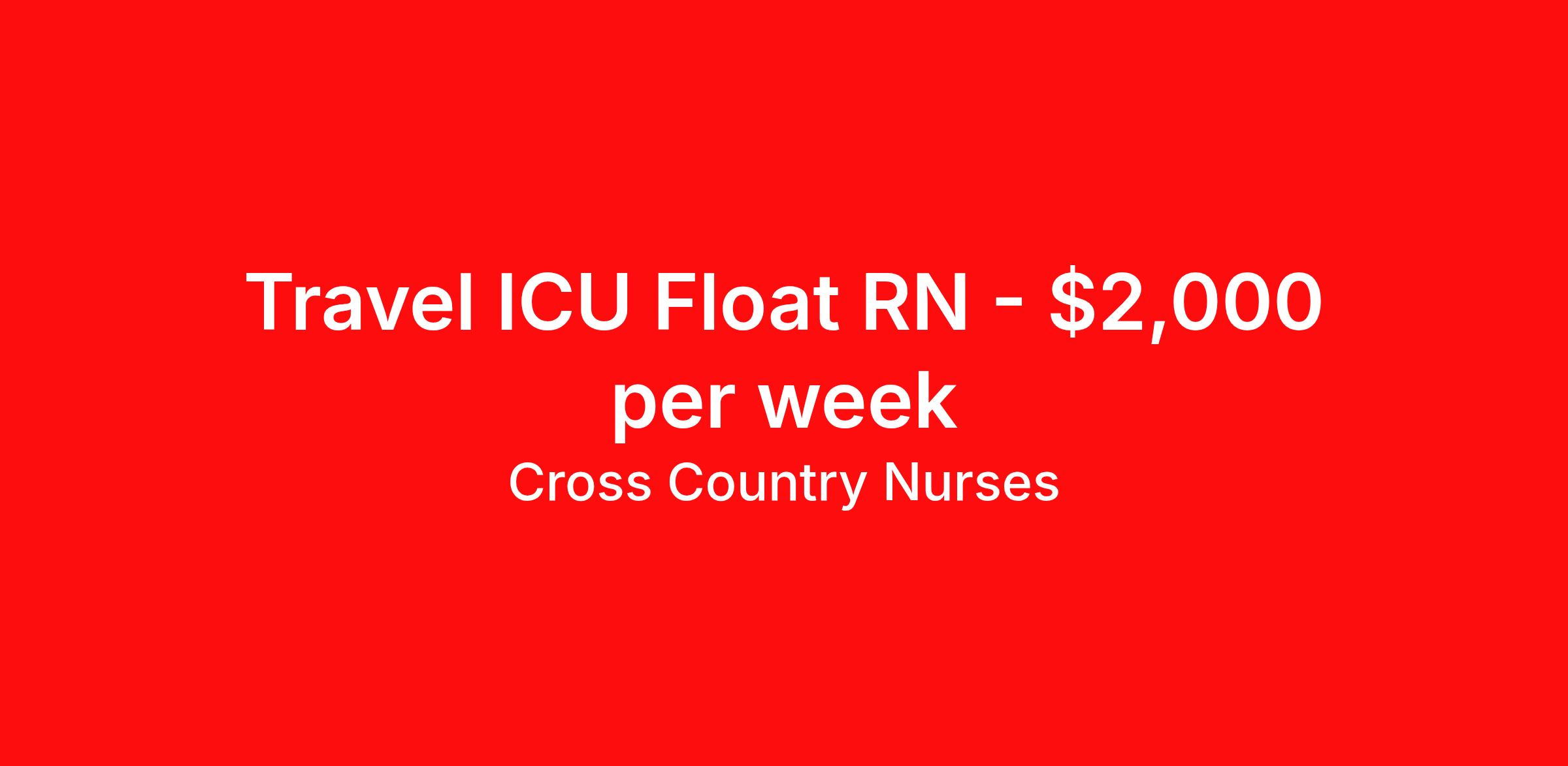 Cross Country Nurses is seeking a travel nurse RN Float ICU - Intensive Care Unit Med Surg for a travel nursing job in Asheville, North Carolina. Job Description & Requirements Specialty: ICU - Intensive Care Unit Discipline: RN Start Date: 03/30/2026 Duration: 13 weeks 36 hours per week Shift: 12 hours, nights Employment Type: Travel Job Description As an intensive care unit nurse (RN ICU), you will be monitoring patients with highly unstable, life-threatening conditions, to ensure they receive the best possible care. You must be able to rapidly assess a patient's condition and intervene with the appropriate care, managing various life-support systems like ventilation and heart-monitoring. Additionally, you will extend emotional support and education to gravely ill patients and their families. Minimum Requirements At least 1 year of recent acute care experience in specialty Active RN license Benefits The benefits of taking a travel nursing job with Cross Country include: Private housing or generous housing allowance Comprehensive health insurance with prescription coverage Dependent health insurance with prescription coverage Competitive salaries Referral bonuses Travel reimbursement 401(k) retirement plan Direct deposit/free checking Unlimited free CE credits Cross Country Job ID 1231822. Pay package is based on 12 hour shifts and 36 hours per week (subject to confirmation) with tax-free stipend amount to be determined. Posted job title: Registered Nurse / Intensive Care Unit Float About Cross Country Nurses You care for others — we’re here to care for you. At Cross Country, we know travel nursing is about more than just the job. It’s about building a career that supports your lifestyle, your values, and your impact. We offer competitive pay, full benefits, and 24/7 support from a team that truly understands what it means to be on the front lines. Wherever your journey takes you, we’re with you every step of the way. Let’s build your best life — one assignment at a time. Benefits 401k retirement plan Referral bonus