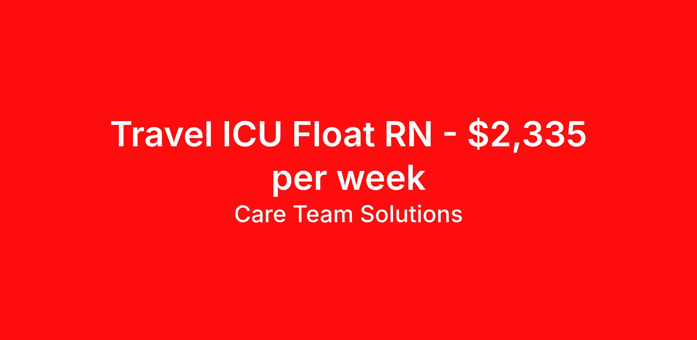 Care Team Solutions is seeking a travel nurse RN Float Med Surg for a travel nursing job in Albany, New York. Job Description & Requirements Specialty: Med Surg Discipline: RN Start Date: 04/05/2026 Duration: 13 weeks 36 hours per week Shift: 12 hours Employment Type: Travel Registered Nurse must have 2 years of recent experience in particular specialty Details: Must Have 2 Years of recent Critical Care Unit experience. Specialty: Critical Care Unit Discipline: Registered Nurse Start Date: 2026-04-05 Duration: 13 Weeks Shift: 12 Hours Day shift Hours Per Week: 36 Hours Employment Type: Contract Gross Weekly Pay: $2334.96 Six things that won’t happen if you apply to this job: You won’t have to guess what the downsides are. We’ll tell you up front. You won’t show up on day 1 and find out this is not what you signed up for. We won't leave your phone call ringing when it's inconvenient. Business hours for you are business hours for us. You won’t get shuffled to some customer service rep when a problem pops up. If we screw up something in securing your placement, we'll own it. That means it's on us to make it right. You won’t figure out your credentials alone. Our credentialing experts will walk you through it step by step. We've talked to thousands of travel nurses like you. We know you want good pay. You want to choose when you work. But the one thing nurse after nurse has said they want and don't have is someone in their corner. There's a lot in this business that’s messed up. We’re trying to be the people that fix it. You and every nurse with the guts to travel deserve it. We've worked hard for you to enjoy some one-of-a-kind benefits you'll not likely find anywhere else, because they benefit you more than they benefit us: Our early pay program Student loan reimbursement Free well-being tele-visits with a psychologist Care Team Solutions Job ID 581715. Pay package is based on 12 hour shifts and 36 hours per week (subject to confirmation) with tax-free stipend amount to be determined. Posted job title: AMC - Travel RN - Critical Care Float Pool - Days About Care Team Solutions Two brothers who give an enormous damn. We're Justin and Kyle. Neither of us are nurses. It doesn’t take a nurse to see that the way travel nurses are treated sucks. Nursing is already hard enough. Travel nursing takes serious guts. You get the toughest assignments in places you’ve never been. Which can be fun, but it’s also stressful. You’re in your element but outside of your hometown. You can be a stranger on the team. If anyone deserves someone in their corner, it’s you. But that’s not how most agencies operate. Which is why travel nurses hate working with them. We got into this business because we saw bucket-loads of nurses moving through the "churn and burn" travel machinery. We absolutely hate that. You'll do your best work when you have the placements you want and feel fully supported in your work. We pay our people well because we want them to treat you well. Our recruiters are amazing (we picked each of them ourselves), but if you've got a problem too big for them, they can come straight to us. We work like ten feet away. The "Churners and Burners" promise you the same benefits. They might as well copy/paste them from each other. We have them too: 401k, holiday pay, healthcare, dental, travel reimbursement, etc But we've worked hard for you to enjoy some one-of-a-kind benefits you'll not likely find anywhere else, because they benefit you more than they benefit us: Our early pay program Student loan reimbursement Free well-being tele-visits with a psychologist Benefits Weekly pay Holiday Pay Guaranteed Hours 401k retirement plan Wellness and fitness programs Referral bonus Medical benefits Dental benefits Vision benefits School loan reimbursement