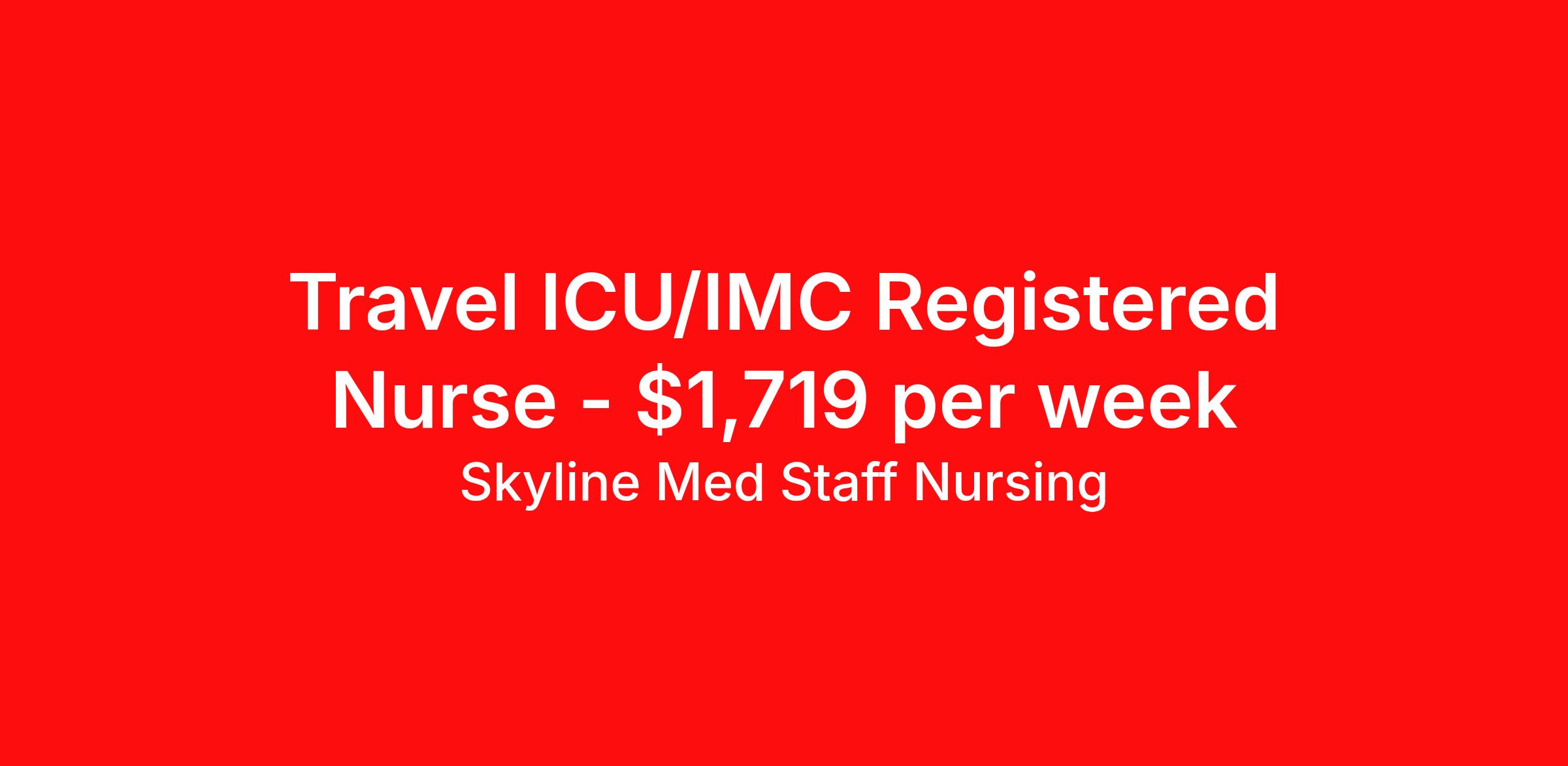 Skyline Med Staff Nursing is seeking a travel nurse RN ICU - Intensive Care Unit for a travel nursing job in Longview, Texas. Job Description & Requirements Specialty: ICU - Intensive Care Unit Discipline: RN Start Date: 04/06/2026 Duration: 13 weeks 36 hours per week Shift: 12 hours, nights Employment Type: Travel Weekly amount stated in job postings is an estimate based on estimated hourly wage and potential stipends available for the location of the assignment. Pay package is calculated on bill rate at the time job was posted, but can change or vary without notice. Exact pay packages might vary as this is an estimate. Our recruiter would be happy to build an exact pay package for you for each job. Skyline Med Staff Nursing Job ID 36184318. Pay package is based on 12 hour shifts and 36.0 hours per week (subject to confirmation) with tax-free stipend amount to be determined. Posted job title: RN:ICU,19:00:00-07:00:00 About Skyline Med Staff Nursing Join the Top- Rated Travel Healthcare Team! Skyline Med Staff was named as the 1 Best Travel Healthcare Company in 2025 by BluePipes, a recognition driven by glowing reviews from travel healthcare professionals. Our recruiters are consistently praised on Google for their responsiveness, dedication, accessibility, and industry knowledge. Ready to experience the difference? Apply for a job today and see why healthcare professionals choose Skyline! Certified Women Owned Business We believe that travel is good for the soul. We want to be on your journey with you and find the right job that fits you Skyline Med Staff is committed to one vision treating others the way that THEY want to be treated. The executive team at Skyline Med Staff focuses on a commitment to quality, consistency, and the highest level of service. Our team members continually strive to build long term relationships that center on you and helping you achieve your goals. Some of the Benefits you will receive with Skyline Med Staff: Over 30 years of combined experience in the staffing industry Higher Take-Home Pay Rates Dedicated Personal Recruiter We are available to you 24/7 Health Insurance Plan Options Tax Free Per Diems, Housing Stipends and Travel Reimbursements Joint Commission Certified Contracts in all 50 states Referral and Loyalty Bonuses Benefits Medical benefits Referral bonus