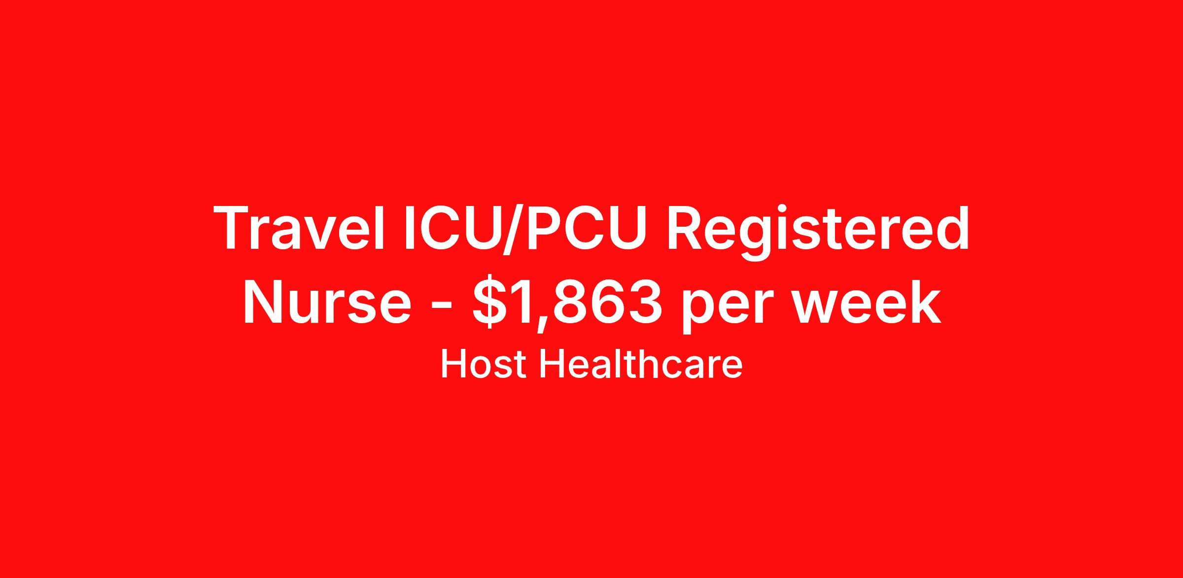 Host Healthcare is seeking a travel nurse RN ICU - Intensive Care Unit for a travel nursing job in Laurinburg, North Carolina. Job Description & Requirements Specialty: ICU - Intensive Care Unit Discipline: RN Start Date: 04/13/2026 Duration: 13 weeks 36 hours per week Shift: 12 hours, nights Employment Type: Travel Host Healthcare Job ID a1fVX000002yjdpYAA. Pay package is based on 12 hour shifts and 36 hours per week (subject to confirmation) with tax-free stipend amount to be determined. Posted job title: RN - ICU About Host Healthcare At Host Healthcare, we provide a truly comfortable experience as you explore your travel nursing, therapy, or allied career. We make your travel healthcare journey easy by taking care of all the details, so you don’t have to. We are on a mission to help others live better and we do this by helping the healers of the world be as comfortable as possible. With access to tens of thousands of travel nursing, therapy, and allied jobs in all 50 states, our responsive and friendly recruiters find your dream position based on what’s important to you. During your assignment, get access to premium benefits, including Day 1 medical that continues up to 30 days between assignments, 401K matching, travel reimbursements, dedicated housing support, and more. We also offer 24/7 support from our team and access to our on-staff clinicians so you can feel comfortable and confident throughout your entire assignment. Travel comfortably with Host Healthcare. Benefits Referral bonus School loan reimbursement Vision benefits Wellness and fitness programs Company provided housing options License and certification reimbursement Life insurance Medical benefits Mileage reimbursement Pet insurance Discount program Employee assistance programs Guaranteed Hours Health savings account Holiday Pay 401k retirement plan Continuing Education Dental benefits