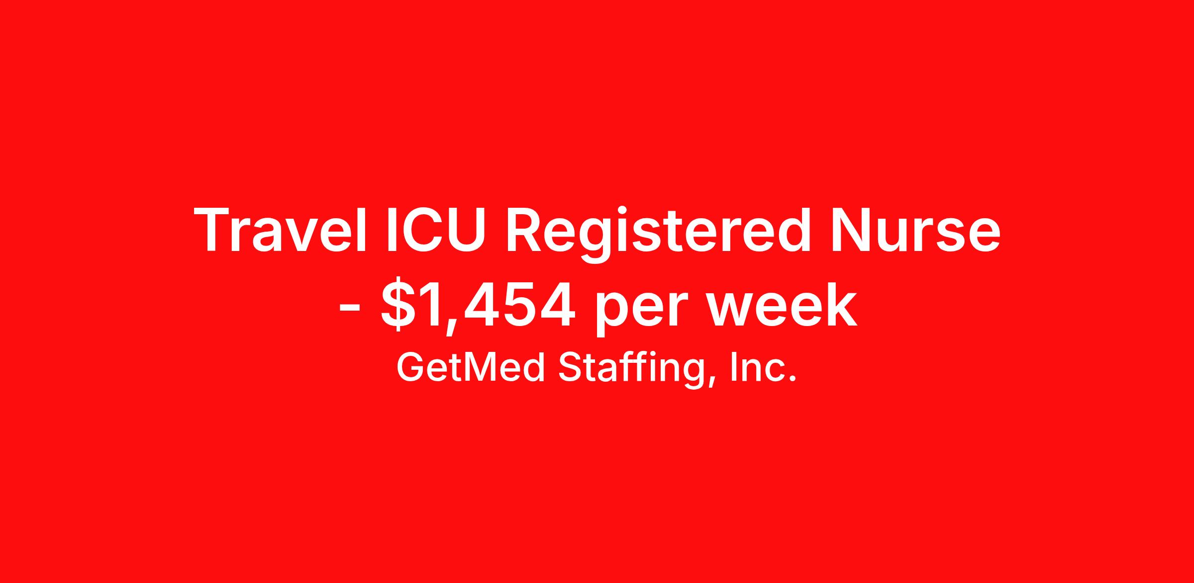 GetMed Staffing, Inc. is seeking a travel nurse RN Clinic ICU - Intensive Care Unit for a travel nursing job in Cleveland, Ohio. Job Description & Requirements Specialty: ICU - Intensive Care Unit Discipline: RN Start Date: 04/17/2026 Duration: 13 weeks 36 hours per week Shift: 12 hours, nights Employment Type: Travel GetMed Staffing is searching for a strong Clinic RN to assist our traveler-friendly client. A minimum of 1-2 years of experience is required. Traveling with GetMed Staffing offers the unique opportunity to gain diverse experiences, both personally and professionally. Gain experience that matters. GetMed Staffing, Inc. Job ID 35773985. Pay package is based on 12 hour shifts and 36.0 hours per week (subject to confirmation) with tax-free stipend amount to be determined. Posted job title: RN:Clinic,19:00:00-07:00:00 About GetMed Staffing, Inc. We are a diversity owned company, specializing in healthcare recruiting services. We truly understand how important a healthcare travelers' relationship is with their recruiter, as well as our relationship is with our healthcare facilities. We recognize that the needs of our healthcare travelers can vary, and therefore we provide the personalized touch necessary to ensure a successful travel assignment each and every time. Our healthcare facilities and clients benefit from us putting our healthcare travelers first. GetMed Staffing is excited to be a leader within the industry by focusing on providing healthcare travelers with more choices and possibilities as they plan for their next healthcare travel assignment. Benefits Life insurance Medical benefits Dental benefits Vision benefits 401k retirement plan