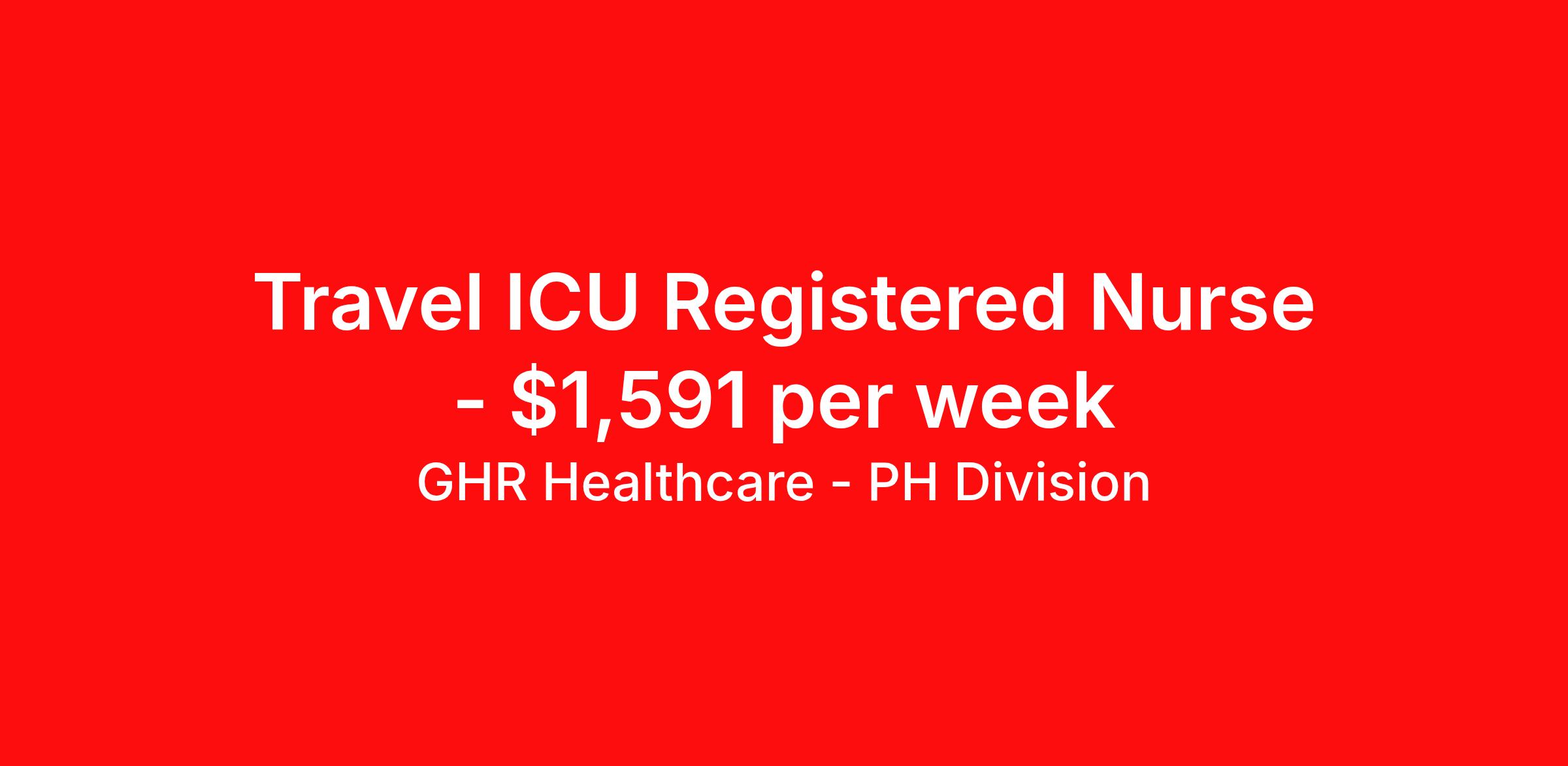 GHR Healthcare - PH Division is seeking a travel nurse RN ICU - Intensive Care Unit for a travel nursing job in San Antonio, Texas. Job Description & Requirements Specialty: ICU - Intensive Care Unit Discipline: RN Start Date: ASAP Duration: 13 weeks 36 hours per week Shift: 12 hours Employment Type: Travel ICU Registered Nurse (RN) – Travel Assignment | San Antonio, TX Travel ICU Registered Nurse (RN) opportunity in San Antonio, TX (Stone Oak) — 13-week critical care travel nursing assignment, starts Feb 25, 2026. Join a dynamic and supportive ICU team in beautiful San Antonio, TX! As an ICU RN / Critical Care RN and travel nurse, you'll work in a state-of-the-art hospital committed to patient safety and outstanding clinical outcomes. San Antonio's Stone Oak area offers a vibrant community, excellent dining and shopping, and easy access to the scenic Texas Hill Country—making it a fantastic place to live and work during your travel nursing assignment. Job Details Location: San Antonio, TX (Stone Oak area) — San Antonio nursing jobs / Texas ICU RN opportunity Estimated Weekly Pay: $1460-$1540 Assignment Length: 13 weeks Start Date: February 25, 2026 End Date: May 27, 2026 Setting: 14-bed ICU within a modern hospital (critical care, medical-surgical support available) Shift: 12-hour nights (7:00 PM – 7:30 AM), every other weekend required Hours per Week: 36 Employment Type: Travel/Contract — Travel Nurse / Clinical support role Job Requirements Active Texas RN license required (temporary licenses not accepted) — must meet state licensing for Texas nursing jobs Minimum 2 years of recent ICU / critical care RN experience Current ACLS and BLS certifications (American Heart Association) NIH Stroke Scale certification required Experience administering and titrating vasopressors and critical care medications Ability to float to other units (Med/Surg, step-down) as needed Strong attendance record and reliability Meditech documentation experience preferred (electronic health record experience a plus) Responsibilities Provide high-quality, compassionate care to critically ill patients as an ICU Registered Nurse in a 1:2 nurse-to-patient ratio Administer and titrate vasopressors, vasoactive drips, and other critical care medications with appropriate monitoring Perform continuous patient assessment, monitor hemodynamics, and document patient status using Meditech (preferred) or other EHRs Collaborate with a multidisciplinary critical care team including physicians, PCAs, respiratory therapists, and unit coordinators Float to other units (such as Med/Surg) when needed to support patient care and staffing Adhere to hospital policies and unit standards, including dress code (navy scrubs), attendance, and floating guidelines Participate in ongoing quality improvement and patient safety initiatives for ICU and critical care services If you are a dedicated ICU RN / Critical Care RN seeking a rewarding travel nurse assignment in a thriving and welcoming community, apply now to join this outstanding team in San Antonio. Apply now — join our healthcare team today as an ICU Travel Nurse in San Antonio! Benefits 401K with Matching, Healthcare, Dental and Vision Equal Opportunity We are an equal opportunity employer and value diversity across our organization. We do not discriminate on the basis of race, religion, color, national origin, gender, sexual orientation, age, marital status, veteran status, or disability status. Planet Healthcare Job ID 465235. Pay package is based on 12 hour shifts and 36 hours per week (subject to confirmation) with tax-free stipend amount to be determined. Posted job title: ICU About GHR Healthcare - PH Division For over 30 years, GHR Healthcare has been the bridge between healthcare professionals and the facilities that need them nationwide. We're committed to uncovering your ideal fit, supported by GHR's dedication to competitive compensation, transparent communication, and a devoted team that genuinely cares about your career journey. You can trust us to stand by your side as your advocate, confidante, and partner in advancing your career. At GHR, care and consideration are at the heart of everything we do. Visit ghrhealthcare.com to learn more.