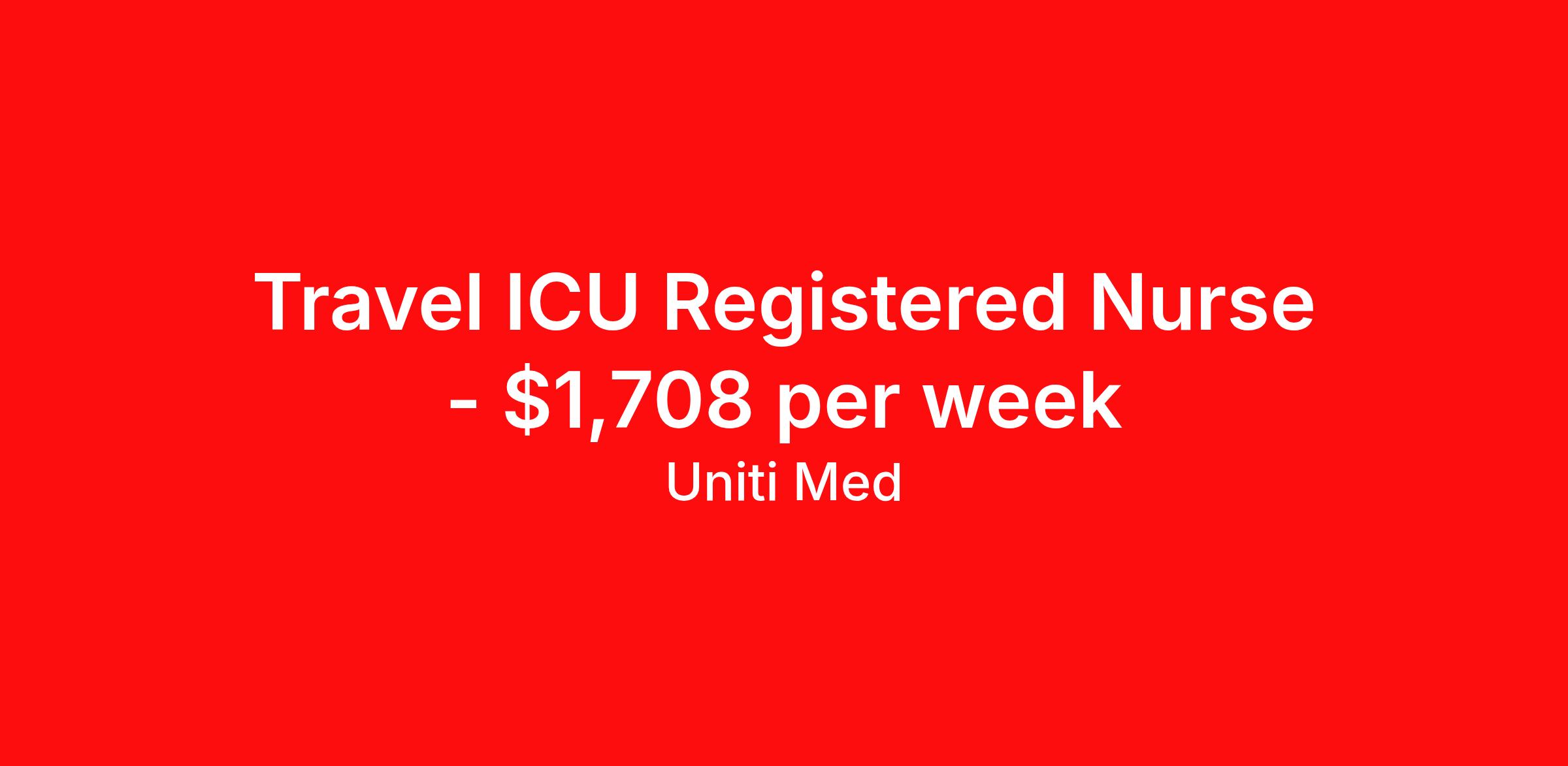 Uniti Med is seeking a travel nurse RN ICU - Intensive Care Unit for a travel nursing job in Christiansburg, Virginia. Job Description & Requirements Specialty: ICU - Intensive Care Unit Discipline: RN Start Date: 04/06/2026 Duration: 13 weeks 36 hours per week Shift: 12 hours, nights Employment Type: Travel Benefits: Day 1 Insurance Cigna medical, MetLife dental and vision insurance License reimbursement for new licenses needed for each assignment Discounts with hotels and rental cars A dedicated recruiter and support team that will help you every step of the way to sure you start on time and have an exceptional experience Referral bonus up to $700 About the Company: Finding the right role is about more than just matching skills to a job—it’s about aligning with your goals, values, and the way you want to work. As an award-winning talent partner, we support healthcare professionals through every step of that process, offering meaningful opportunities, clear guidance, and long-term partnership. From our first conversation to your first day on the job (and beyond!), we’re here to help you move forward with confidence. UnitiMed Job ID 789204. Pay package is based on 12 hour shifts and 36 hours per week (subject to confirmation) with tax-free stipend amount to be determined. Posted job title: Registered Nurse (RN) About Uniti Med Uniti Med meticulously matches your talents to our open needs to ensure the ultimate travel experience. Tell us where you want to go and let our experienced staff lead the way! Benefits Referral bonus Benefits start day 1 Employee assistance programs