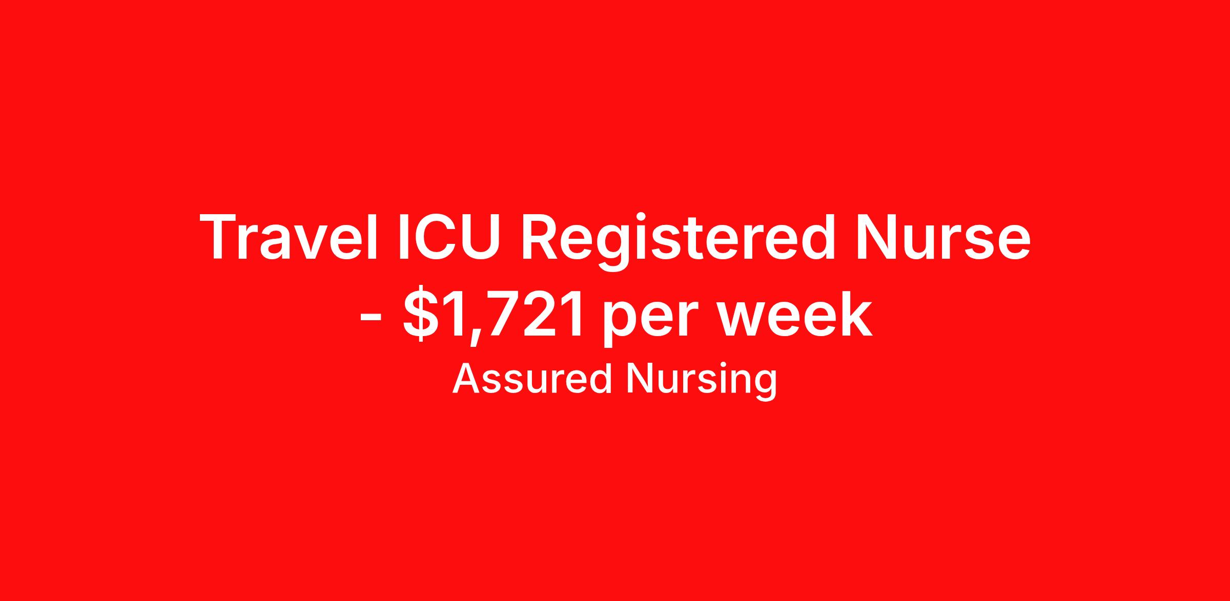 Assured Nursing is seeking a travel nurse RN ICU - Intensive Care Unit for a travel nursing job in Thomasville, Georgia. Job Description & Requirements Specialty: ICU - Intensive Care Unit Discipline: RN Start Date: 04/06/2026 Duration: 13 weeks 36 hours per week Shift: 12 hours, nights Employment Type: Travel Assured Nursing is currently seeking a RN for a contract position in Thomasville Georgia . This is a 7p-7:30a, 19:00:00-07:30:00, 12.00-3 position in the ICU, 16120 . The ideal candidate will possess a current state license as a RN and have at least 2 years of recent experience as a ICU RN . Assured Nursing Job ID 36200150. Pay package is based on 12 hour shifts and 36.0 hours per week (subject to confirmation) with tax-free stipend amount to be determined. Posted job title: RN:ICU,19:00:00-07:30:00 Benefits Weekly pay Holiday Pay 401k retirement plan Referral bonus Medical benefits Dental benefits Vision benefits