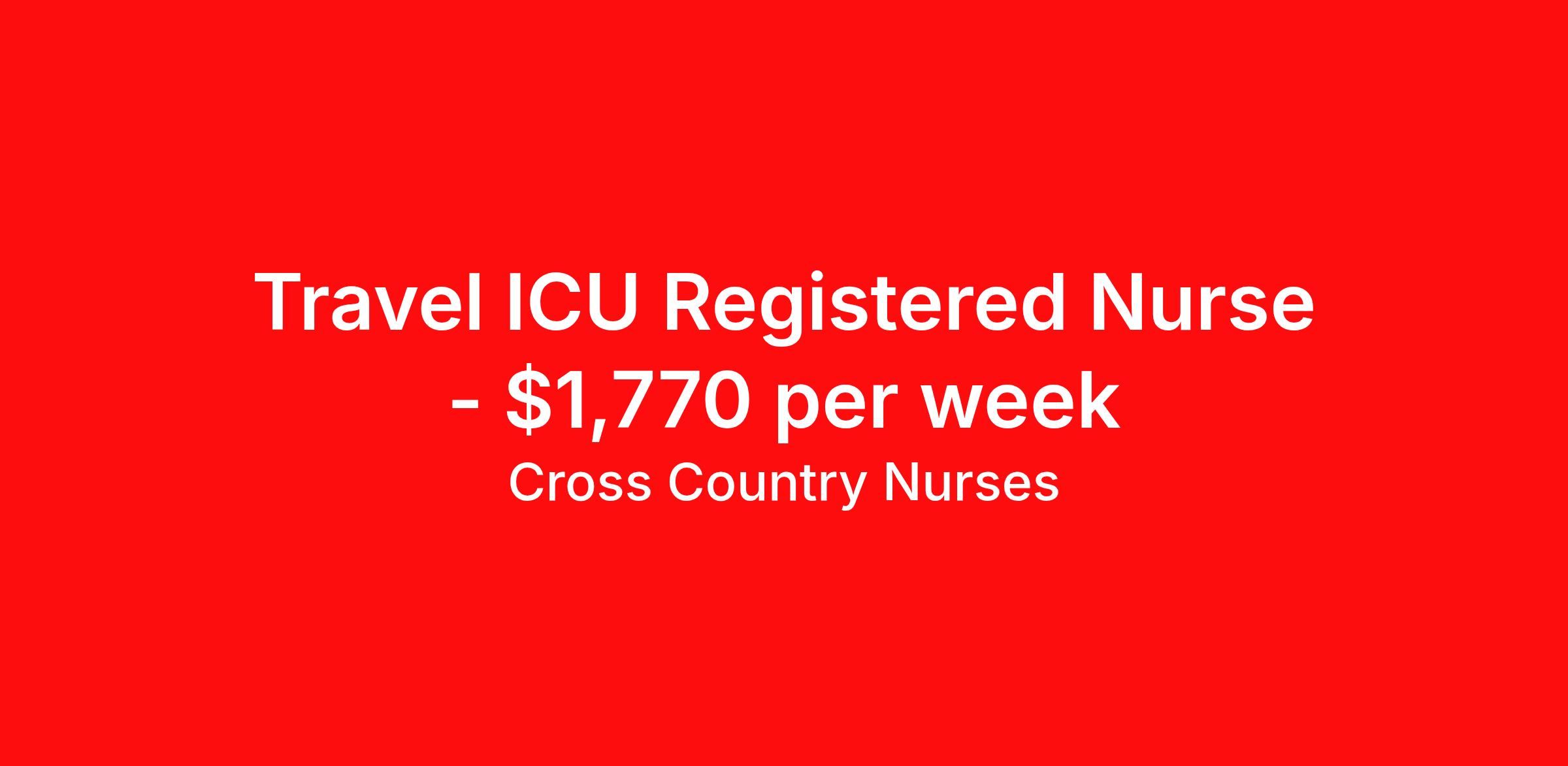 Cross Country Nurses is seeking a travel nurse RN ICU - Intensive Care Unit for a travel nursing job in Philadelphia, Pennsylvania. Job Description & Requirements Specialty: ICU - Intensive Care Unit Discipline: RN Start Date: 04/05/2026 Duration: 13 weeks 36 hours per week Shift: 12 hours, days Employment Type: Travel Job Description As an intensive care unit nurse (RN ICU), you will be monitoring patients with highly unstable, life-threatening conditions, to ensure they receive the best possible care. You must be able to rapidly assess a patient's condition and intervene with the appropriate care, managing various life-support systems like ventilation and heart-monitoring. Additionally, you will extend emotional support and education to gravely ill patients and their families. Minimum Requirements At least 1 year of recent acute care experience in specialty Active RN license Benefits The benefits of taking a travel nursing job with Cross Country include: Private housing or generous housing allowance Comprehensive health insurance with prescription coverage Dependent health insurance with prescription coverage Competitive salaries Referral bonuses Travel reimbursement 401(k) retirement plan Direct deposit/free checking Unlimited free CE credits Cross Country Job ID 1237175. Pay package is based on 12 hour shifts and 36 hours per week (subject to confirmation) with tax-free stipend amount to be determined. Posted job title: Registered Nurse / Intensive Care Unit About Cross Country Nurses You care for others — we’re here to care for you. At Cross Country, we know travel nursing is about more than just the job. It’s about building a career that supports your lifestyle, your values, and your impact. We offer competitive pay, full benefits, and 24/7 support from a team that truly understands what it means to be on the front lines. Wherever your journey takes you, we’re with you every step of the way. Let’s build your best life — one assignment at a time. Benefits 401k retirement plan Referral bonus