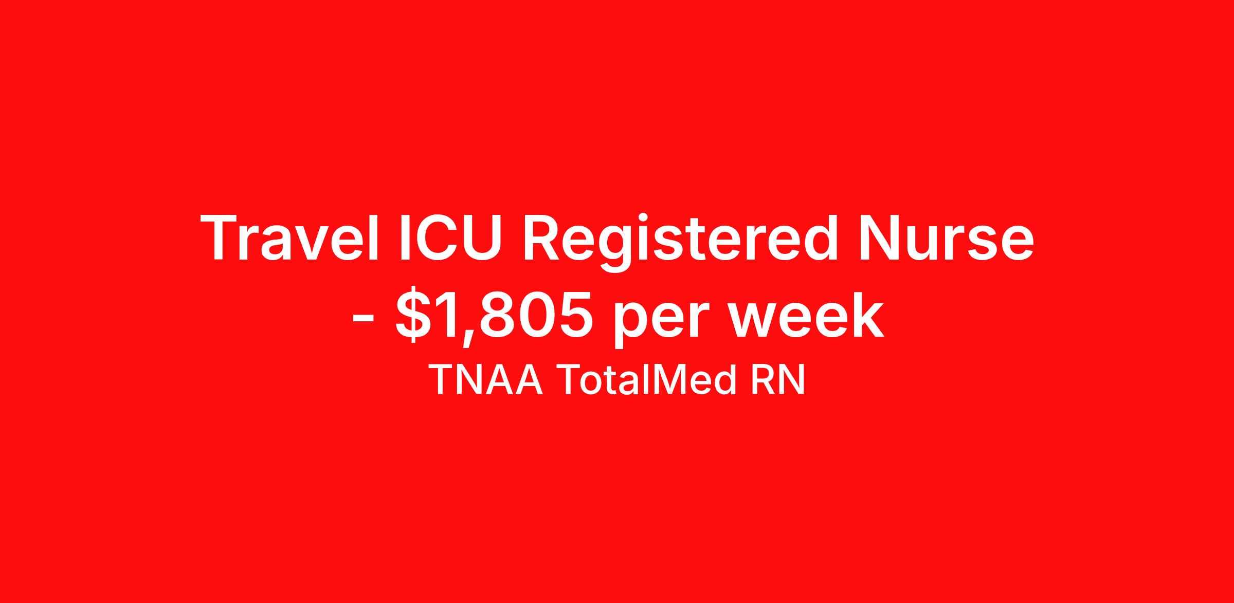 TNAA TotalMed RN is seeking a travel nurse RN ICU - Intensive Care Unit for a travel nursing job in Barstow, California. Job Description & Requirements Specialty: ICU - Intensive Care Unit Discipline: RN Duration: 12 weeks 36 hours per week Shift: 12 hours, nights Employment Type: Travel We're looking for Intensive Care Unit RNs for an immediate travel nurse opening in Barstow, CA. The right nurse should have 1-2 years recent acute care experience. Read below for more requirements. As an ICU Travel Nurse, you'll be responsible for evaluating and monitoring patients in an Intensive Care Unit setting. ICU RNs provide the most direct care to patients in life-threatening situations, documenting and providing physician-directed care, assessing and implementing patient care plans, and delegating to other care providers as appropriate. As an ICU RN you will also be providing education and support to patient families, possibly for long-term care needs. As an ICU Travel Nurse, you should be prepared to perform the following tasks: Provide basic bedside care. Prepare, administer and record prescribed medication, reporting any adverse reactions to treatment. Order and evaluate diagnostic tests. Take samples for lab work, order corresponding lab work and interpret reports. Monitor and adjust specialized equipment, and interpret and record electronic displays. Ensure proper placement and functioning of catheters, leads and tubing. Communicate patients' conditions to family members. ICU Travel Nurses should be able to stand and walk for long periods of time, as well as bend, lean and stoop without difficulty. RNs should be able to easily lift 20 pounds. Moving or lifting of patients may require lifting of up to 50 pounds at times. RNs may face hazards from exposure to certain chemicals or infectious diseases and will treat patients that may be confused, agitated, and/or uncooperative. Requirements*: ACLS, BLS, 2 Years * Additional certifications may be required before beginning an assignment. TotalMed Travel Job ID 1382941. Pay package is based on 12 hour shifts and 36 hours per week (subject to confirmation) with tax-free stipend amount to be determined. Posted job title: Intensive Care Unit - ICU RN - Travel Nurse About TNAA TotalMed RN TotalMed is a Top Ten, travel nursing and healthcare staffing agency with the mission of igniting purpose in healthcare. The organization staffs nurses, therapists, pharmacists, and other clinicians of all specialties in all 50 states. They offer local and travel jobs and match caregivers with the right organization to assist both facilities and patients. As an organization, they focus on putting highly-skilled staff into facilities to ensure adequate staffing for a better patient experience. TotalMed specializes in recruiting and placing healthcare professionals in travel, PRN, and permanent positions across the country in Nursing and Allied Health. Throughout 2020, the organization filled roles at even the most short-staffed facilities during the most challenging time in healthcare. By matching the right travel healthcare professional with the right organization, TotalMed continues to offer a lifeline to facilities and their patients. Benefits Weekly pay Guaranteed Hours Continuing Education 401k retirement plan Sick pay Wellness and fitness programs Referral bonus Employee assistance programs Medical benefits Dental benefits Vision benefits Benefits start day 1