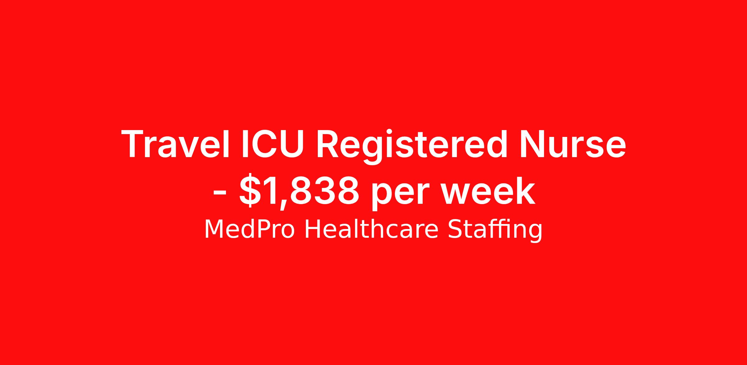 MedPro Healthcare Staffing is seeking a travel nurse RN ICU - Intensive Care Unit for a travel nursing job in Cape Girardeau, Missouri. Job Description & Requirements Specialty: ICU - Intensive Care Unit Discipline: RN Start Date: 04/06/2026 Duration: 13 weeks 36 hours per week Shift: 12 hours, nights Employment Type: Travel MedPro Healthcare Staffing , a Joint Commission-certified staffing agency, is seeking a quality ICU/CCU Registered Nurse for a travel assignment with one of our top healthcare clients. Requirements Active RN License Degree from accredited nursing program BLS & ACLS Certification Eighteen months of recent experience in an Acute Care ICU setting Other requirements to be determined by our client facility Benefits Weekly pay and direct deposit Full coverage of all credentialing fees Private housing or housing allowance Group Health insurance for you and your family Company-paid life and disability insurance Travel reimbursement 401(k) matching Unlimited Referral Bonuses up to $1,000 Duties Responsibilities ICU/Critical Care Nurse (RN) possesses the skills needed to manage the care of adult patients experiencing life-threatening problems requiring complex assessment, high intensity therapies, and interventions. Provide patient care as well as education and support to the patient's family. Ensure proper functioning of life support equipment such as ventilators and feeding tubes. Observe the patient's heart rate, blood pressure and respiration for signs of distress. Administer medication, IVs, and insert catheters as needed. Meticulous documentation of medication administration. Assist in emergency nursing procedures necessary for prompt control of changes in patient’s physical condition. Perform cardiopulmonary resuscitation accurately and effectively. About Agency MedPro Healthcare Staffing is a Joint Commission certified provider of contract staffing services. Since 1983, we have placed nursing and allied travelers in top healthcare facilities nationwide. Join us today for your very own MedPro Experience®. If qualified and interested, please call for immediate consideration. MedPro Staffing is an Equal Opportunity Employer. All applicants will be considered for employment without attention to race, color, religion, national origin, age, sex, disability, marital status or veteran status. Key Words: Intensive Care Unit, Nurse, Registered Nurse, RN-ICU, Critical Care Unit, Critical Care Nurse, Intensive Care Nurse, RN-CCU, Travel Nurse, Agency Nurse, Contract Nurse, Travel Contract, ACLS, EKG, RN, Registered Nurse, ICU, CCU, RN-ICU, RN-CCU, MICU, SICU, Advanced Life Support, CPR, BLS, Travel Nursing *Weekly payment estimates are intended for informational purposes only and include a gross estimate of hourly wages and reimbursements for meal, incidental, and housing expenses. Your recruiter will confirm your eligibility and provide additional details. MedPro Job ID a0Fcx00000GcsUPEAZ. Pay package is based on 12 hour shifts and 36 hours per week (subject to confirmation) with tax-free stipend amount to be determined. Posted job title: ICU/CCU Registered Nurse Nursing: ICU - Intensive Care. About MedPro Healthcare Staffing At MedPro Healthcare Staffing , we believe no one cares more for caregivers than we do. Our mission is simple: you focus on your patients, and we’ll take care of the rest. As a Joint Commission-certified leader in temporary and contract healthcare staffing since 1983, MedPro has proudly connected nursing and allied travelers with top healthcare facilities across the nation. With thousands of job opportunities available nationwide, we make it easy to find assignments that align with your goals and lifestyle. Our on-staff clinical support team—alongside a compassionate group of experienced recruiters—provides hands-on guidance every step of the way. From Day 1 medical benefits and a 401(k) plan to personalized career support, we’re committed to ensuring every professional we serve feels valued, cared for, and empowered to succeed. Guided by a CEO who is a Registered Nurse, MedPro is built on a foundation of clinical insight and genuine compassion for the caregiving community. Through The MedPro Experience® , we deliver travel assignments that are rewarding, memorable, and designed to help you DREAM big, EXPLORE often, and ACHIEVE greatness. Benefits Day 1 medical, dental, and vision benefits for you and your family Weekly pay and direct deposit Unlimited Referral Bonuses starting at $500 On Staff Clinical Support Team Access to nationwide travel assignments MPX Mobile app -24/7 real-time access to jobs, credentials, assignment details, and more Full coverage of all credentialing fees Private housing or housing allowance Tax Free Per Diems, Housing Stipends and Travel Reimbursements Company-paid life and disability insurance Travel reimbursement 401(k) matching Benefits Weekly pay Referral bonus Employee assistance programs