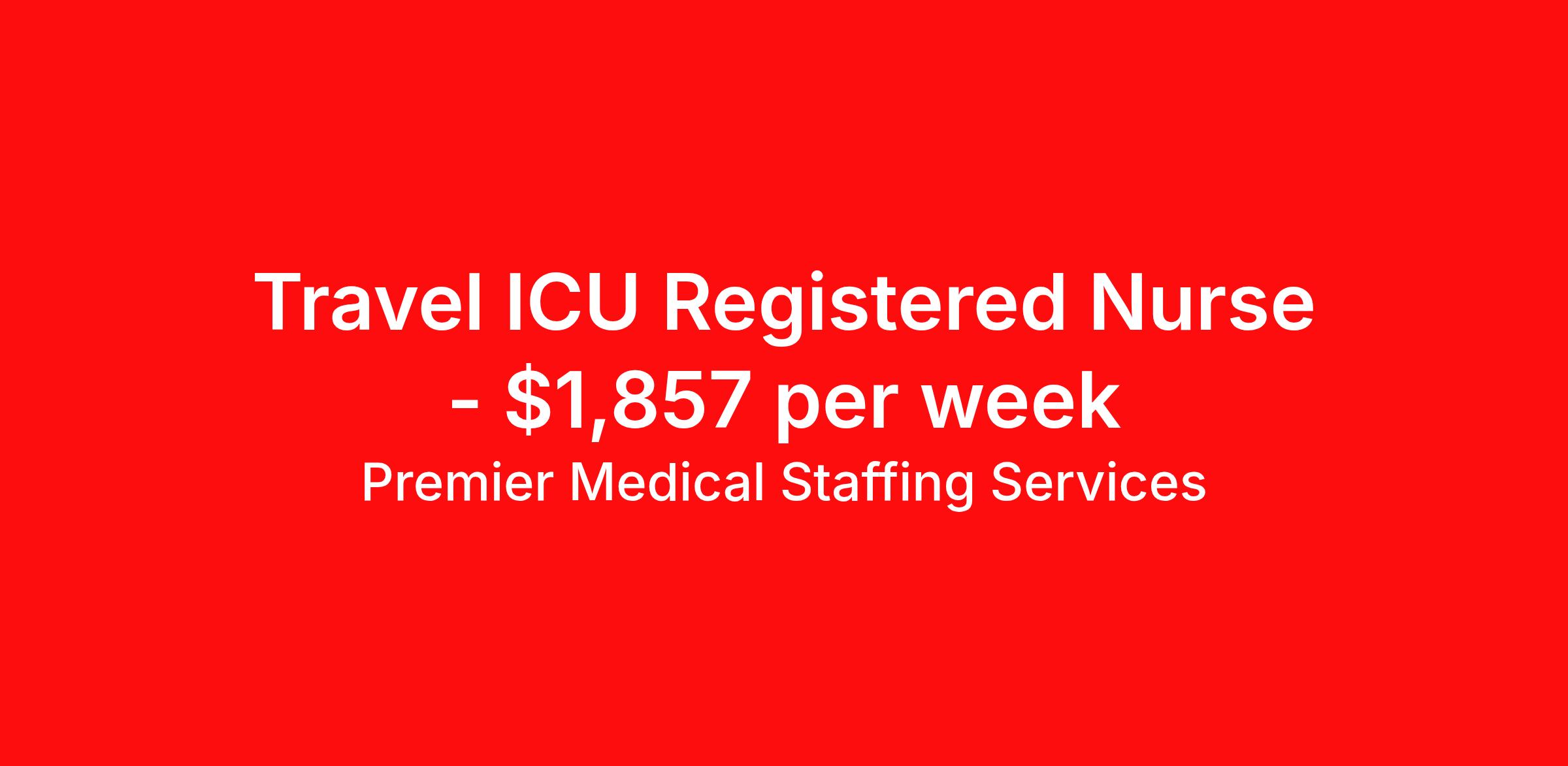 Premier Medical Staffing Services is seeking a travel nurse RN ICU - Intensive Care Unit for a travel nursing job in Chicago, Illinois. Job Description & Requirements Specialty: ICU - Intensive Care Unit Discipline: RN Start Date: ASAP Duration: 12 weeks 36 hours per week Shift: 12 hours Employment Type: Travel Premier Medical Staffing Job ID 612850. Pay package is based on 12 hour shifts and 36 hours per week (subject to confirmation) with tax-free stipend amount to be determined. Posted job title: RN ICU About Premier Medical Staffing Services Premier Medical Staffing Services, LLC is a nationally expanding healthcare staffing firm for healthcare professionals and companies. We understand our clients’ need for highly qualified, expertly trained medical professionals and are passionate about helping clinicians find employment opportunities that fit their personality and needs. Able to accommodate the ever-changing needs of the healthcare landscape, we offer per-diem, contract and direct hire placements to support the unique needs of each industry sector. Premier Medical Staffing Services is Joint Commission Certified, a Military Spouse Employment Partner and is certified as a Women’s Business Enterprise. We are proudly nurse owned.