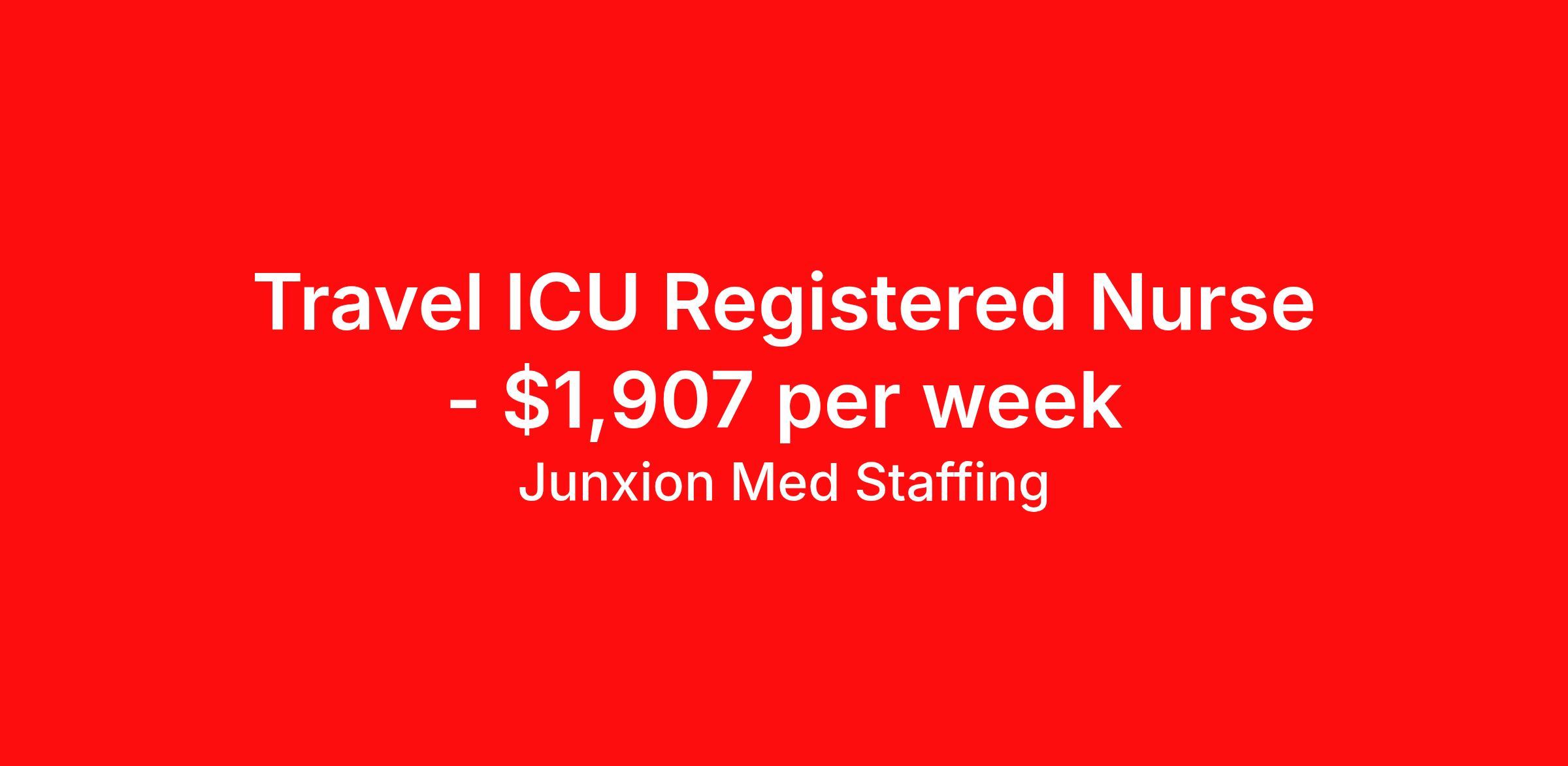 Junxion Med Staffing is seeking a travel nurse RN ICU - Intensive Care Unit for a travel nursing job in Asheville, North Carolina. Job Description & Requirements Specialty: ICU - Intensive Care Unit Discipline: RN Start Date: ASAP Duration: 26 weeks 36 hours per week Shift: 12 hours, nights Employment Type: Travel Summary: Junxion Med Staffing is looking for a ICU RN to take an assignment in Asheville, North Carolina. This assignment lasts 26.14 WEEKS and is scheduled to start on January 9, 2026. If you don't like the start date, pay, or shift, then let’s talk. Give us a call opt 1 Job Details: Shift: 12H Nights Total Weekly Hours: 36 Certifications: BLS, Trauma Level: Benefits: Day 1 Insurance Additional bonus potential for every contract Additional vacation incentives Medical insurance with no more than $175 monthly premium for employee Employee Assistance Program (EAP) Referral bonus up to $1,000 401K and access to financial advisors for financial wellness and education A dedicated recruiter and support team that will help you every step of the way to sure you start on time and have an exceptional experience An agency ran by a traveler for travelers Click here for licensing requirements About the Company: Junxion Med Staffing is an award-winning healthcare staffing company with a mission to provide quality healthcare to our communities. Apply today to speak with a recruiter! Awards: RNVIP- Top 10 Travel Nursing Agencies of 2024 BluePipes – The Best Travel Nursing Companies 2023 *Estimated weekly pay includes projected hourly wages and weekly meal and lodging per diems for eligible clinicians based on nationally published GSA rates. Actual weekly pay and per diems may differ from the amount shown and may be subject to change during an assignment. For all employees and employee applicants, Junxion Med Staffing is an Equal Employment Opportunity ("EEO") Employer, including Disability/Vets, and welcomes all to apply. Junxion Med Staffing Job ID 1350645. Pay package is based on 12 hour shifts and 36 hours per week (subject to confirmation) with tax-free stipend amount to be determined. About Junxion Med Staffing Junxion Med Staffing was founded by a former healthcare traveler who understands the challenges healthcare professionals face - because we’ve been there. We specialize in placing travel nurses, allied health professionals, physicians, physician assistants, and nurse practitioners in both short-term and permanent roles across a wide range of specialties. Whether you're looking for a travel contract or a long-term fit, we work to ensure the right match between each healthcare professional and facility. At Junxion, we keep it simple: ● Transparent communication. No surprises, no hidden details, just honest conversations so you always know what to expect. ● Dedicated support. From job search to contract negotiations and throughout your assignment, you’ll have a recruiter who’s with you every step of the way. ● Competitive pay and benefits. We advocate for you to be fairly compensated and supported in your goals. ● A focus on your success. When healthcare professionals feel valued and empowered, patient care improves and that’s what it’s all about. You’re not just a number here. You’re part of a team that actually cares. Let’s find your next great opportunity together. Benefits Weekly pay Referral bonus Dental benefits Vision benefits 401k retirement plan Medical benefits Mileage reimbursement